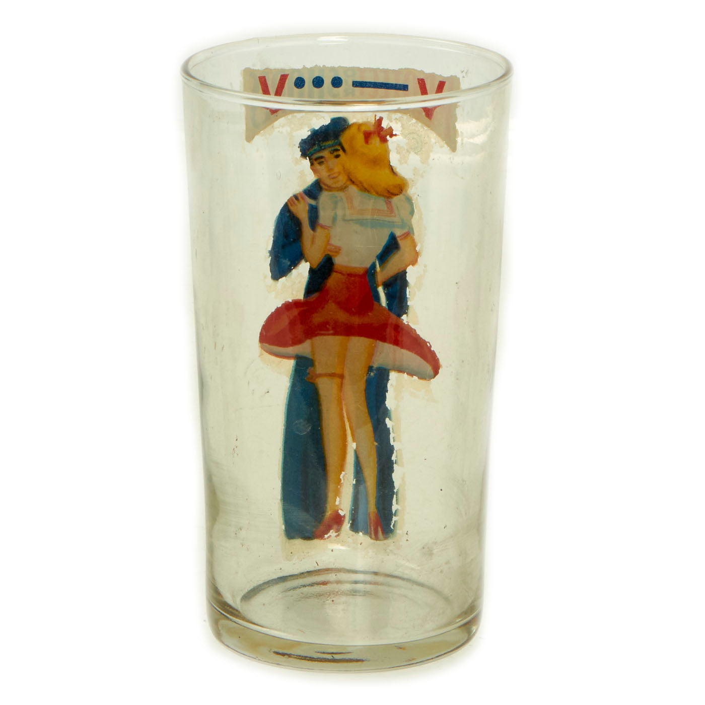 Original Items: Only One Set of 4 Available. During World War II, the opening motif of Beethoven's 5th Symphony became a powerful symbol for the Allied forces. The short-short-short-long rhythmic pattern corresponded in Morse code to the letter 'V' for Victory, which was an acknowledged symbol of the war effort, most famously made by Winston Churchill forming a 'V' with the first and second fingers of his raised right hand. It was also adopted as the American national symbol after the war, along with the bald eagle. Three of the four glass all share one thing in common, they have the “V • • • —” visible from the inside of the glasses, the fourth one has patriotic symbols.