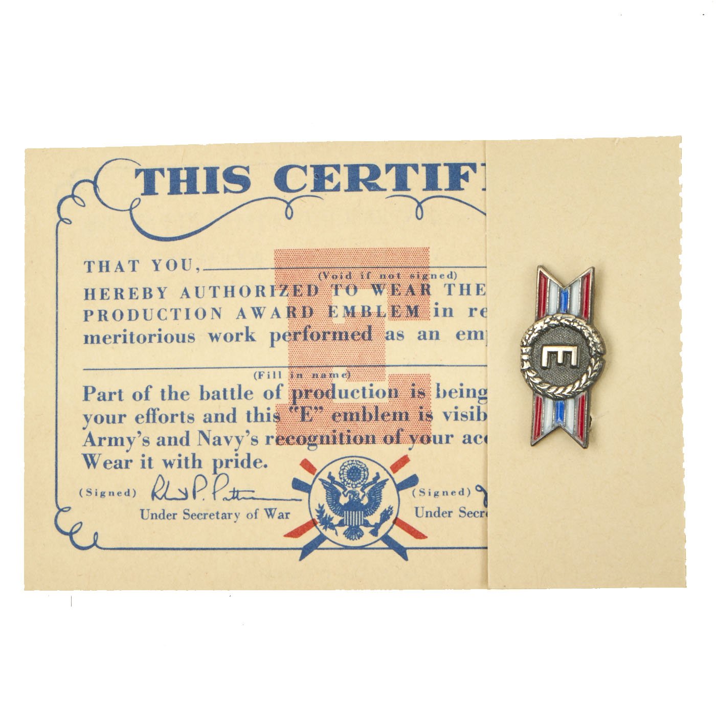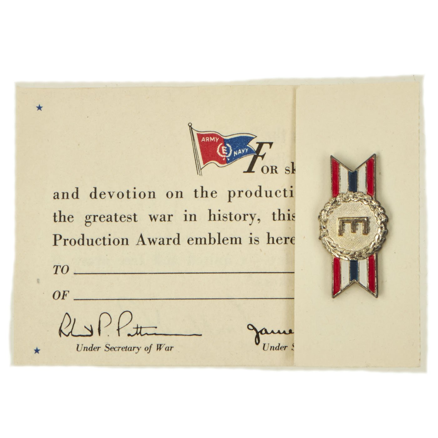 - 2 x WWII U.S. Navy Excellence for Production "E" ribbon pin with original award certificates