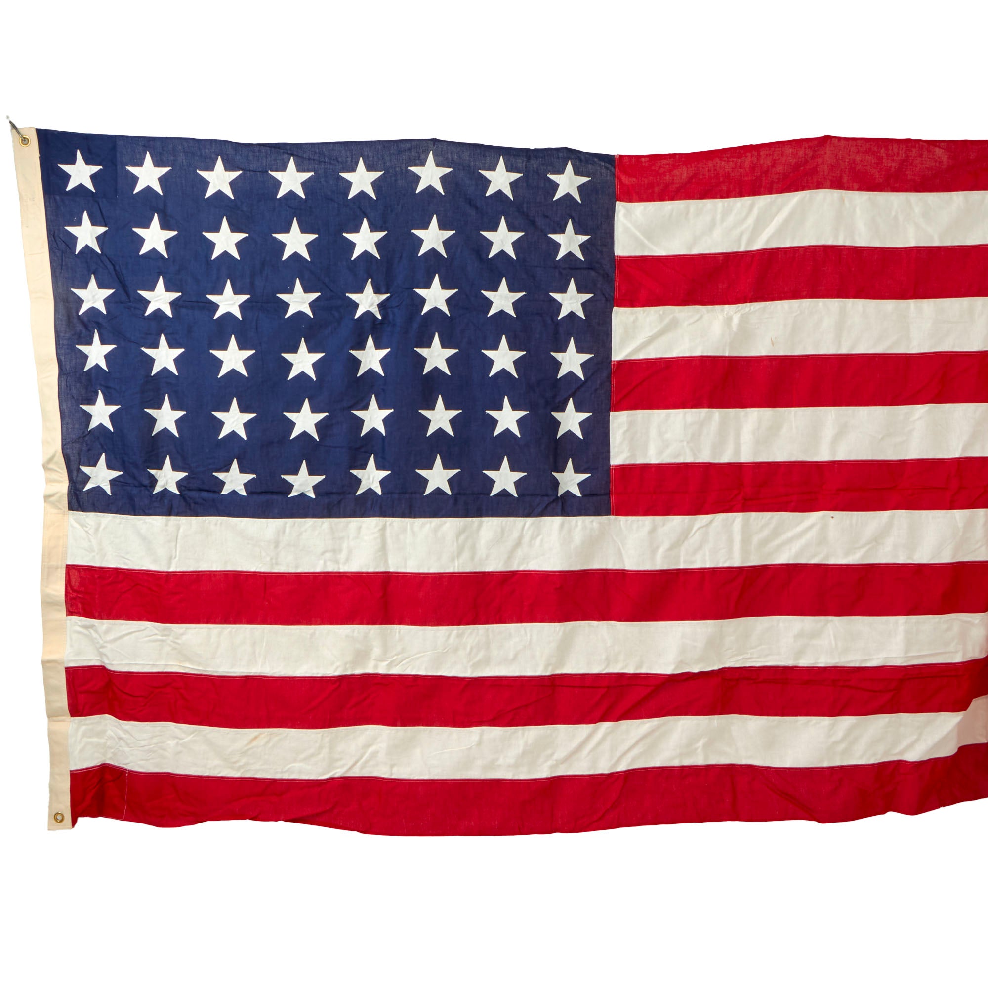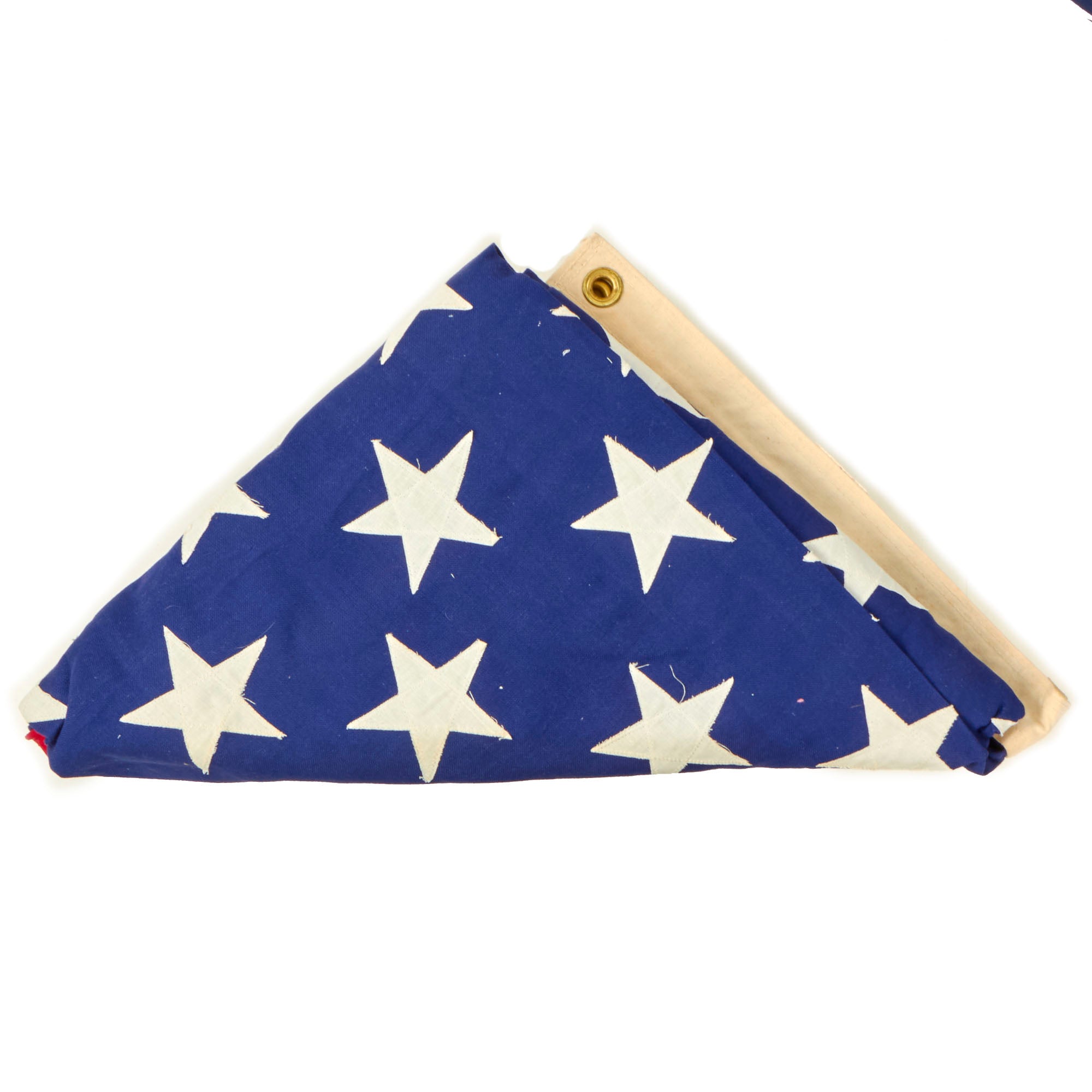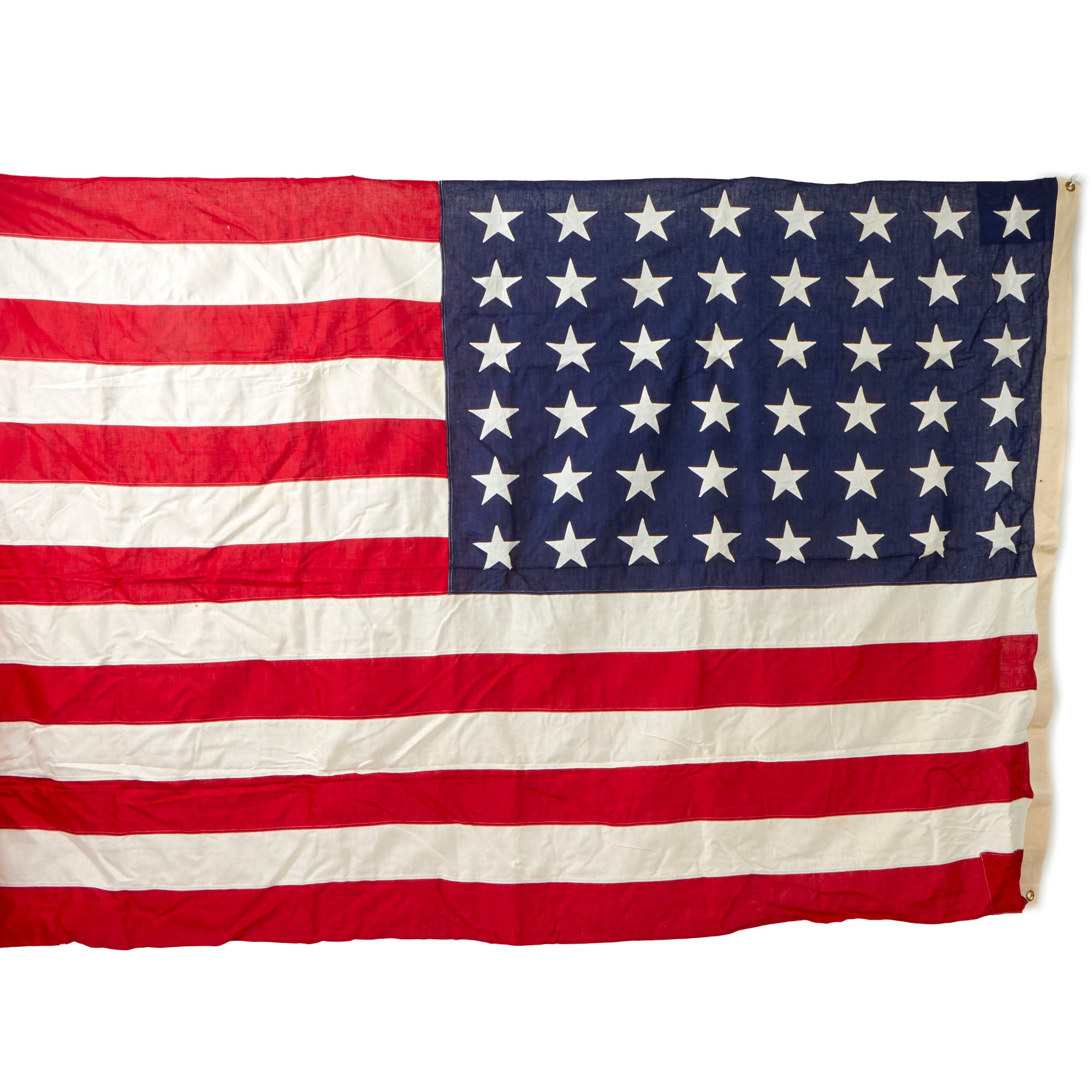 - 1 folded 48-star flag, with a faint maker’s stamp and size, 5x5 ½ feet.