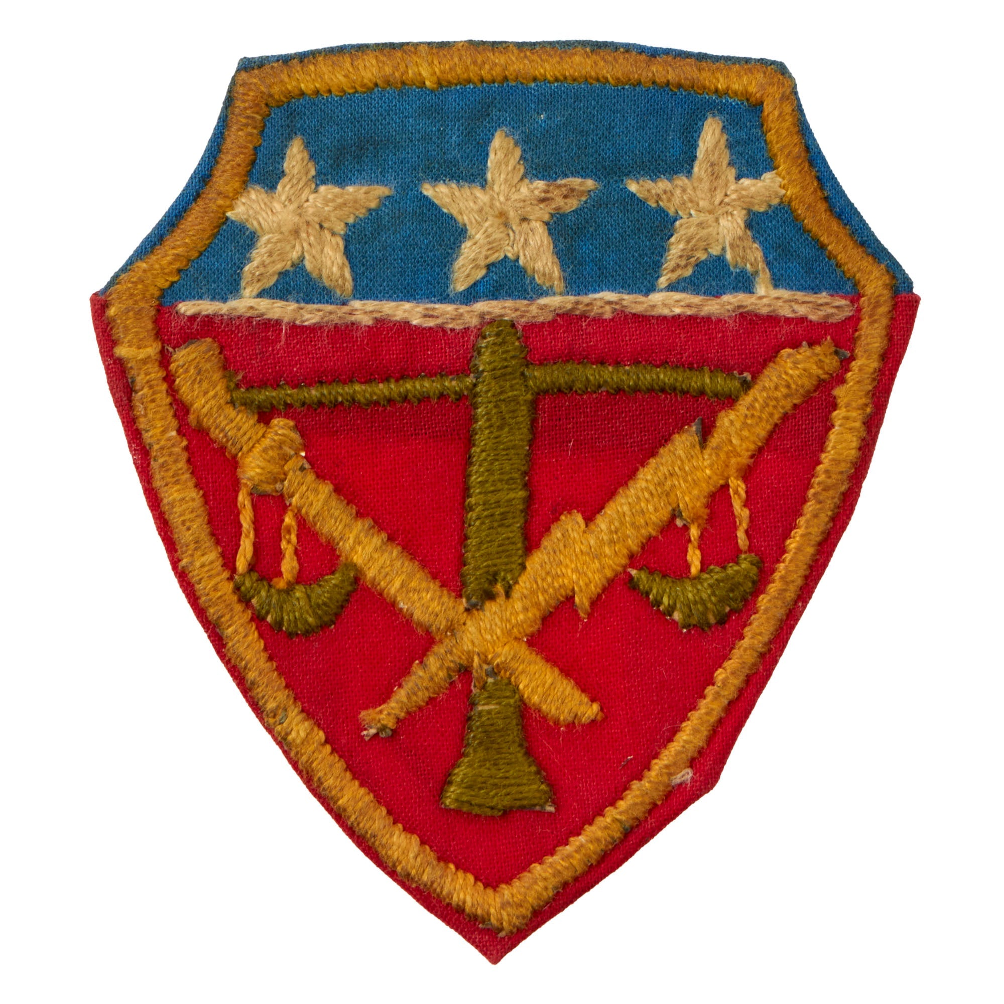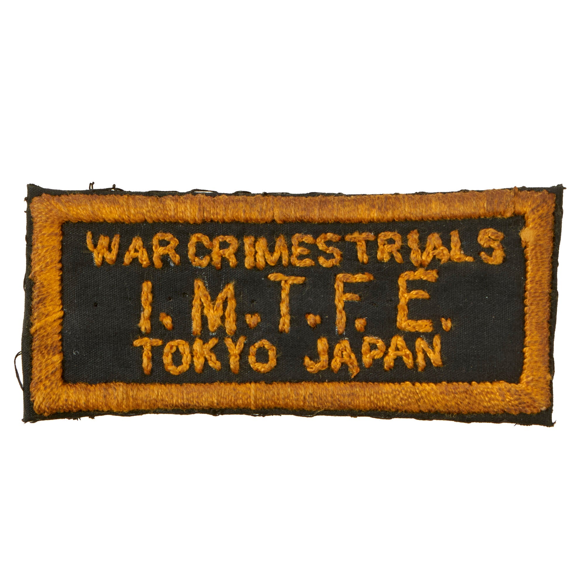 The IMTFE patch measures 1⅝ x 4” and is in great shape, the cloth just being a bit stained. The War Crimes Tribunal patch measures 3 x 3⅜” and is in similar condition and construction, and it’s clear that most of these items have always been together. The 7th ID patch is 3⅜ x 3½” and is in great order. The Sugamo Prison patches have always been extraordinarily scarce.