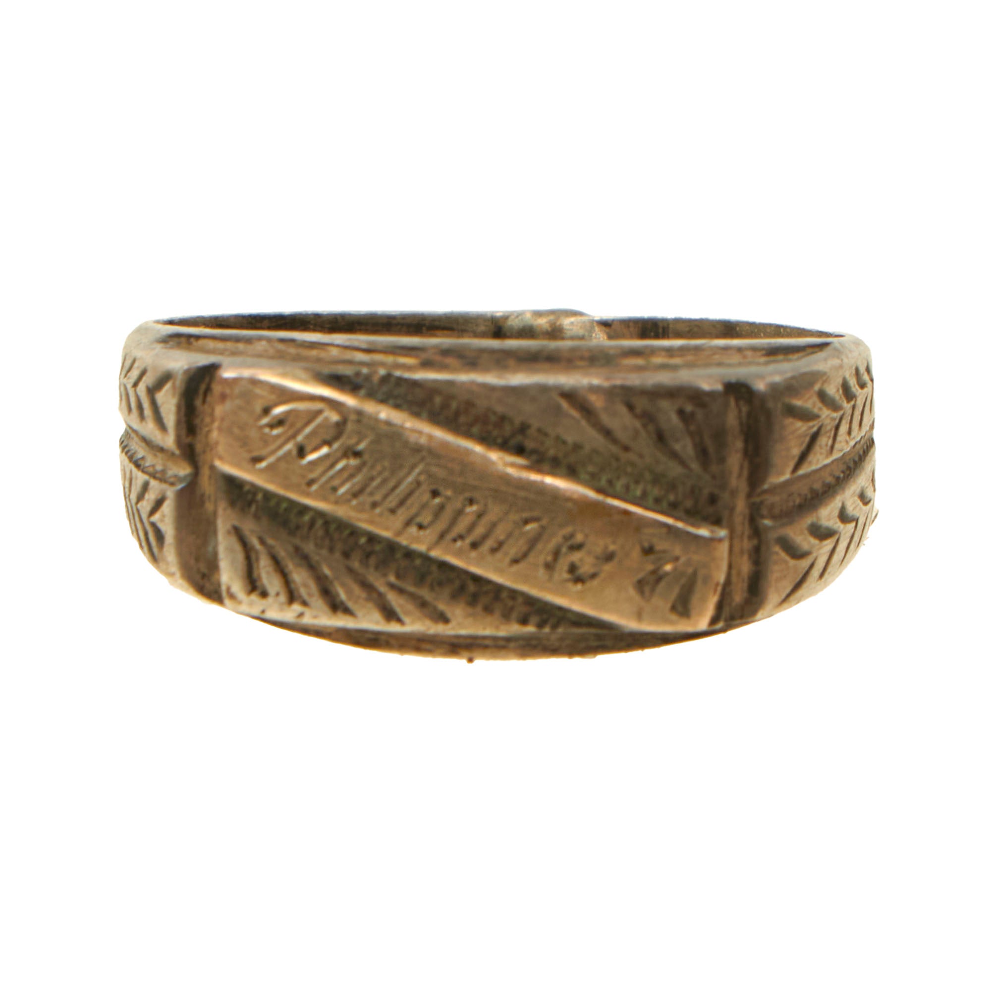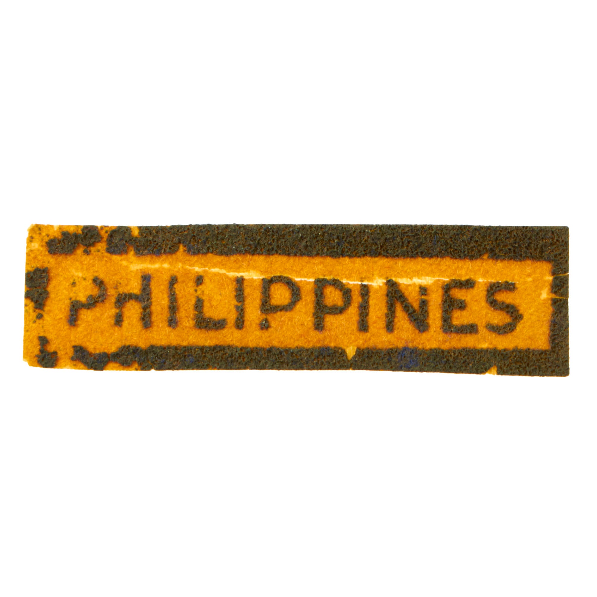 The small Philippines badge is ⅝ x 2⅛” and is missing some material as shown. The Philippines ring is theater-made and a great example.