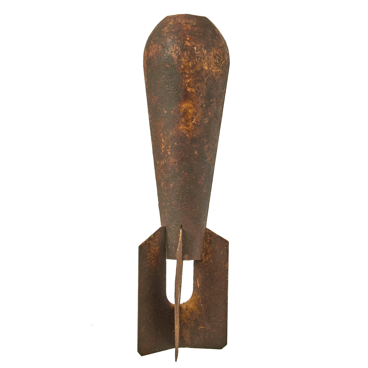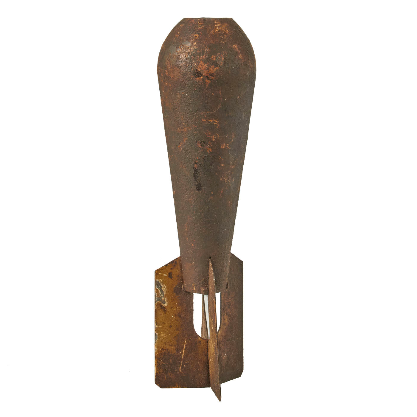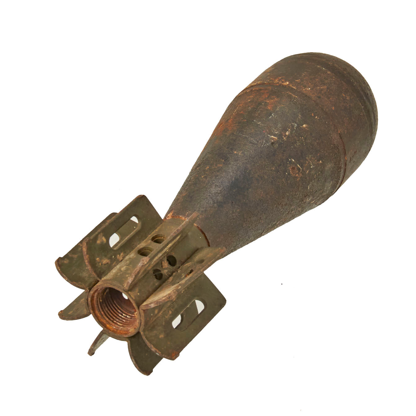 M69 Training Practice Round: These are hard to find WWII Era M69 Training / Practice rounds, as used with the U.S. WWII issue M2 60mm Mortar. This mortar also continued to be used during the Korean war, and into the Vietnam era. The training round itself is a shell with a cast iron body, inert filler, and detachable fin assembly used to train recruits in firing. The cast iron body is reusable and the fin assembly can be replaced if damaged. These were usually refinished and painted almost after every training session, but this one appears to have never been repainted. The fin assembly appears to be without damage and does not have a date stamped into it.