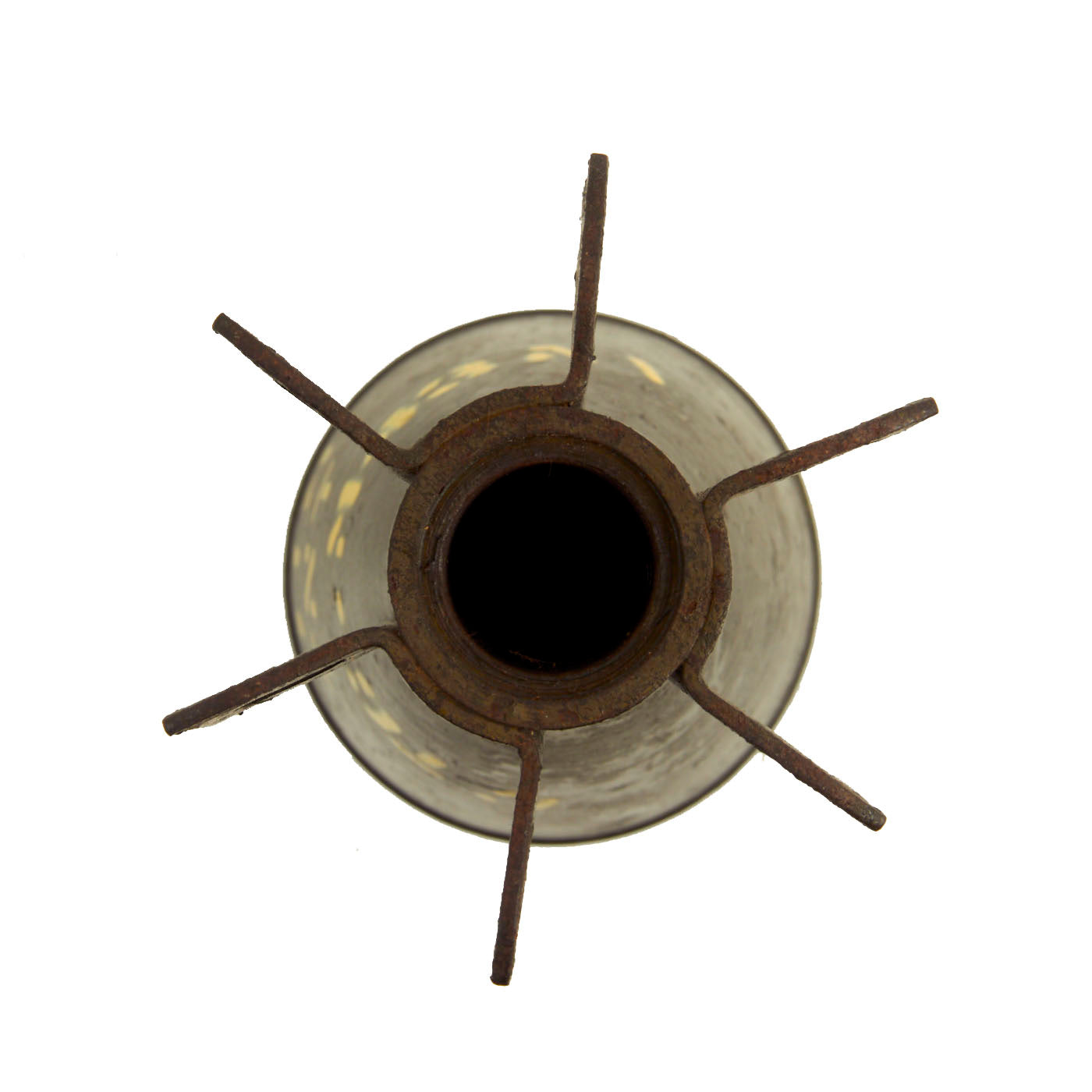 This is a totally genuine United States military WWII produced SHELL, M43A1, with an inert aluminum fuze. The fuse base unscrews to allow the explosive chamber to be inspected. Part of the fuze housing is unfortunately broken.