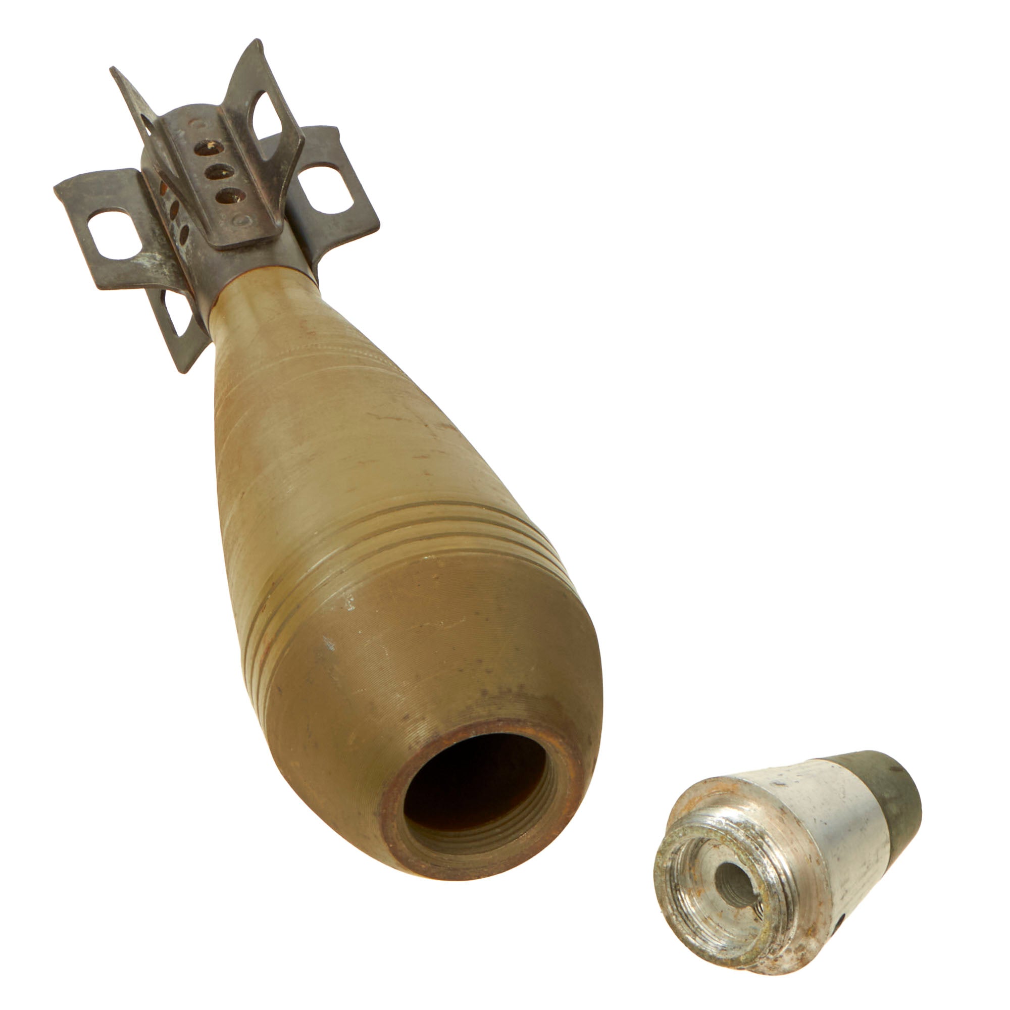 Original Item: Only One Available. Totally inert and demilitarized according to BATF guidelines with hollow body and inert fuse. This mortar round cannot be converted to an explosive device and is not available for export.