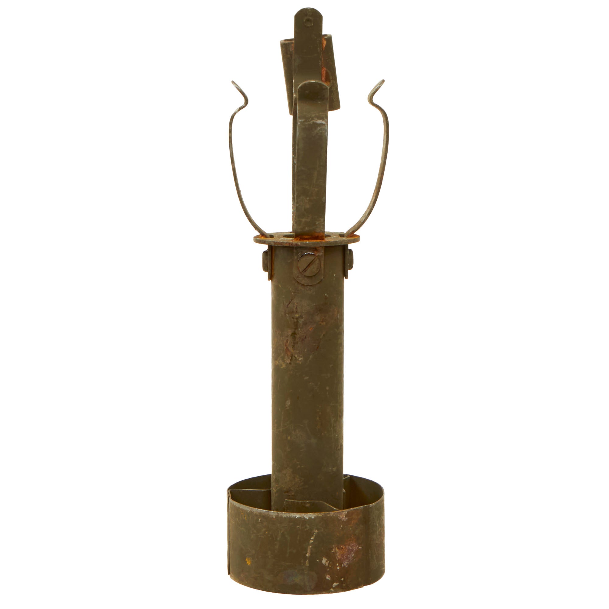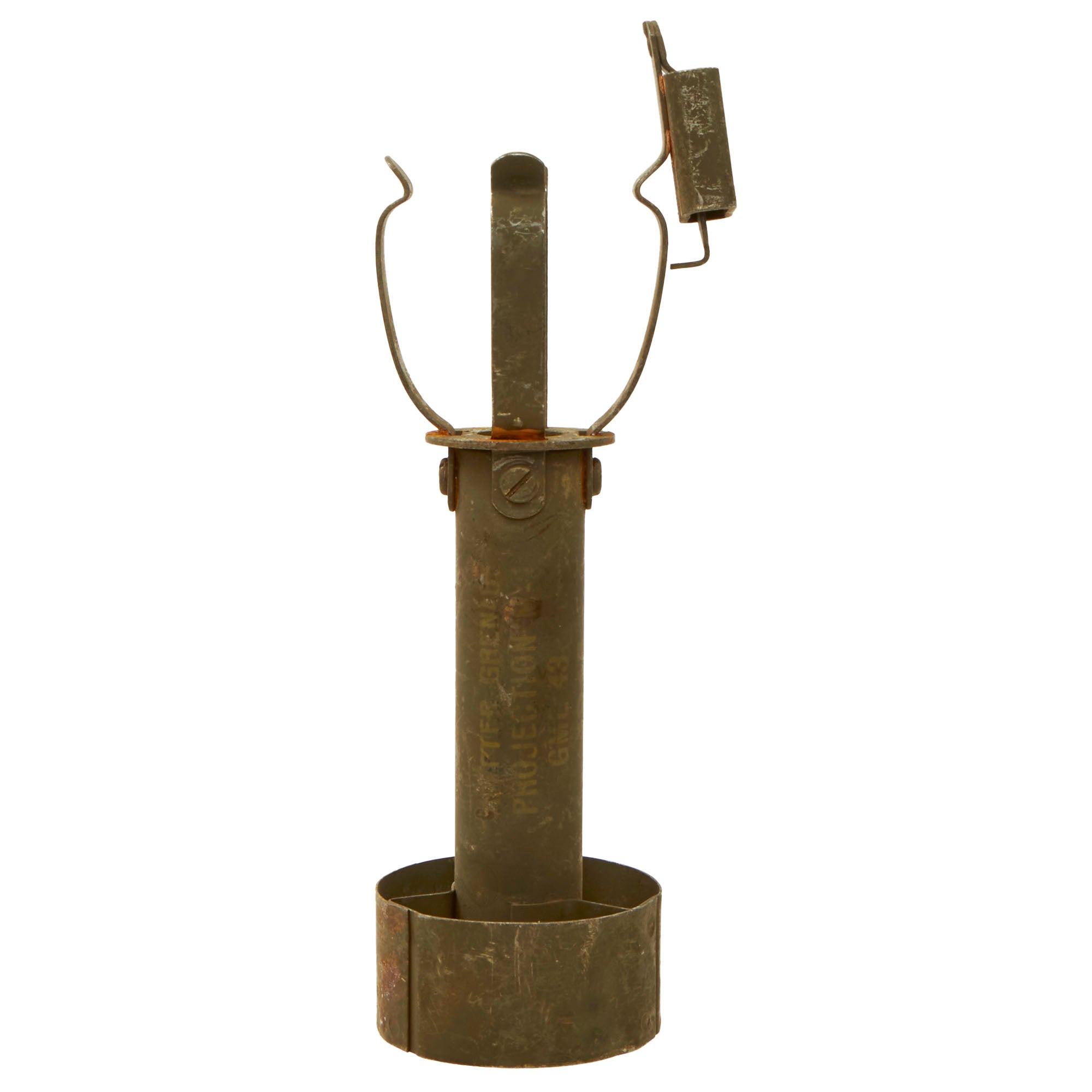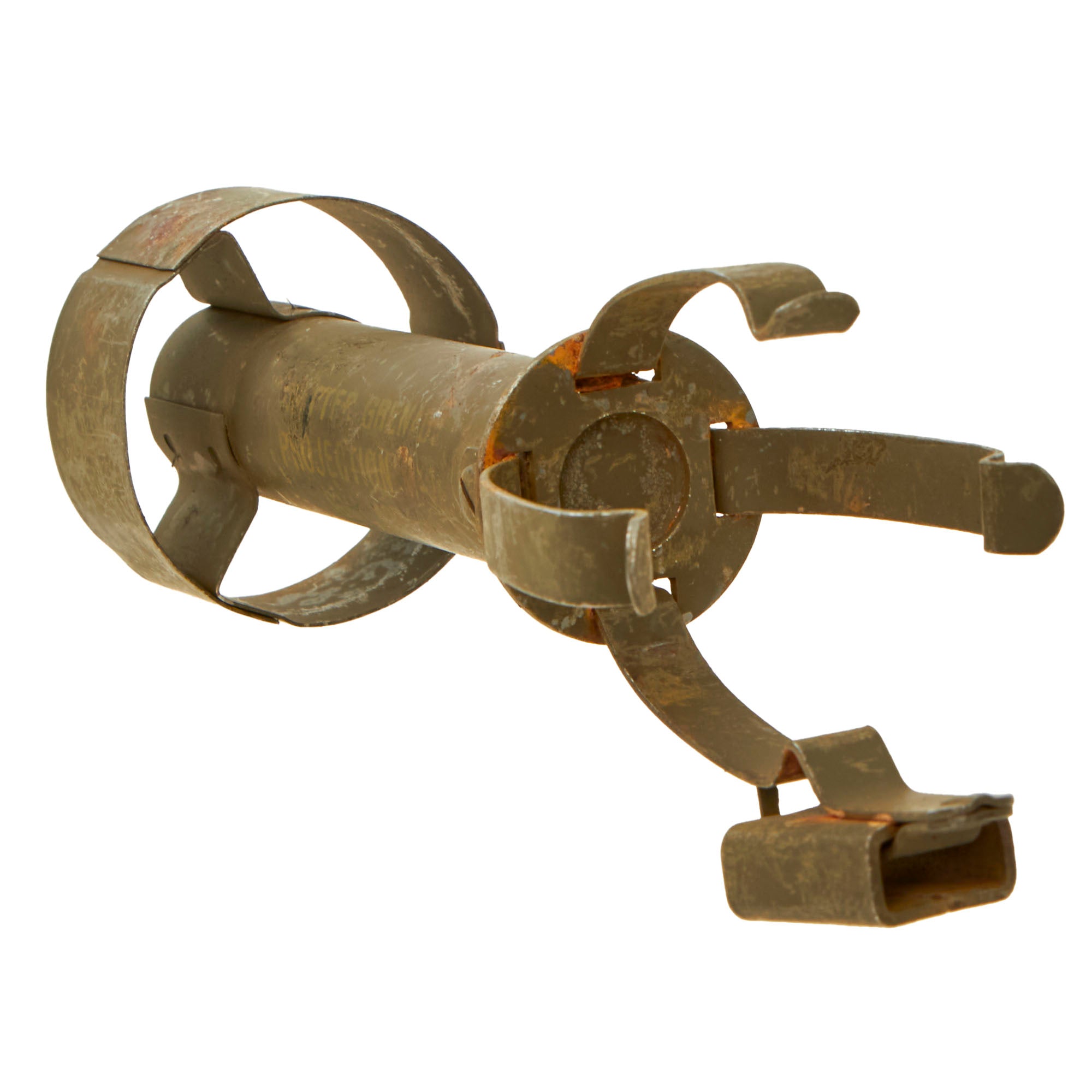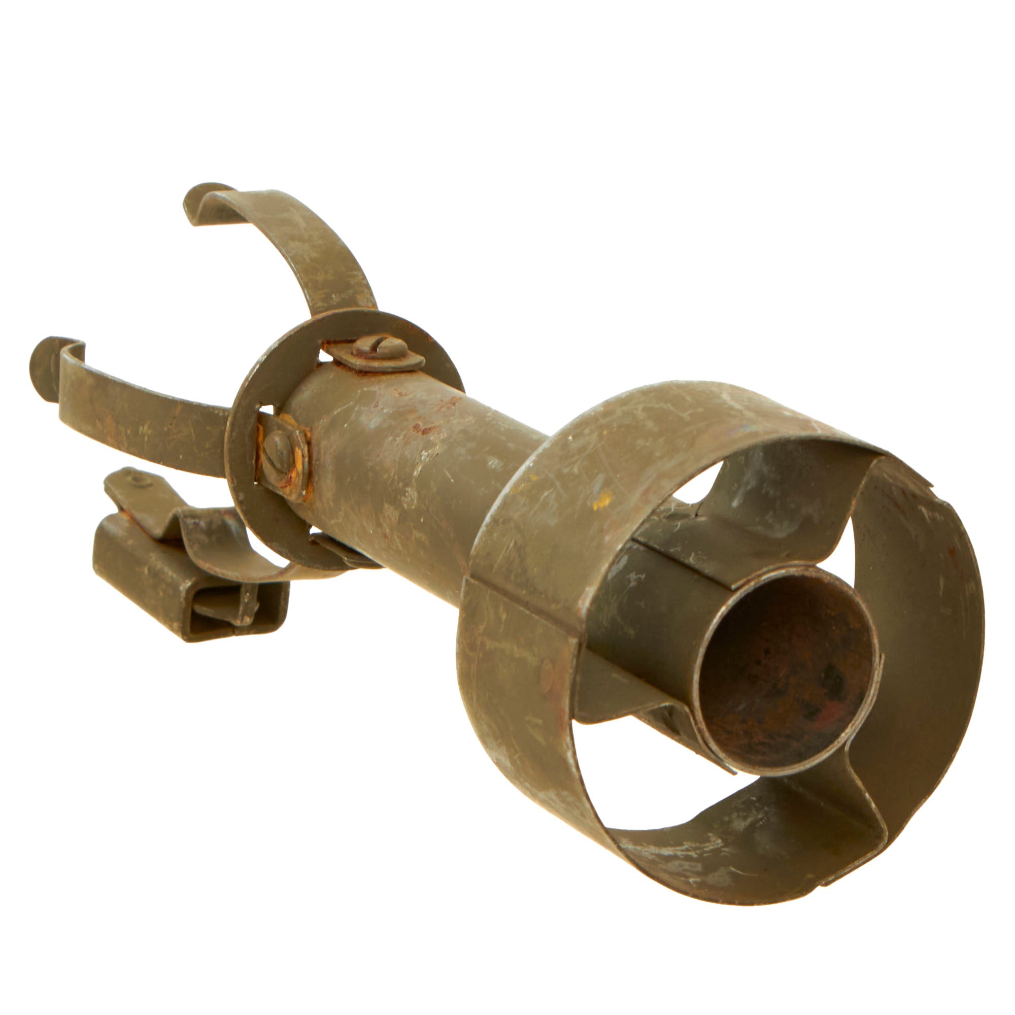 We are offering a fantastic selection of WWII issue Mk II Grenade launcher adapters, all dated 1945. They have relatively similar markings, but are all complete and in great displayable condition. We tested them all, and they will still fit a Mk. II Grenade. Some have paint loss and some have some oxidation, but all are dated 1945 and are in good shape.