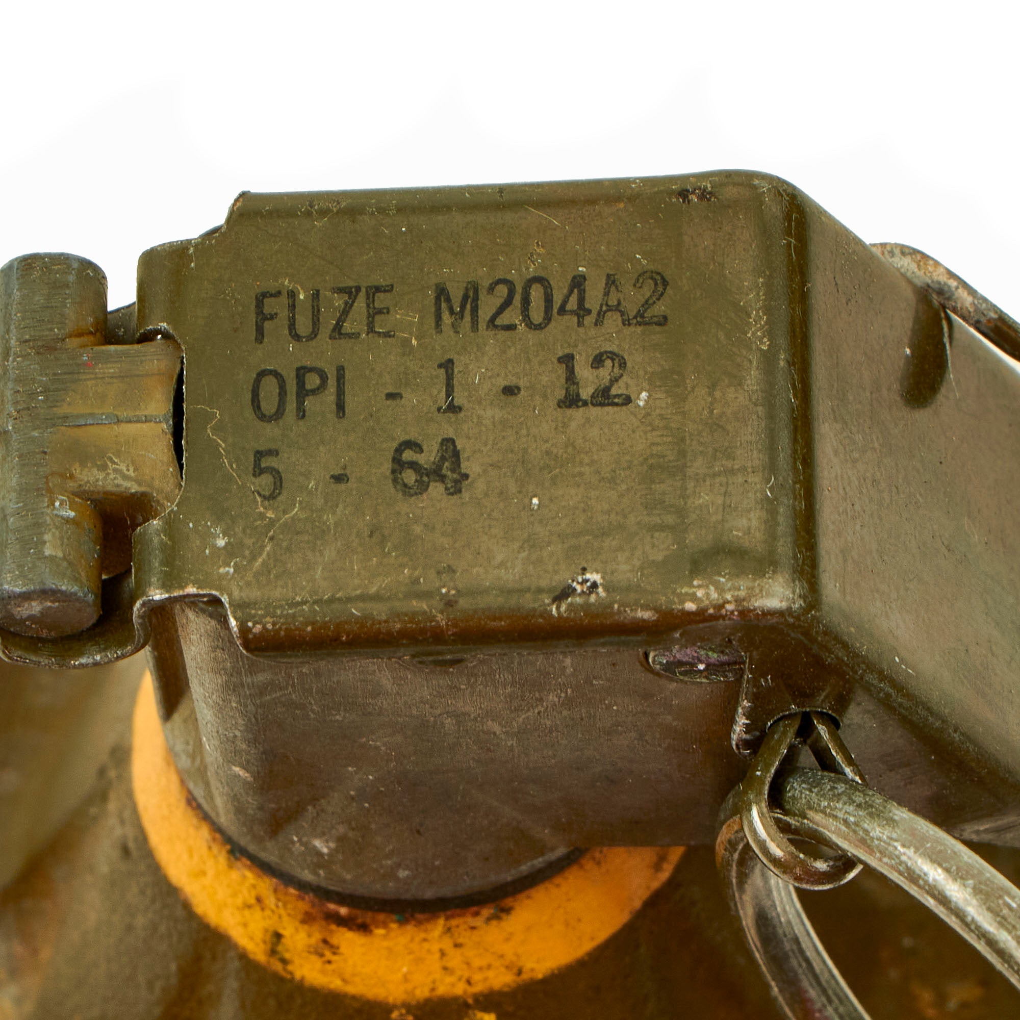 This example is in lovely condition with almost all of the original paint still present, as well as a visible yellow band still around the neck. The top of the fuze is marked as being a Vietnam War era M204A2.