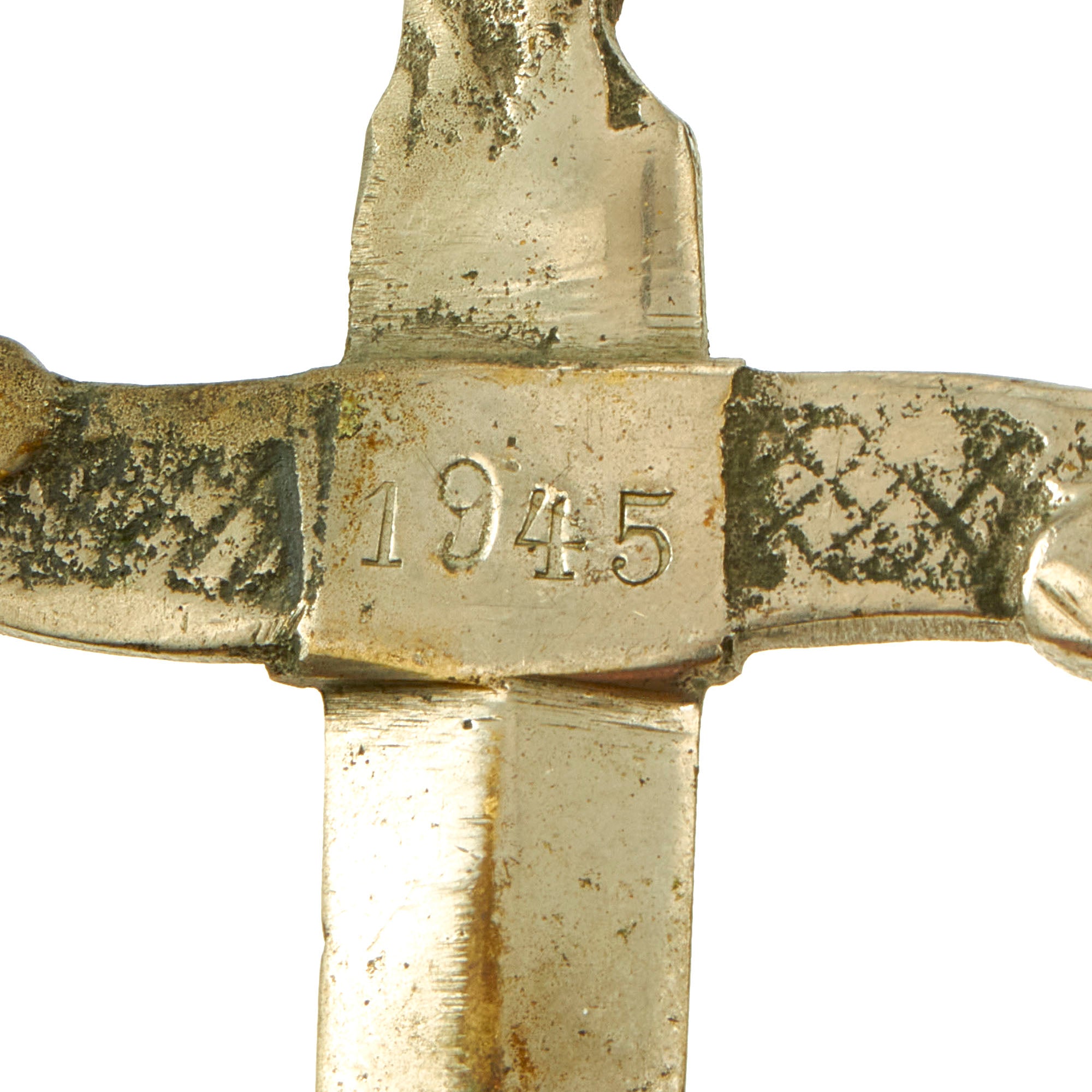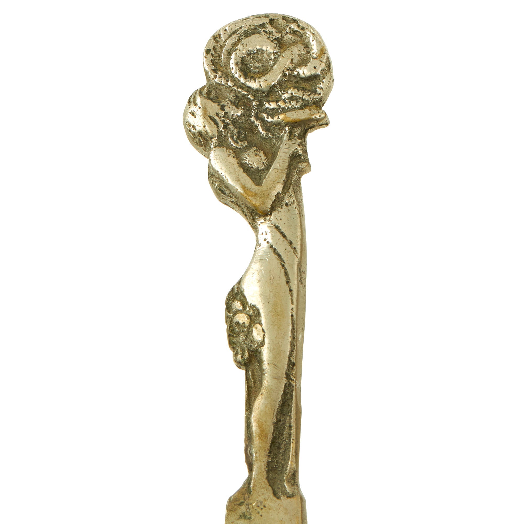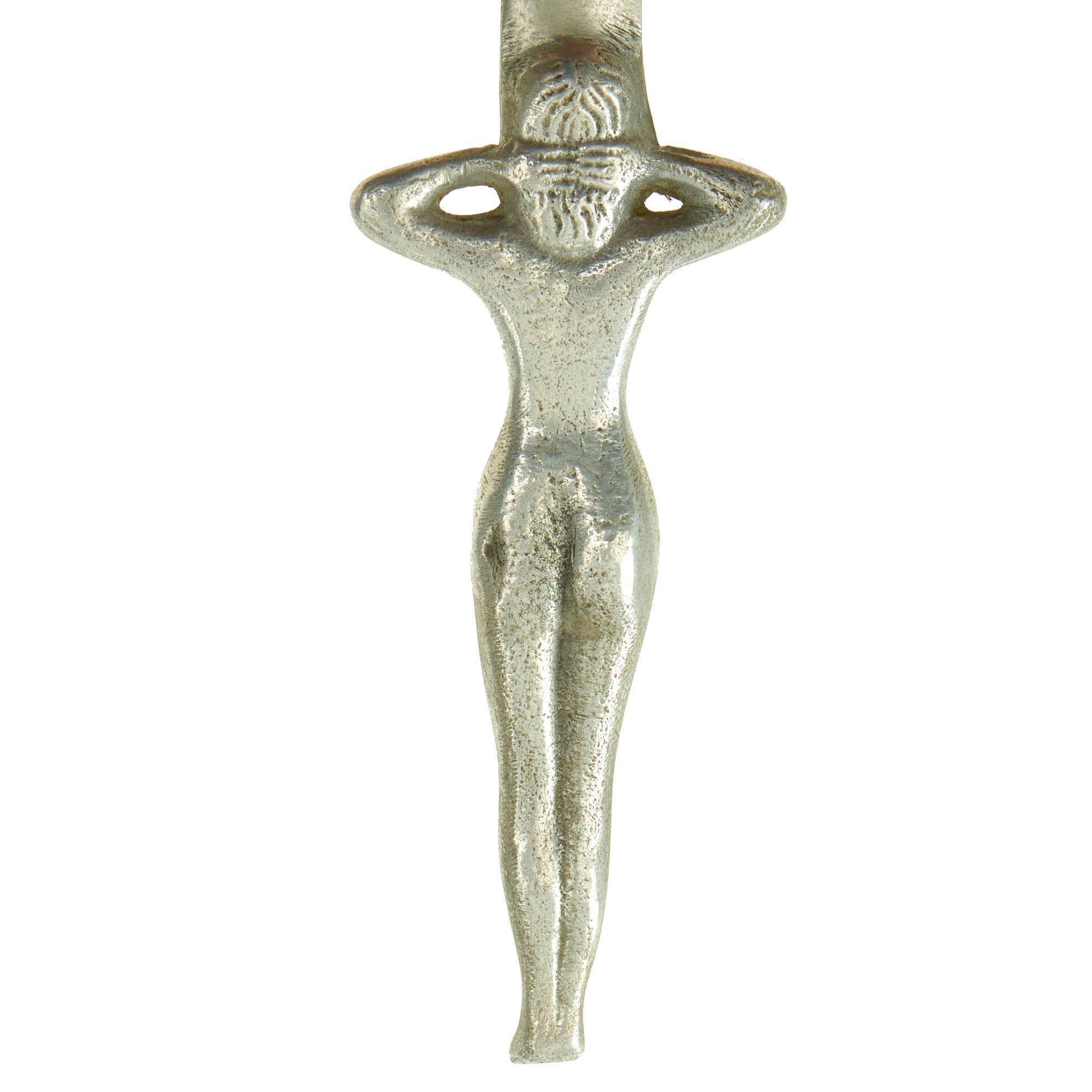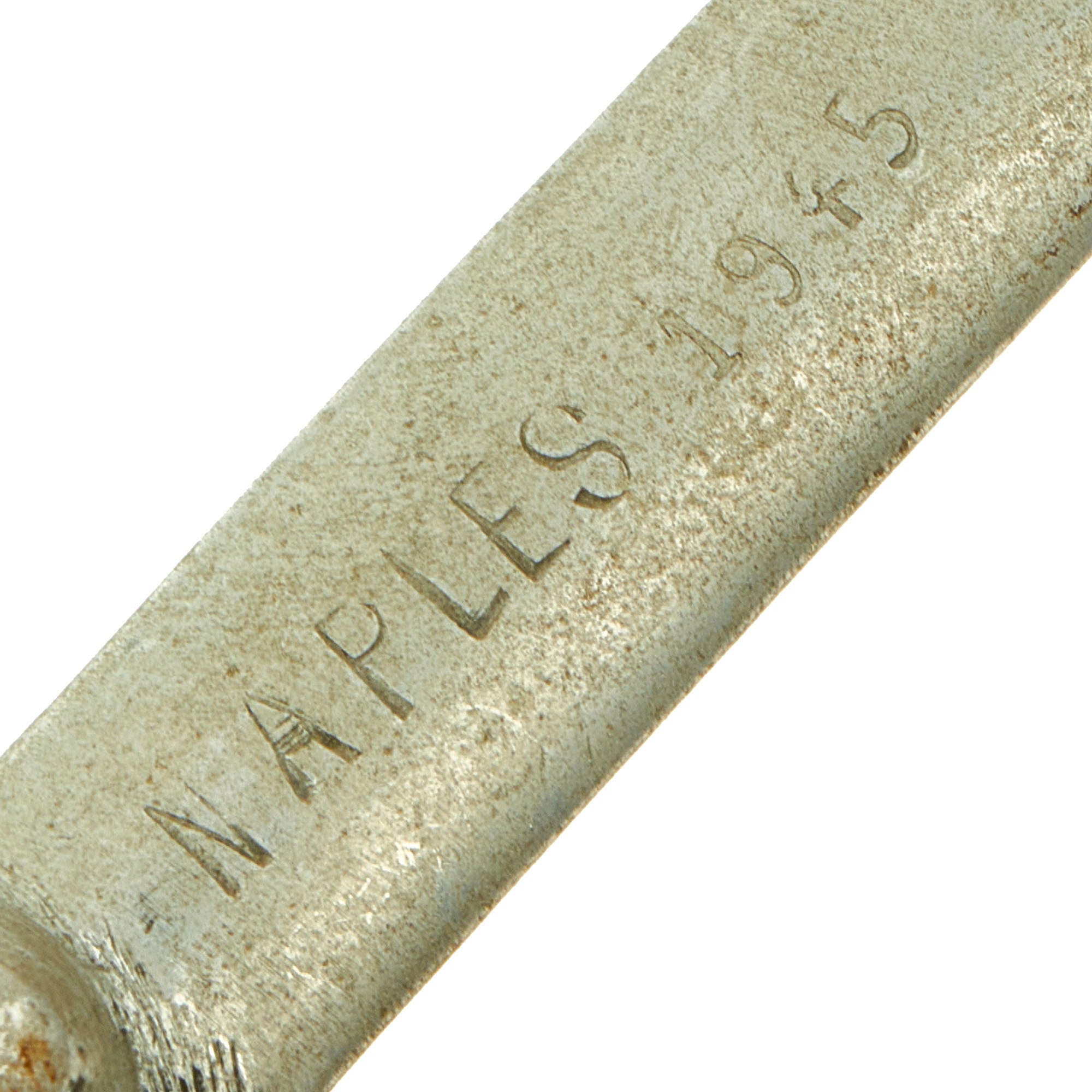 Original Item: Only One Set of Three Available. Italian manufactured, late WWII period souvenir knife set (not sharp) all featured with a naked lady for a grip. These "nude knives" were popular with American troops and were offered in small street markets throughout Naples. These examples are marked with SICILY 1944 and NAPLES 1945 (on two) with an engraving pen on the blades and “crossguard”. Two are cast aluminum, while the other is plated brass alloy.