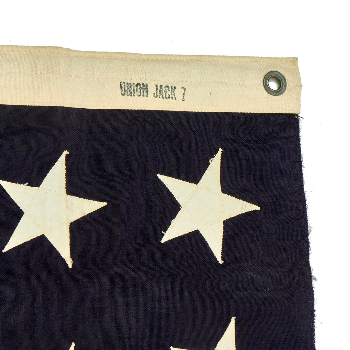 Original Item: Only One Available. This is a wonderful unissued example of a WWII US Navy “Jack of the United States”. This is a wonderful 48 Star Union Jack Maritime Flag, which would have been flown on the jackstaff in the bow of U.S. vessels that were moored or anchored.
