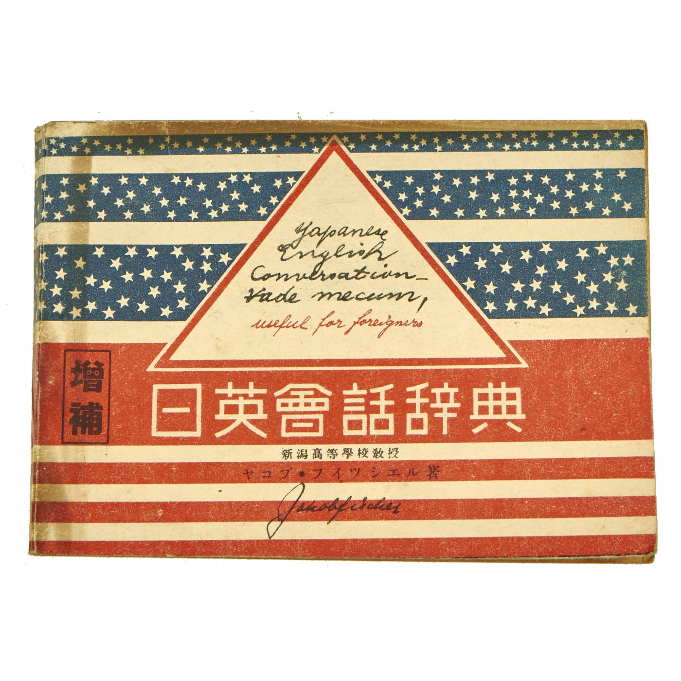 - “Japanese English Conversation Vade Mecum” by Jakob Fischer: This is a phrase book dated 1945 and shows Japanese phrases with english translations.