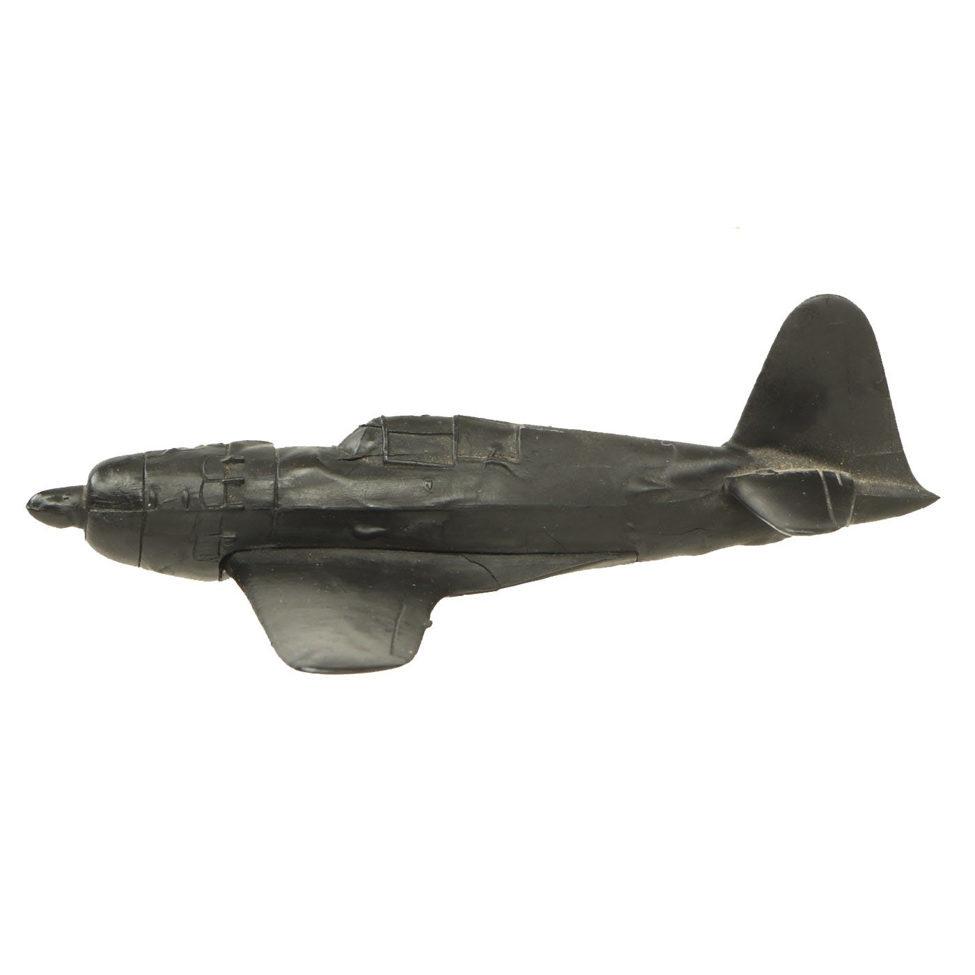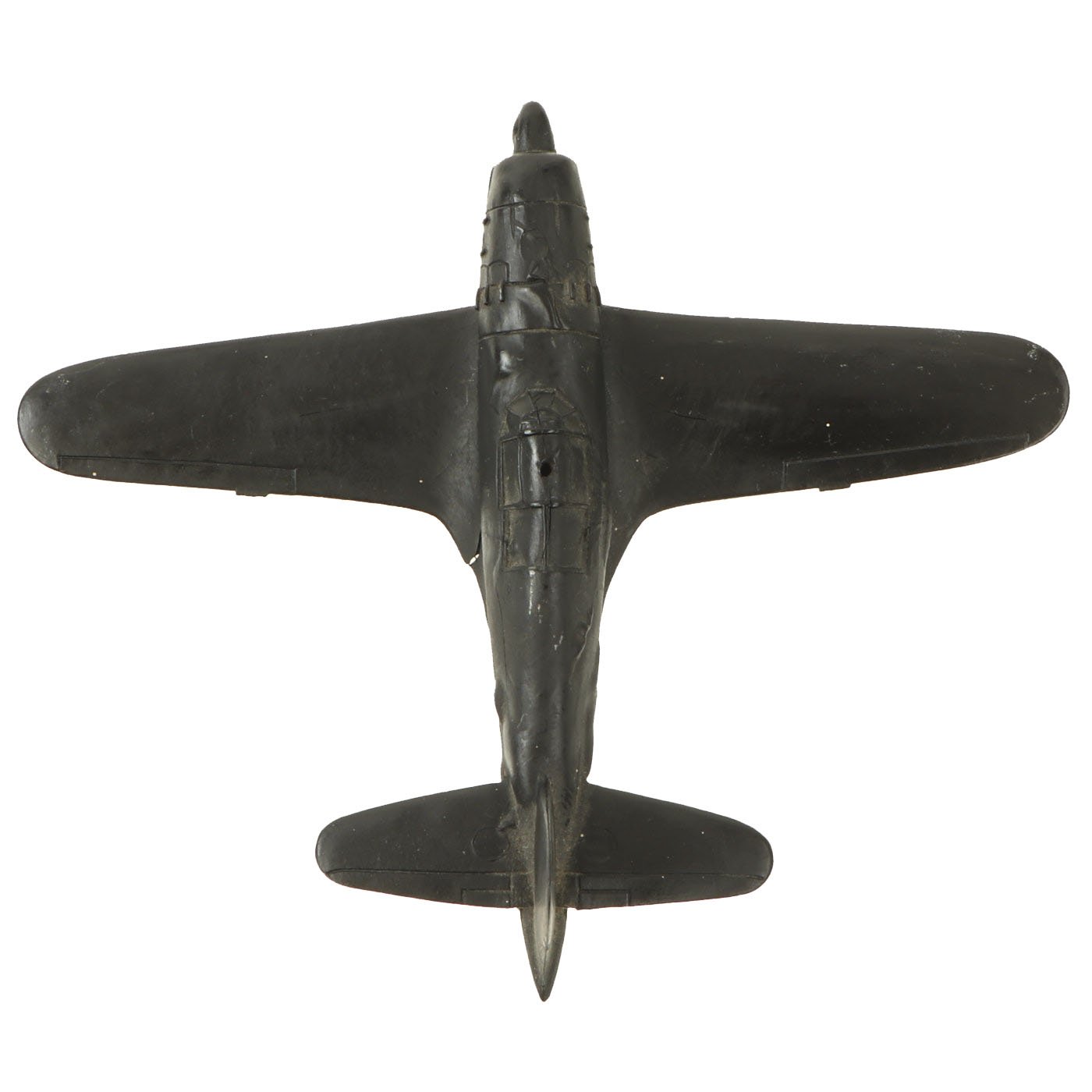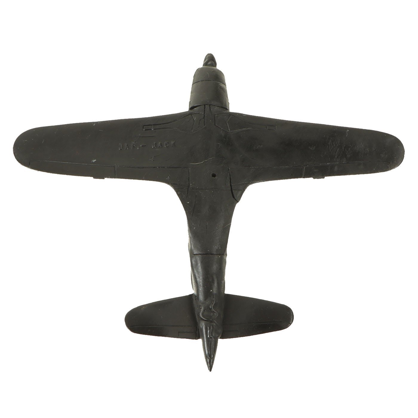This is a beautiful, original (cellulose acetate) model, which does have some light distortion in areas, as well as cracking. The acetate can become very brittle, which eventually can crack, as this example did at some point, and was then repaired. Underbody designation reads JAP. - JACK on the right wing, though there are no other markings. There were several smaller contractors that made these, who did not leave any logo markings or dates.