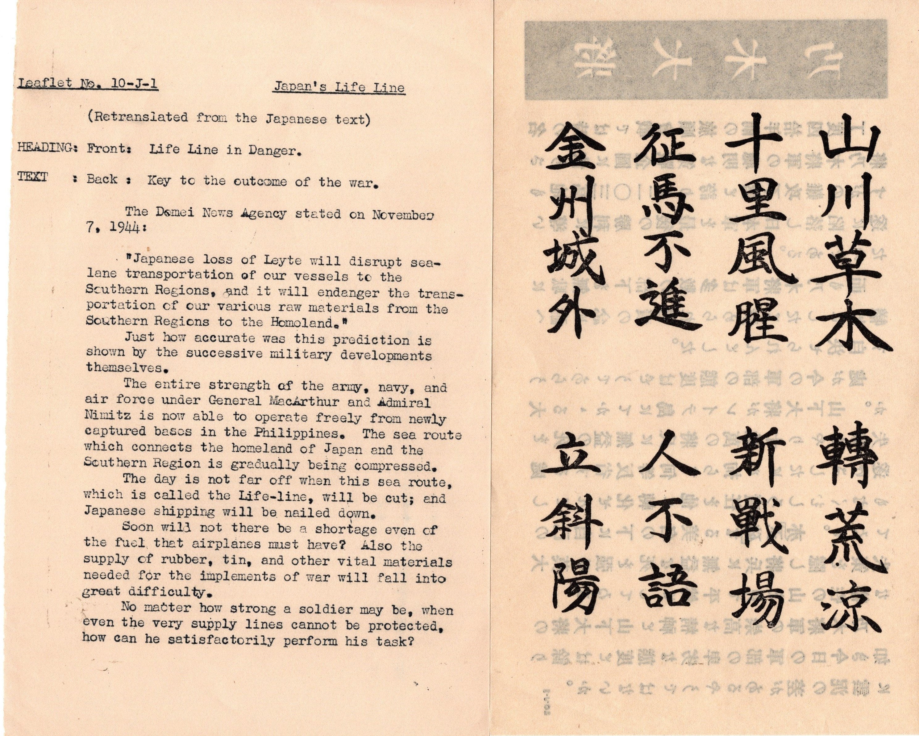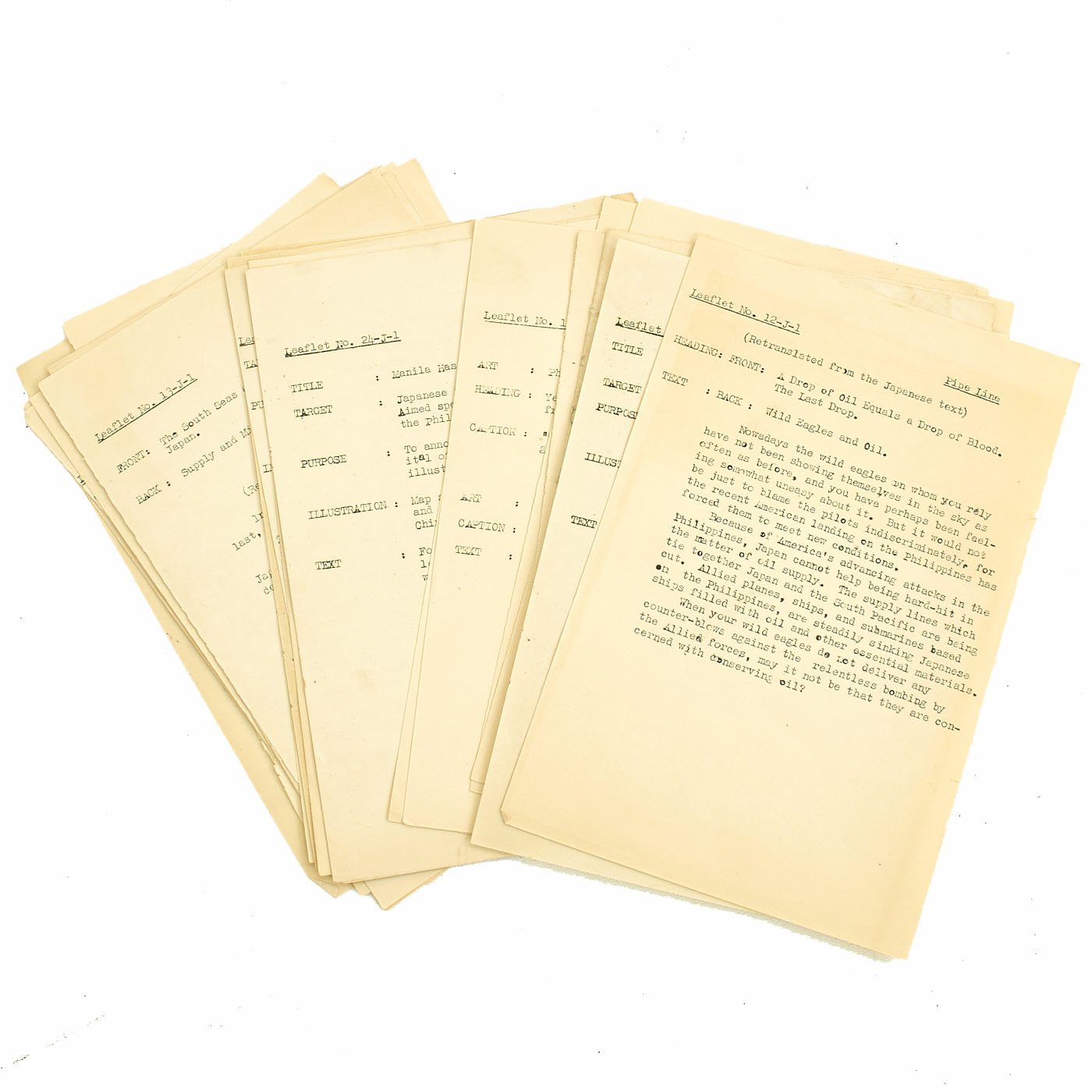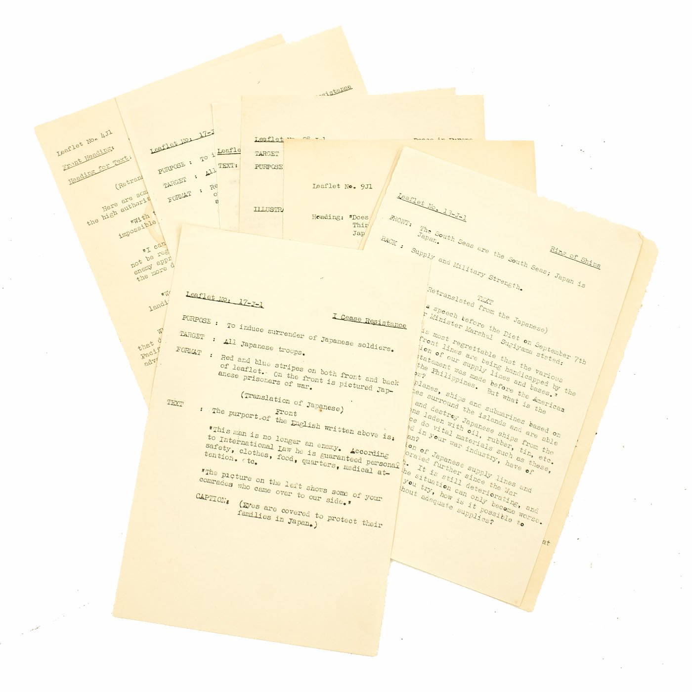 Original Item: Only One Available. This is a collection of more than a dozen WWII leaflets produced by the Americans for use against Japan during World War Two. Each leaflet has a full translation page accompanying it. Overall condition is excellent. Please see images for more details.