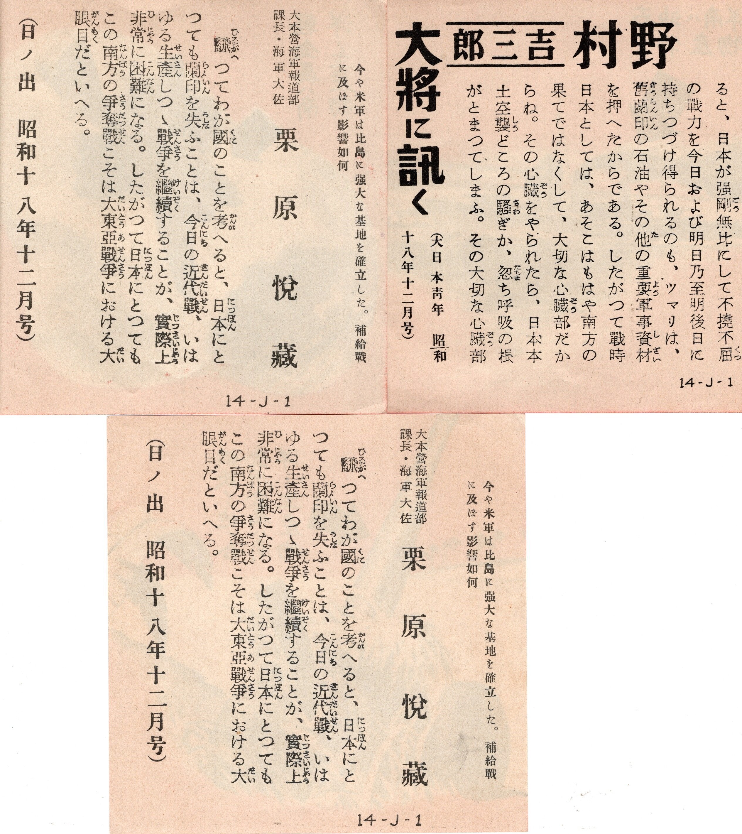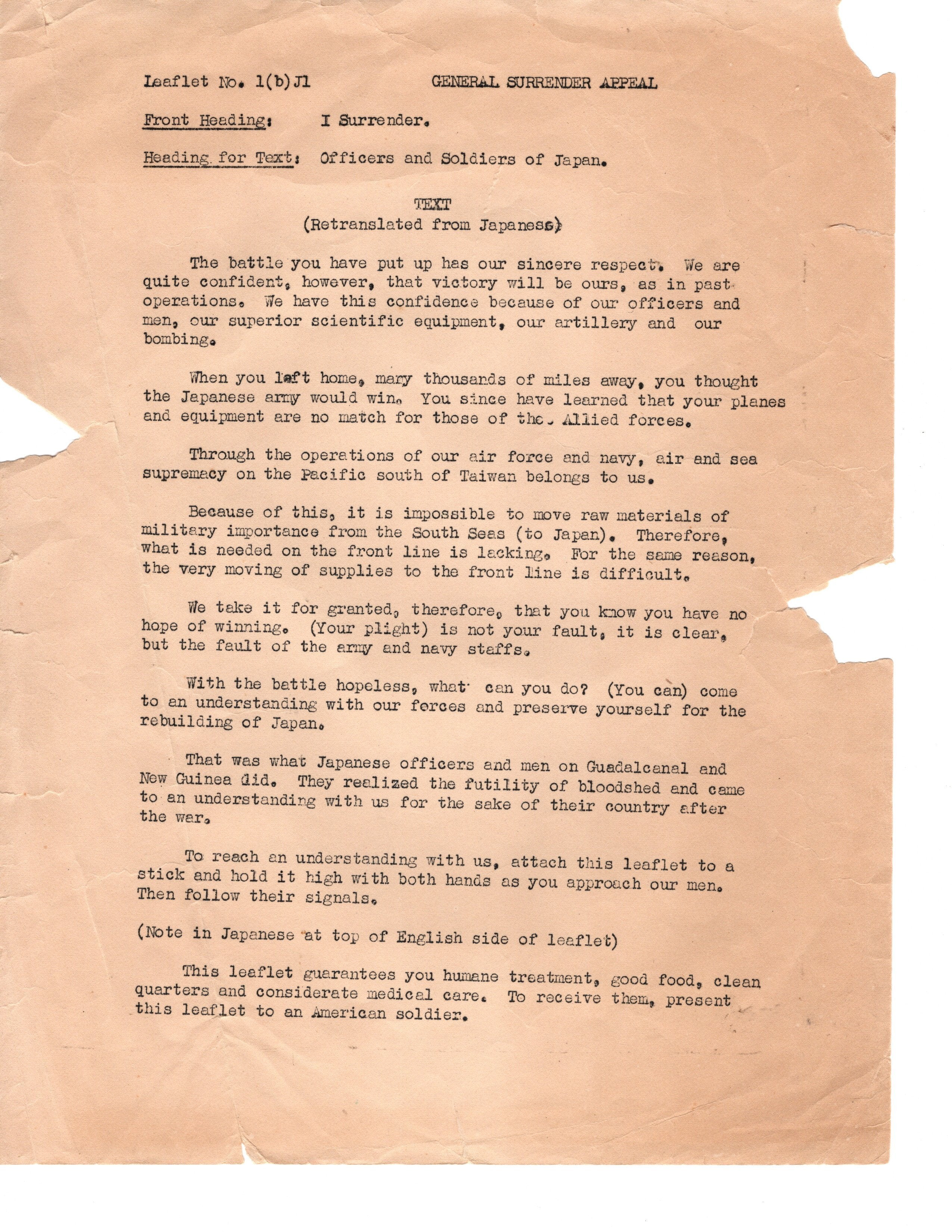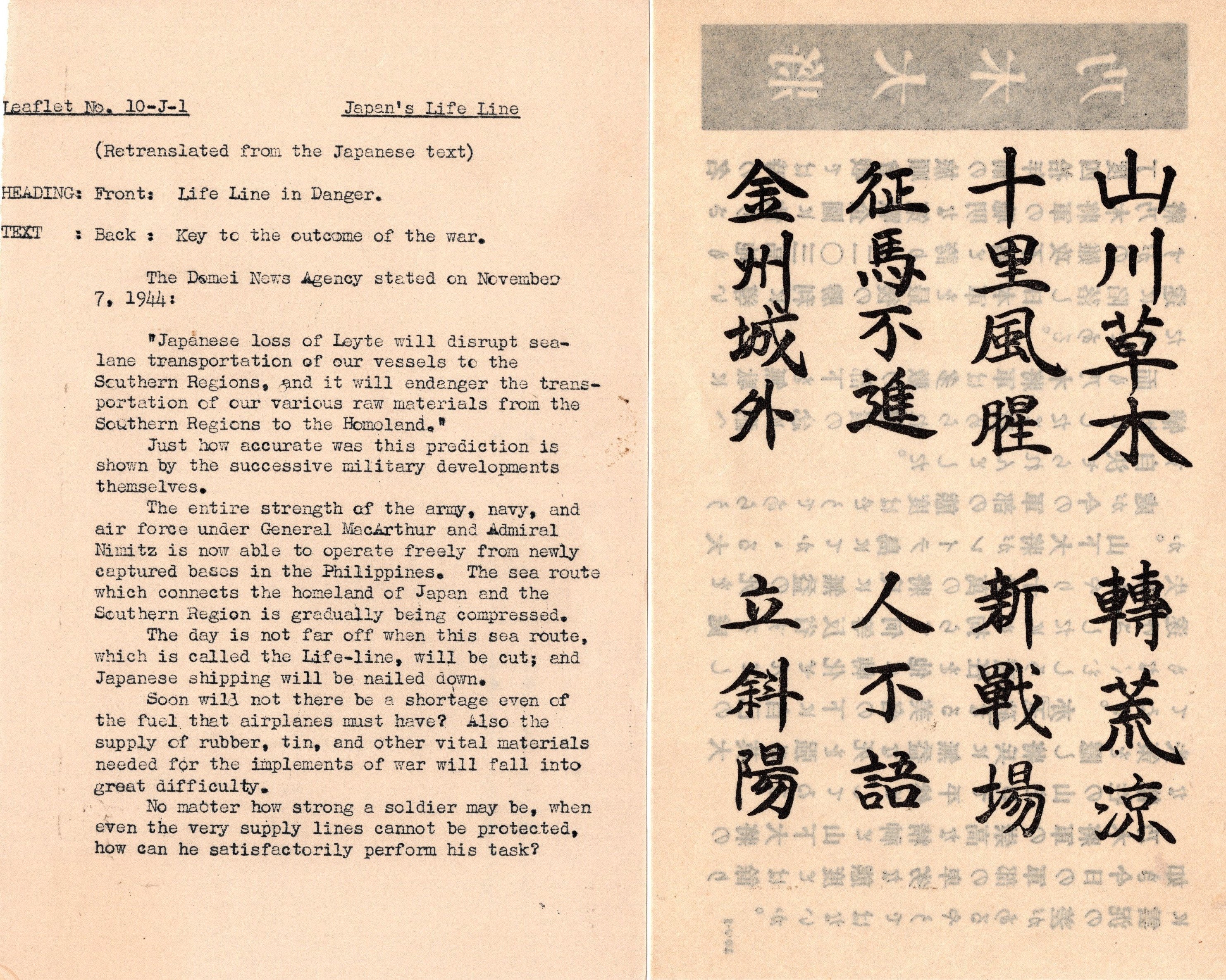 Original Item: Only One Available. This is a collection of more than a dozen WWII leaflets produced by the Americans for use against Japan during World War Two. Each leaflet has a full translation page accompanying it. Overall condition is excellent. Please see images for more details.