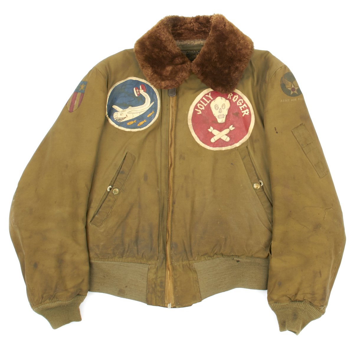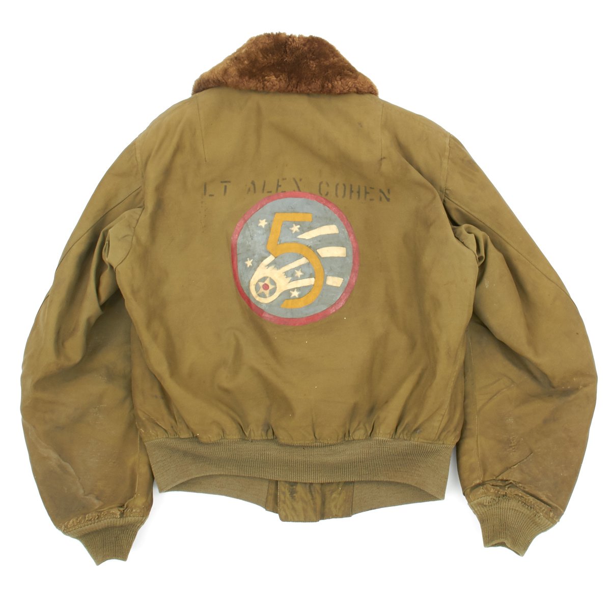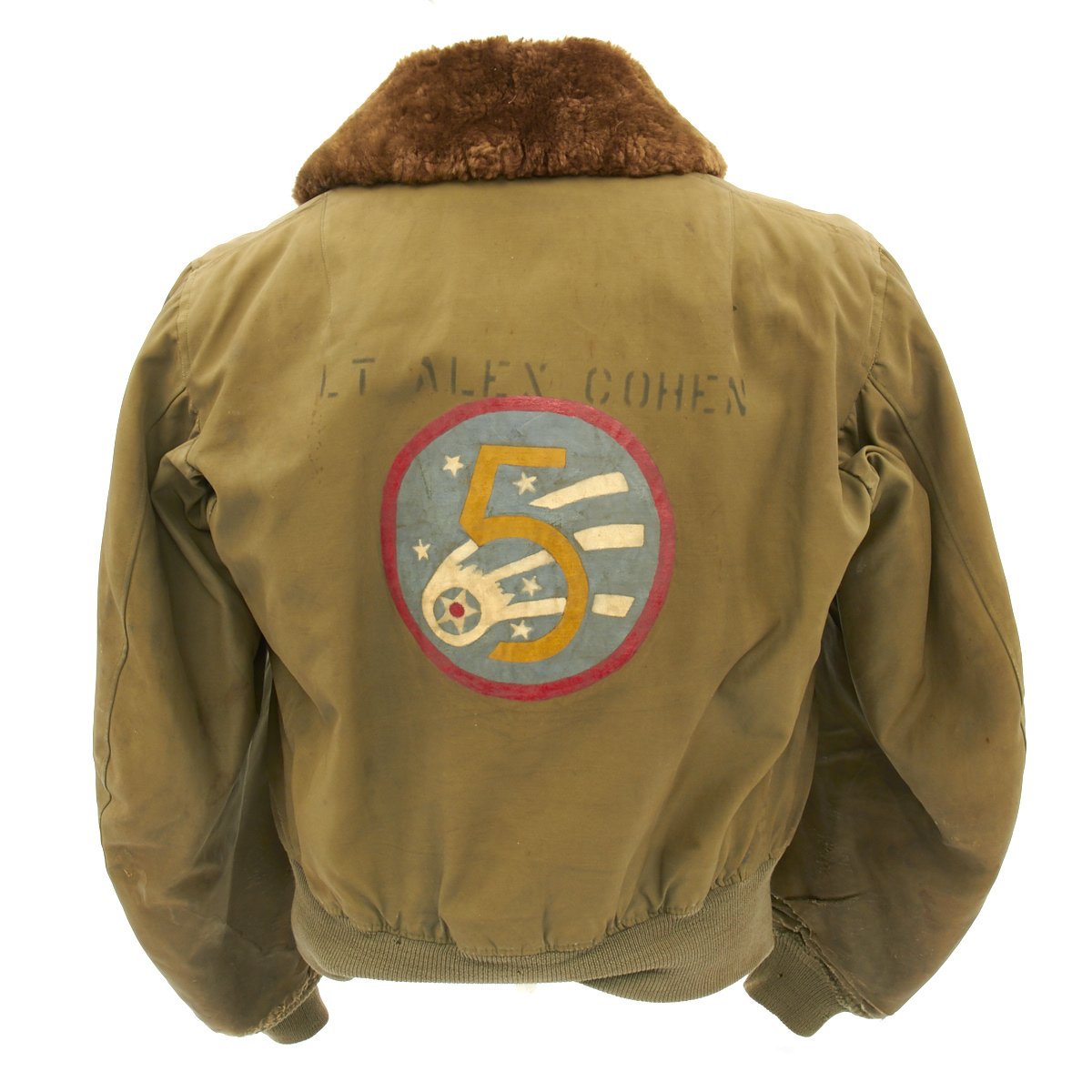 Original Items: One-of-a-kind. Incredible B-15 Intermediate Flight jacket which was hand painted in WWII for Lieutenant Alex Cohen who flew in B-24 bombers and was a member of the 5th Air Force, 90th Bombardment Group known as the Jolly Rogers, 320th Bomb Squadron "Moby Dick".