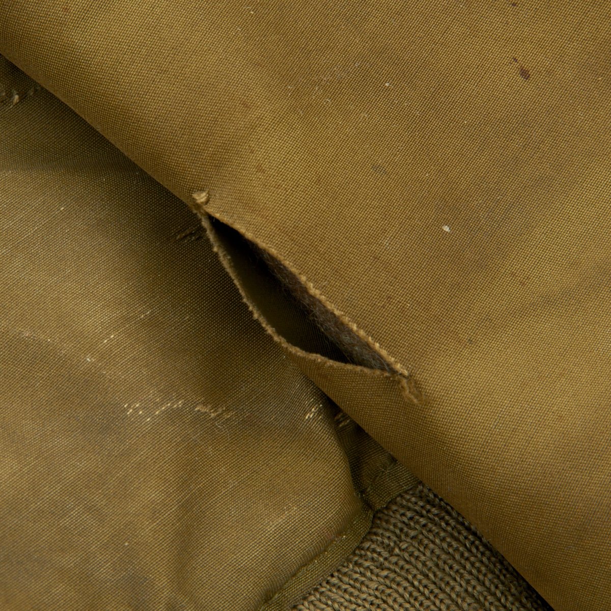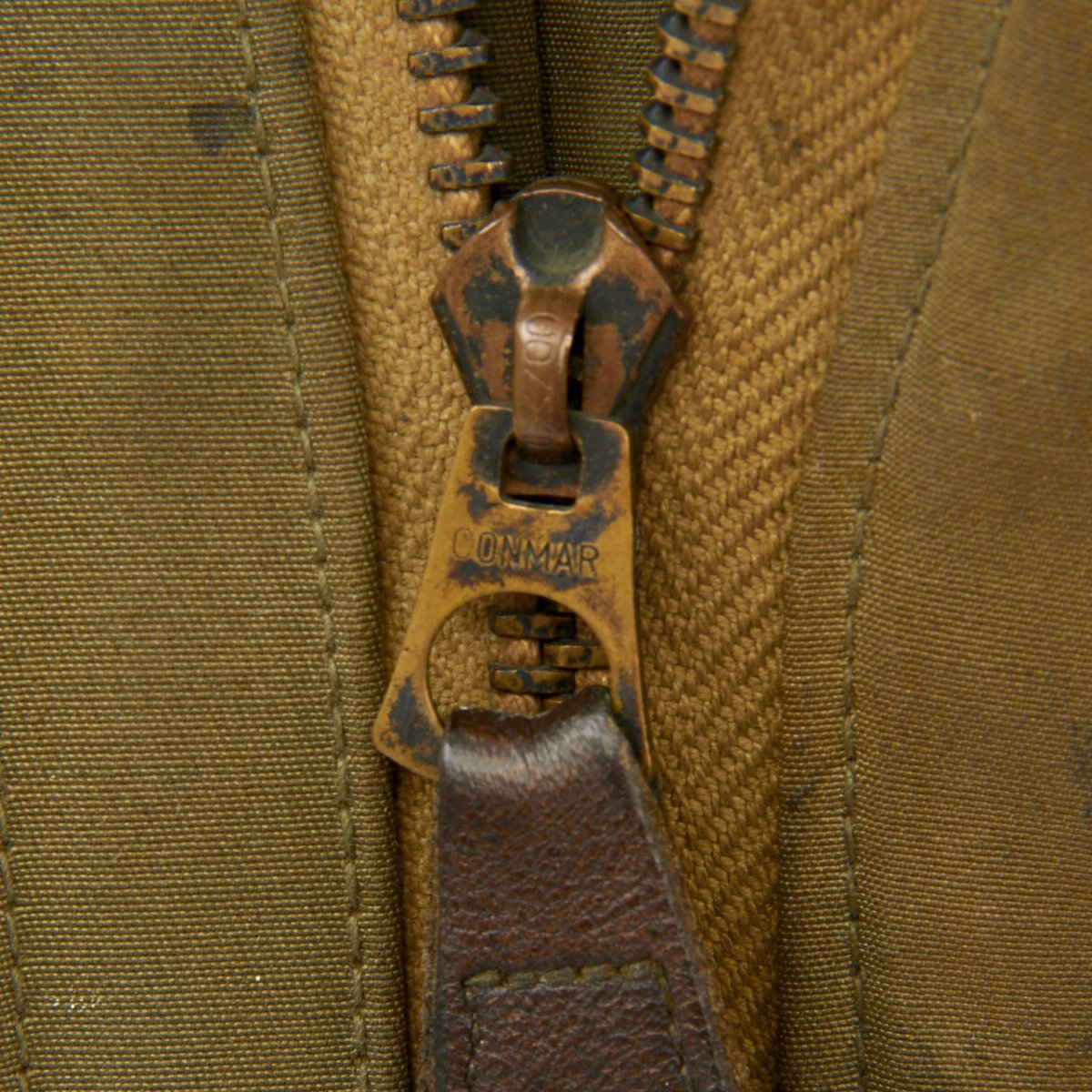 In May 1942, Hirsch-Werner, Inc. contacted the Army Air Corps offering a new, specially developed cloth they called “End-Zone Twill,” which had previously been utilized in the manufacture of football pants because of its extreme durability and strength. When the B-15 was introduced, End-Zone Twill was used as trim on major stress and heavy-wear areas of the lining, though the Rough Wear Clothing Co., along with a few other manufacturers, received contracts for some of their entire production of B-15s Flight Jackets to be made completely of End-Zone Twill.