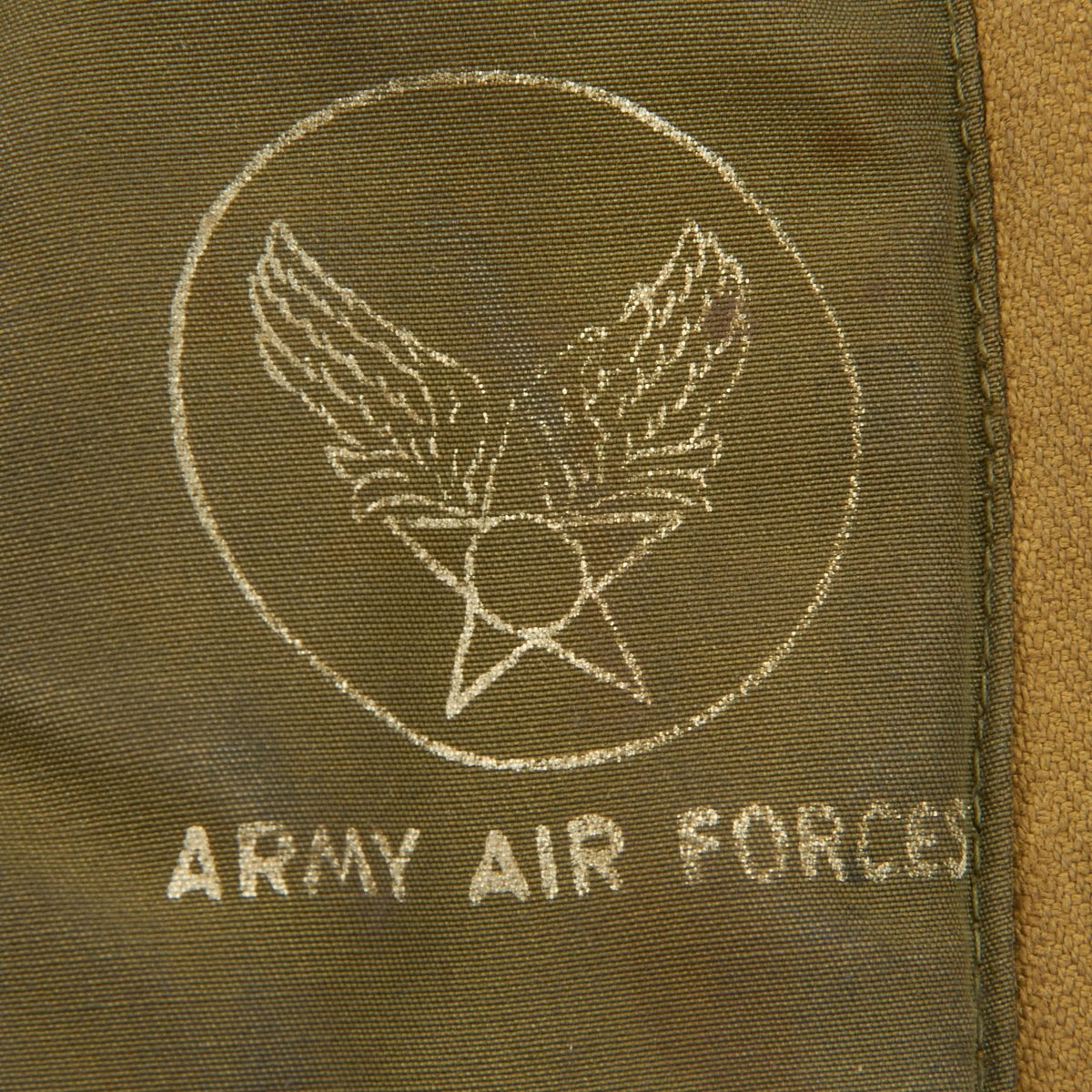 The jacket is offered in excellent condition and features hand painted art that also appeared on the B-24 bombers that the 320th flew. On the front left chest of the jacket is the JOLLY ROGERS insignia with skull and crossed bombs and a red background which was correct for the 320th (319th Squadron used a Blue background, 321st used a Green background and the 400th used Black background). The right chest bears an fantastic vibrant and detailed hand painted MOBY DICK 320th Bomb Squadron insignia. This full color insignia depicts a B-24 as a killer whale. The right shoulder has a wonderful China-Burma-India CBI insignia. The left shoulder has a standard US Army Air Forces insignia which was present on most B-15 jackets. The reverse of the jacket bears a vibrant and detailed hand painted 5th Air Force insignia with the name LT ALEX COHEN stenciled in black paint above. Offered in excellent condition it is a size 40 with typical signs of age and use, has a working zipper and working snaps, original collar and internal lining as well as original data tag.