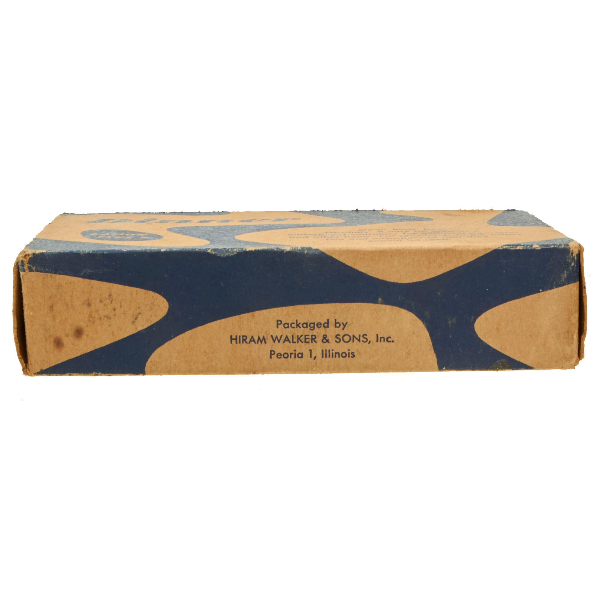 - Opened Dinner Ration Type K (Hiram Walker & Sons, Inc.): This is a very nice DINNER unit by Hiram Walker & Sons Inc. It is the later war "Morale Series", with the blue design on the exterior. This is an opened example where the inner contents can be inspected. While it is opened we do believe all items are present.