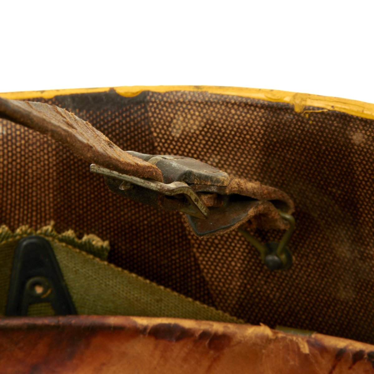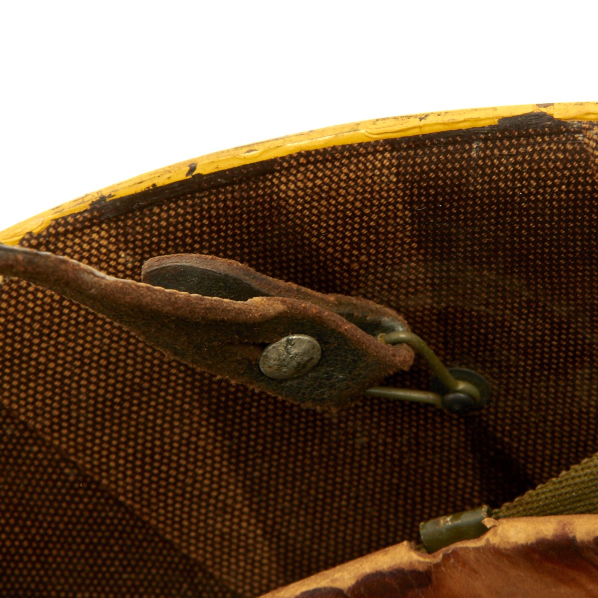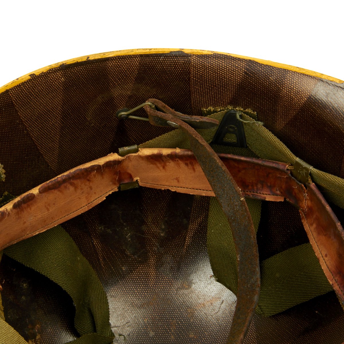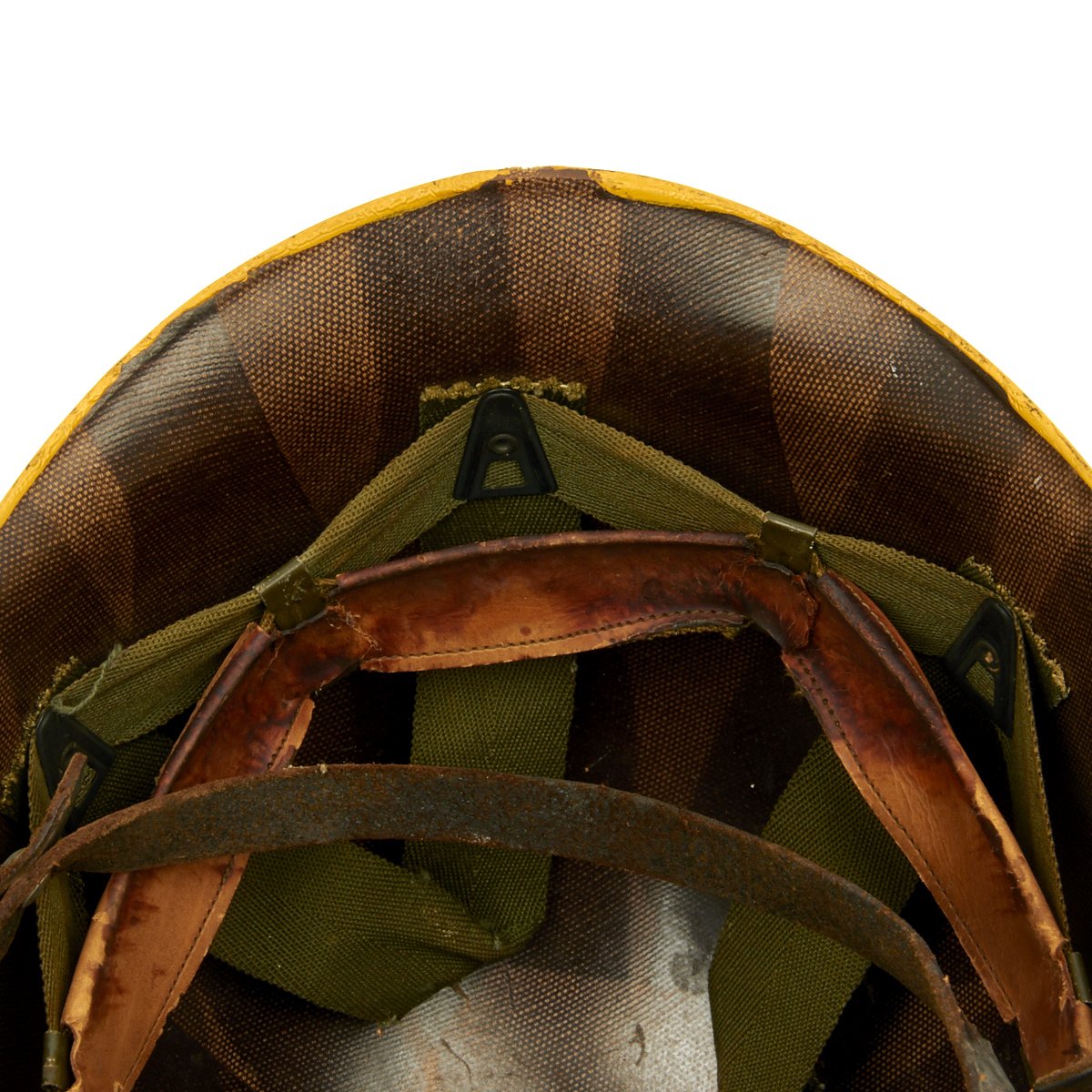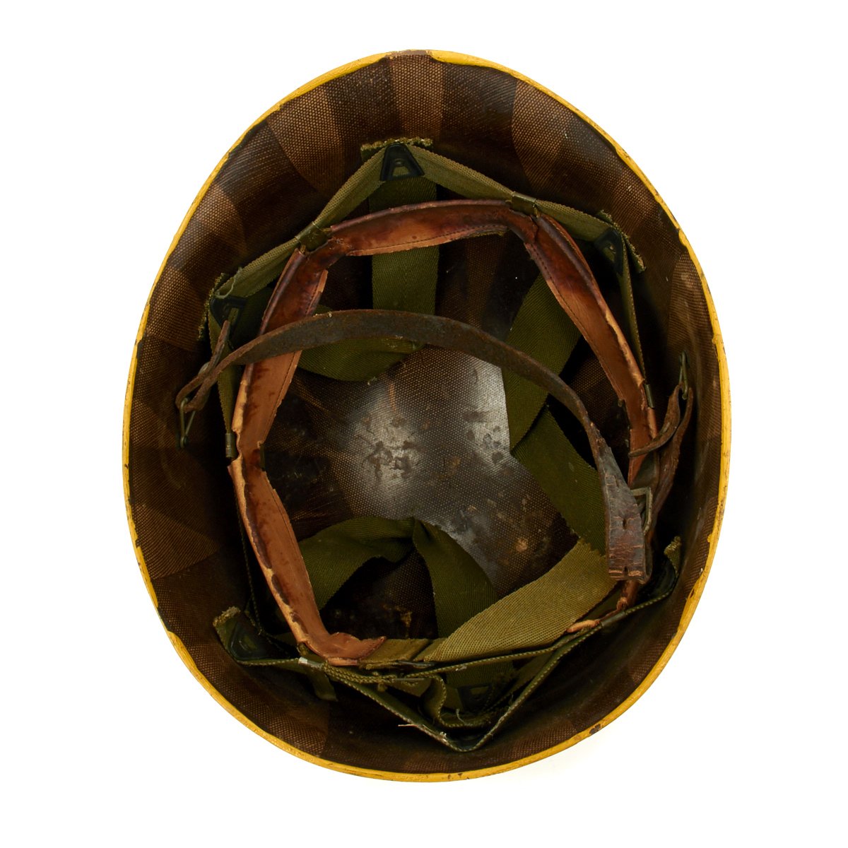 Original Item: Only One Available. Purchased directly from the veteran's family this is a WWII M1 helmet high pressure helmet liner. it is stamped with the Capac Manufacturing Company logo with frontal eyelet. Manufactured in Capac, Michigan this high pressure manufactured M-1 helmet liner is identified by an embossed cross with the words Capac in the crown. Capac Manufacturing Company started M-1 helmet liner delivery to the US Army in September 1942. They produced approximately between 2,000,000 4,000,000 M-1 helmet liners and discontinued production around August 17 1945 when the war ended.