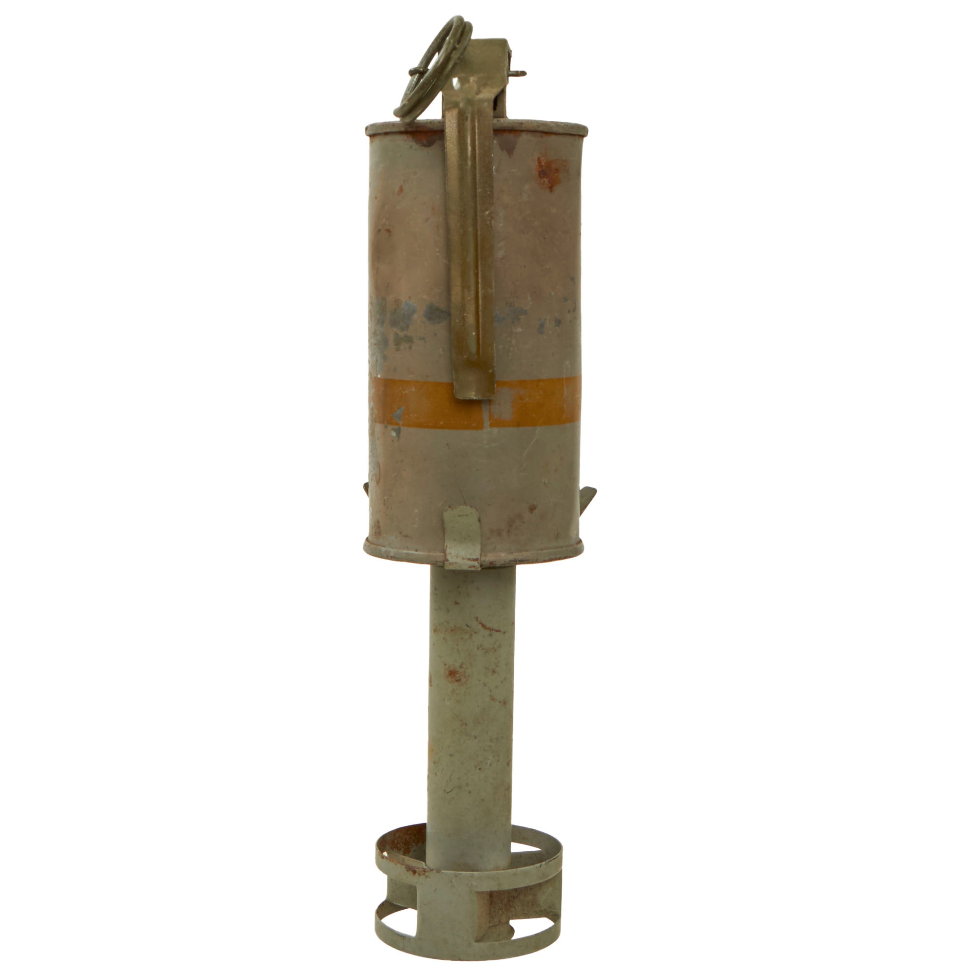 This example is in wonderful condition and retains nearly all of the original OD green and light blue stenciling. Both the grenade canister and the fuse retain full markings and are as follows: