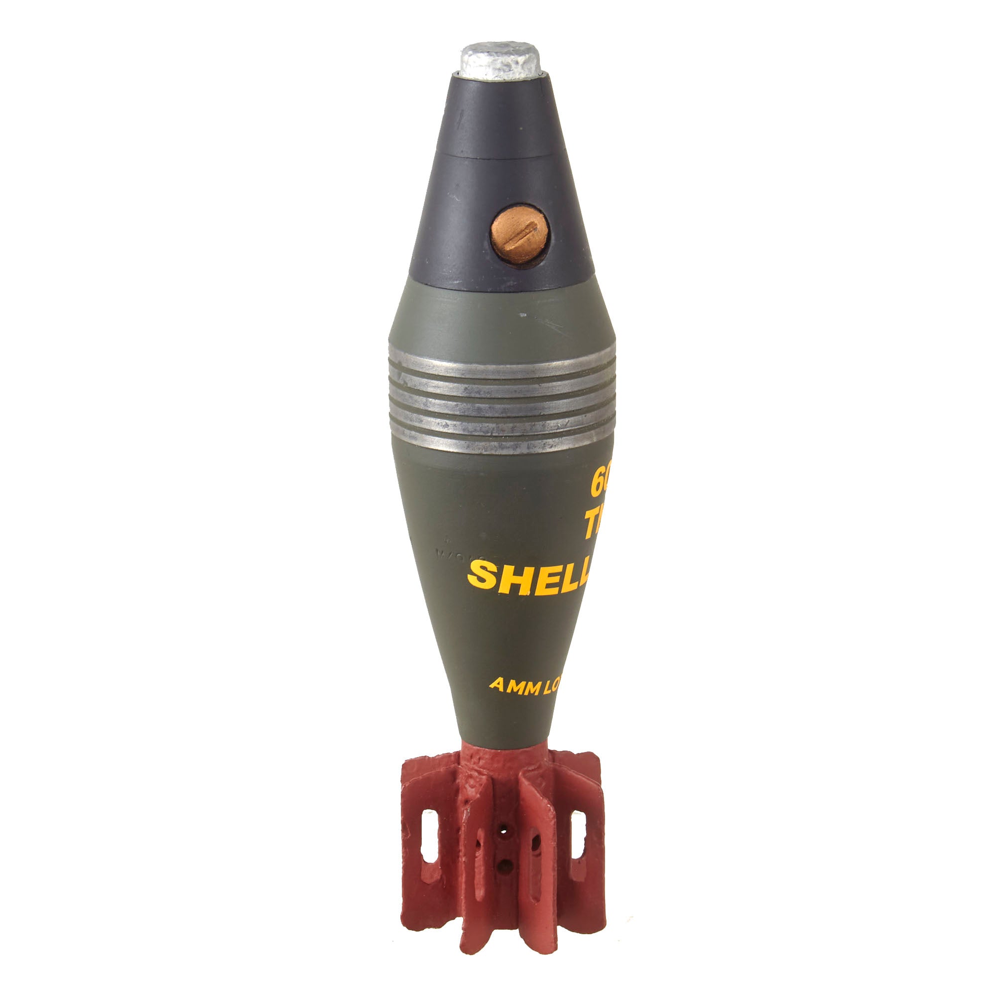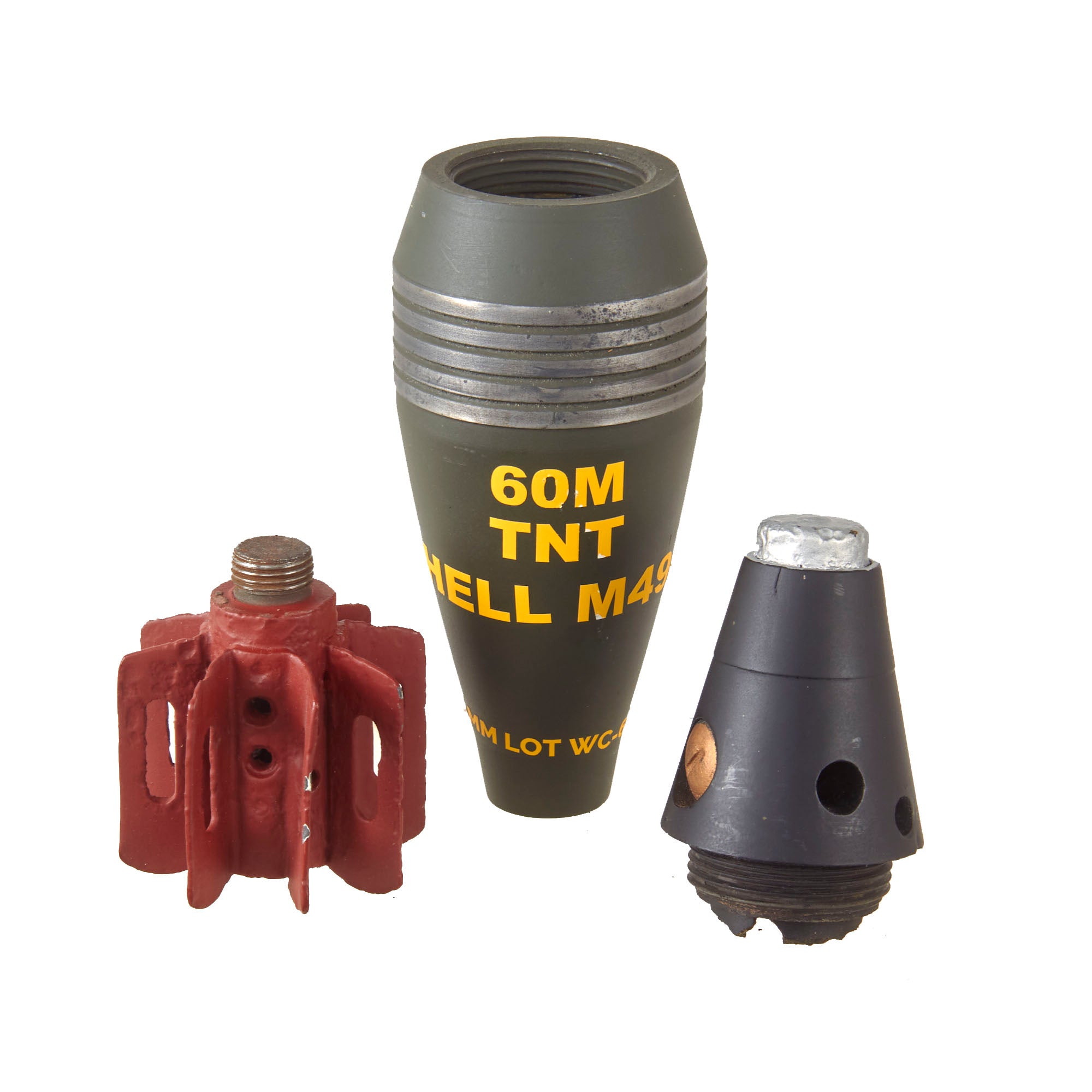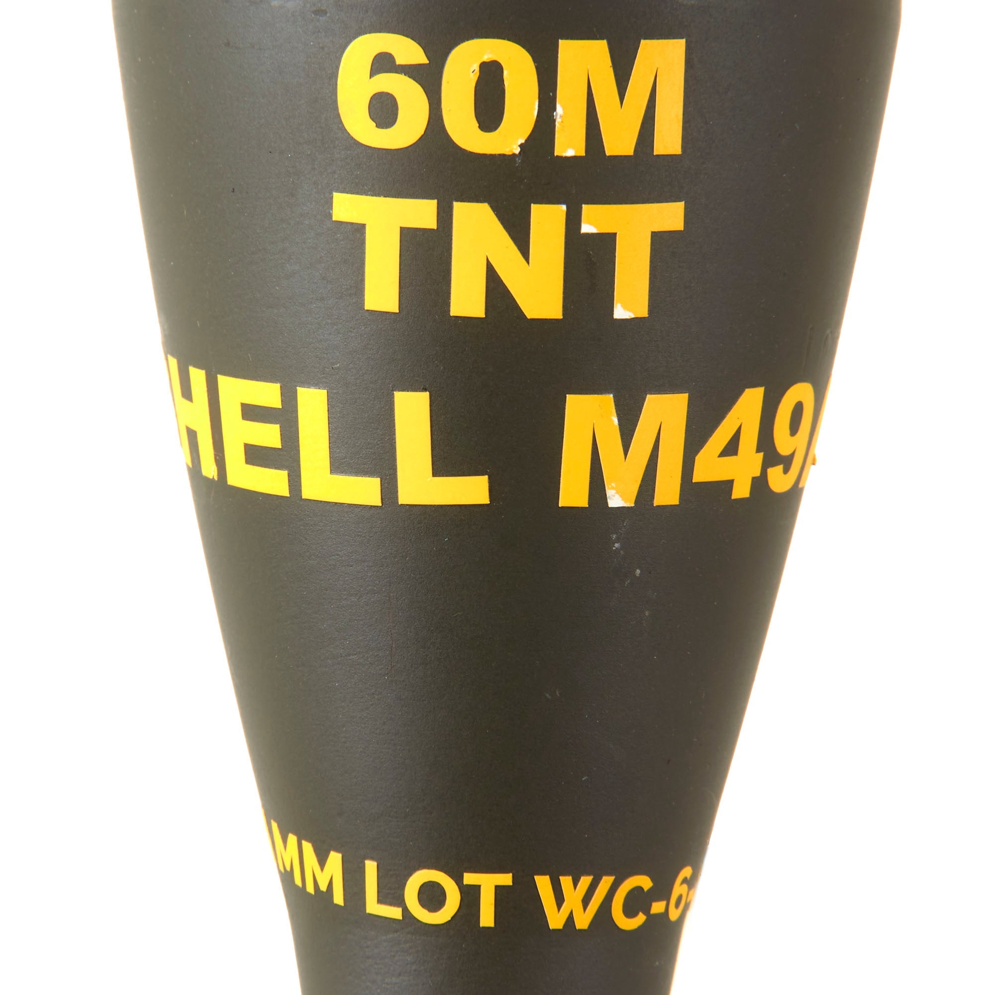 The body has added decal markings but the shell itself is stamped LOT-2-57D-80 60MM M49A2.