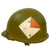 The helmet liner is in excellent service worn condition, and has the original stamping on the webbing still visible but illegible. The chin straps are both intact, with the main helmet chinstrap having the extensions with snaps on the end, which secure the liner to the shell for paratrooper use. Nape Strap is no longer present. The shell has a tactical marking on both sides for the 71st Airborne Brigade.