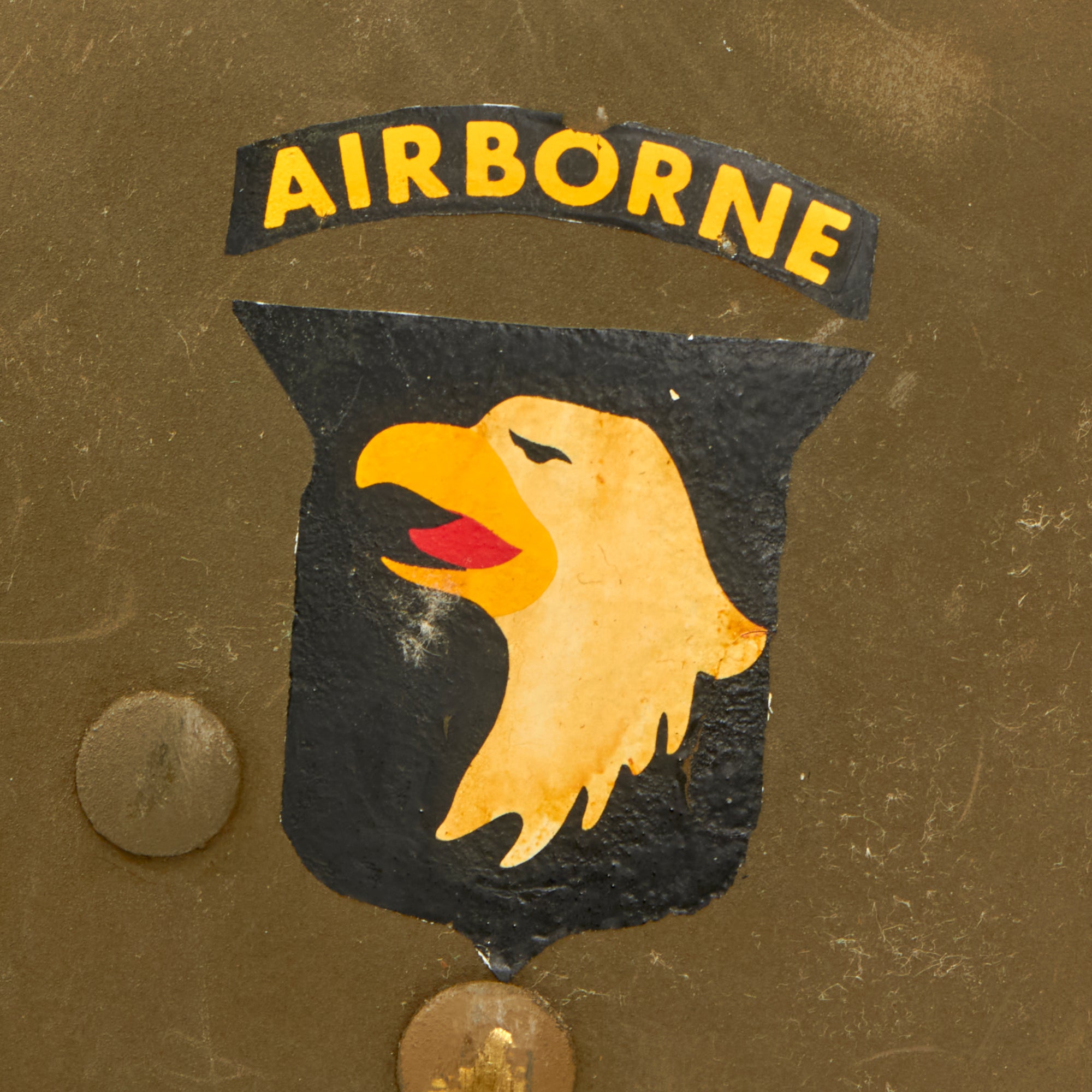 The exterior paint is very well retained, definitely repainted after conversion to a paratrooper liner. It has 101st Airborne Insignia on both sides, which look to be some type of decals, added at some point during service.