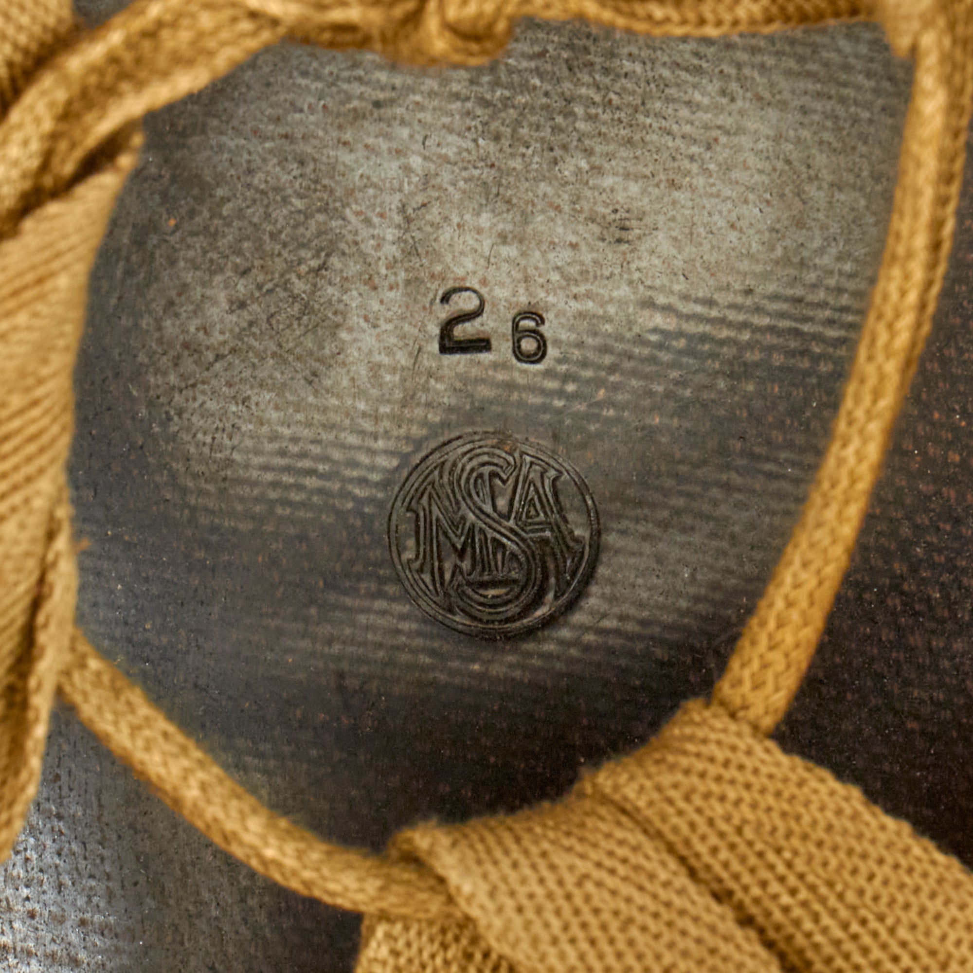 The liner is at it's core a correct "high pressure" style M-1 Helmet liner, which was manufactured by Mine Safety Appliances of Evans City, Pennsylvania, identified by an embossed stylized MSA logo in the crown. There is also a 26 mold number next to this, used to track deficiencies during manufacture. Mine Safety Appliance started M-1 helmet liner delivery to the US Army in September 1942. They produced approximately between 2,000,000 – 4,000,000 M-1 helmet liners and discontinued production around August 17, 1945 when the war ended.