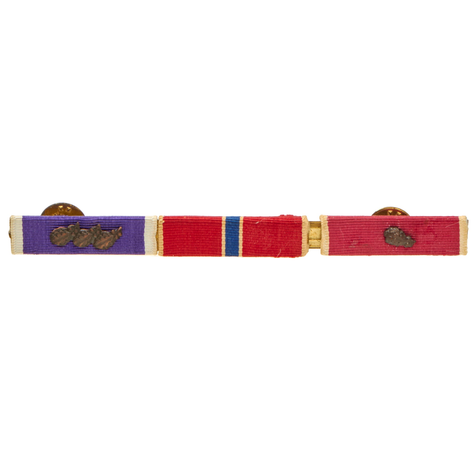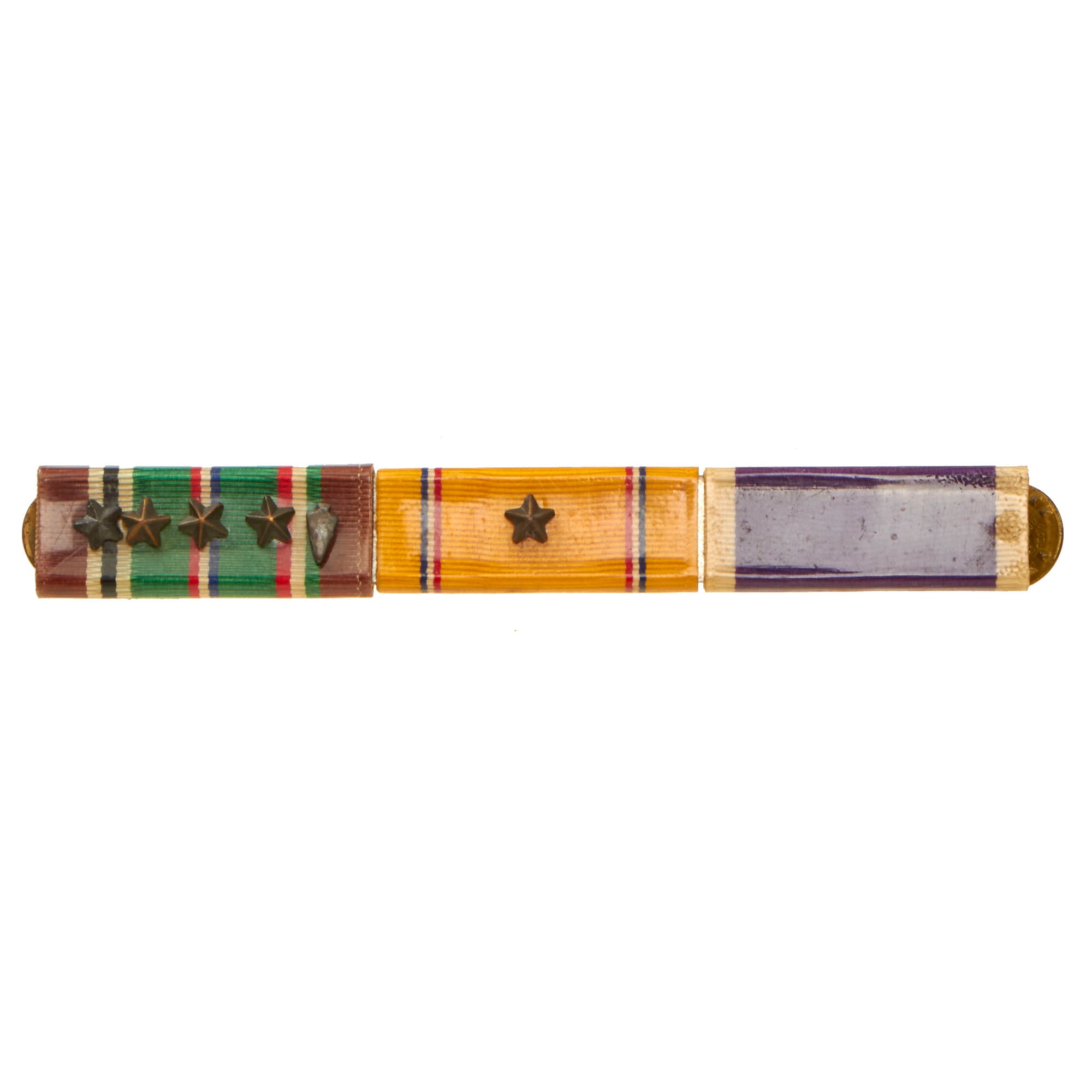 Original Items: Only One Available. This magnificent Ribbon Rack is a true testament to the dedicated service of a man who served his country with honor and distinction. The ribbon set consists of a stunning array of 9 awards, each of which tells a unique story of valor and bravery. The ribbons still retain much of their original, vibrant colors, with only a few showing signs of fading, adding to the character and history of this remarkable piece. Three of the ribbons are the highly sought after “plastic” Wolf Brown ribbons.