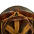 The early M-1 helmet shells had a set of fixed (static) chinstrap loops called "bales" and a stainless steel rim. These rims were both rust resistant and had "non-magnetic qualities" that reduced the chance of error readings when placed around certain sensitive equipment (such as a compass). In October 1943, issues with the fixed bales breaking off resulted in a change to the "swivel bales" that this helmet has. In 1944, to deal with paint wearing off the very shiny stainless steel rim, the material was changed to manganese steel in October, and then the seam moved to the rear in November.