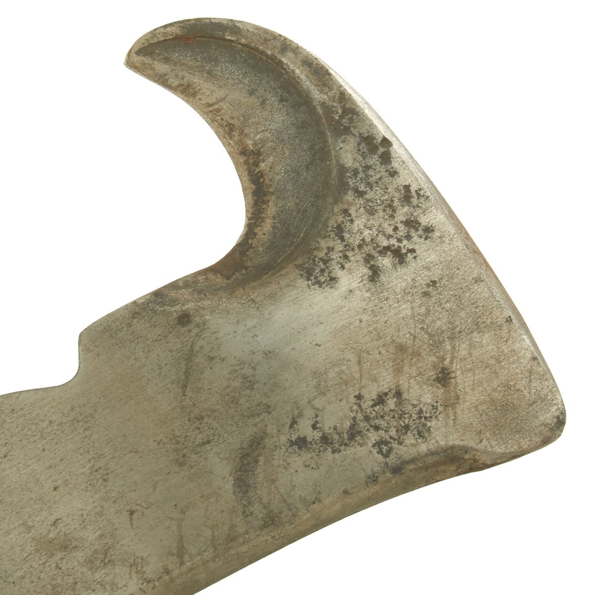 Original Item: Only One Available. The LC-14-B Woodman's Pal survival axe was originally a tool for forestry or agriculture, but quickly earned a place as an outstanding military implement. The well designed and balanced blade was first procured in World War II, and was useful for brush clearing, construction, camouflage, and a multitude of other listed uses. The LC-14-B Woodman's Pal served through the Vietnam War and is still part of the military inventory of edged tools in the 21st Century. This example is in very good condition, and is still quite sharp! The stacked leather handle is intact, and in good shape.