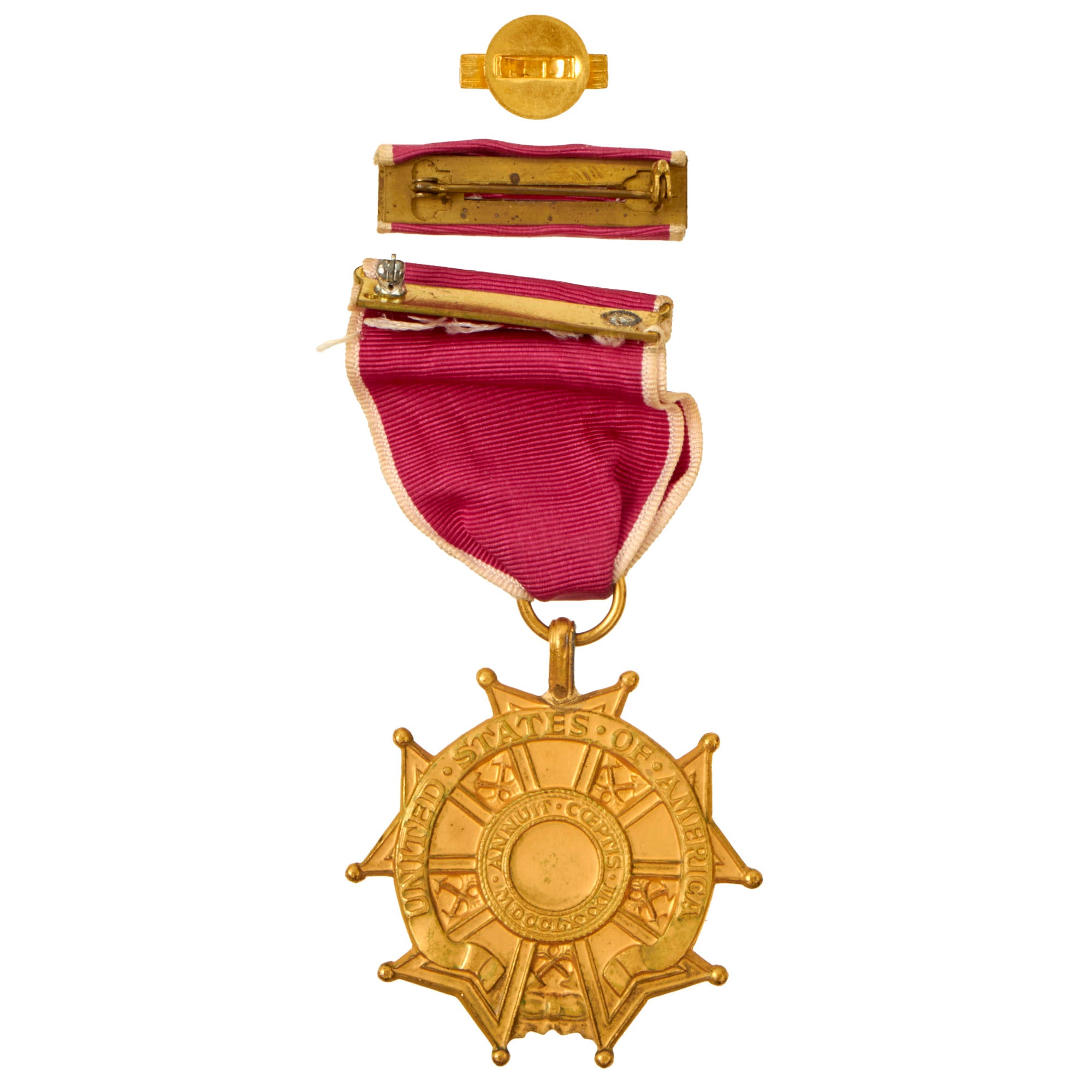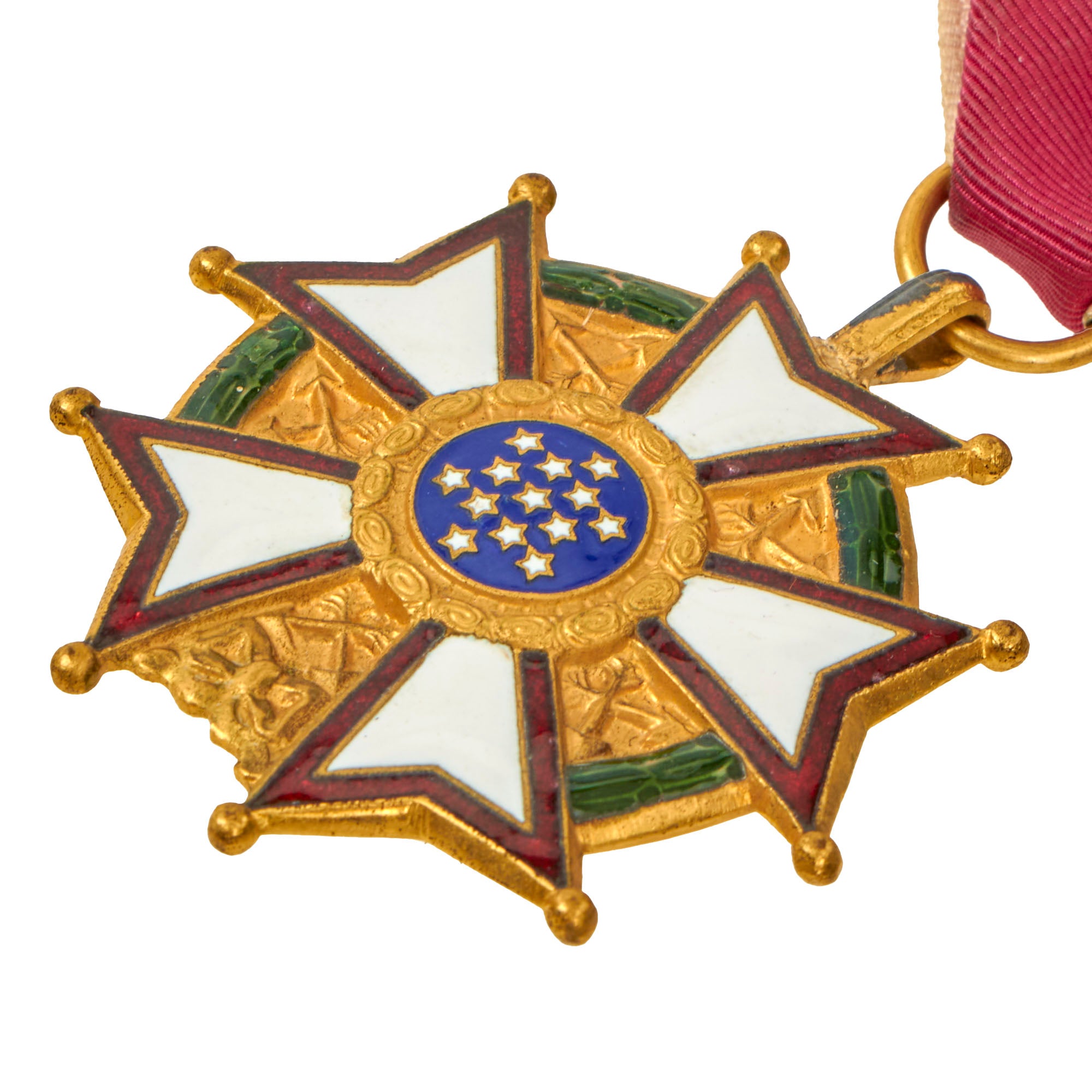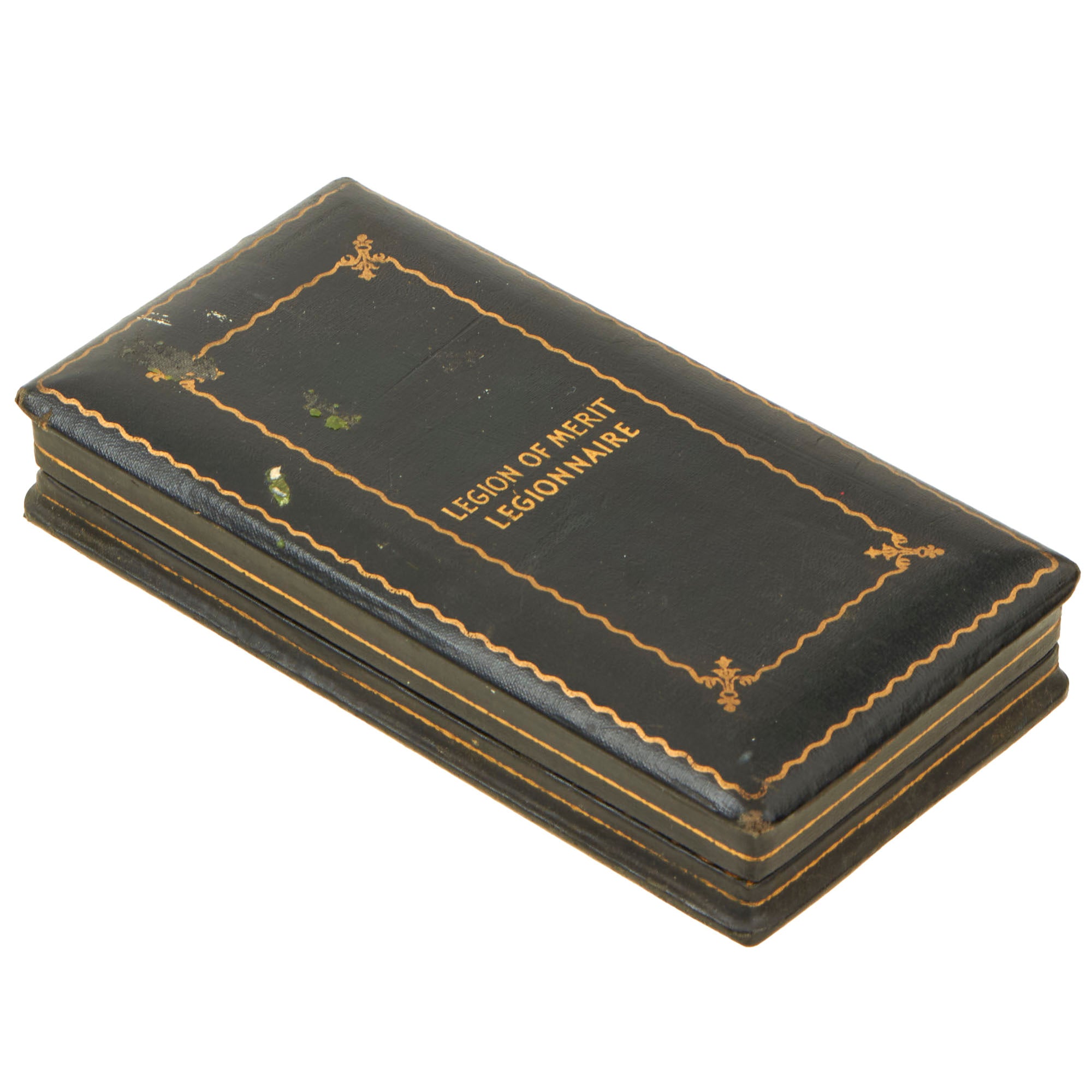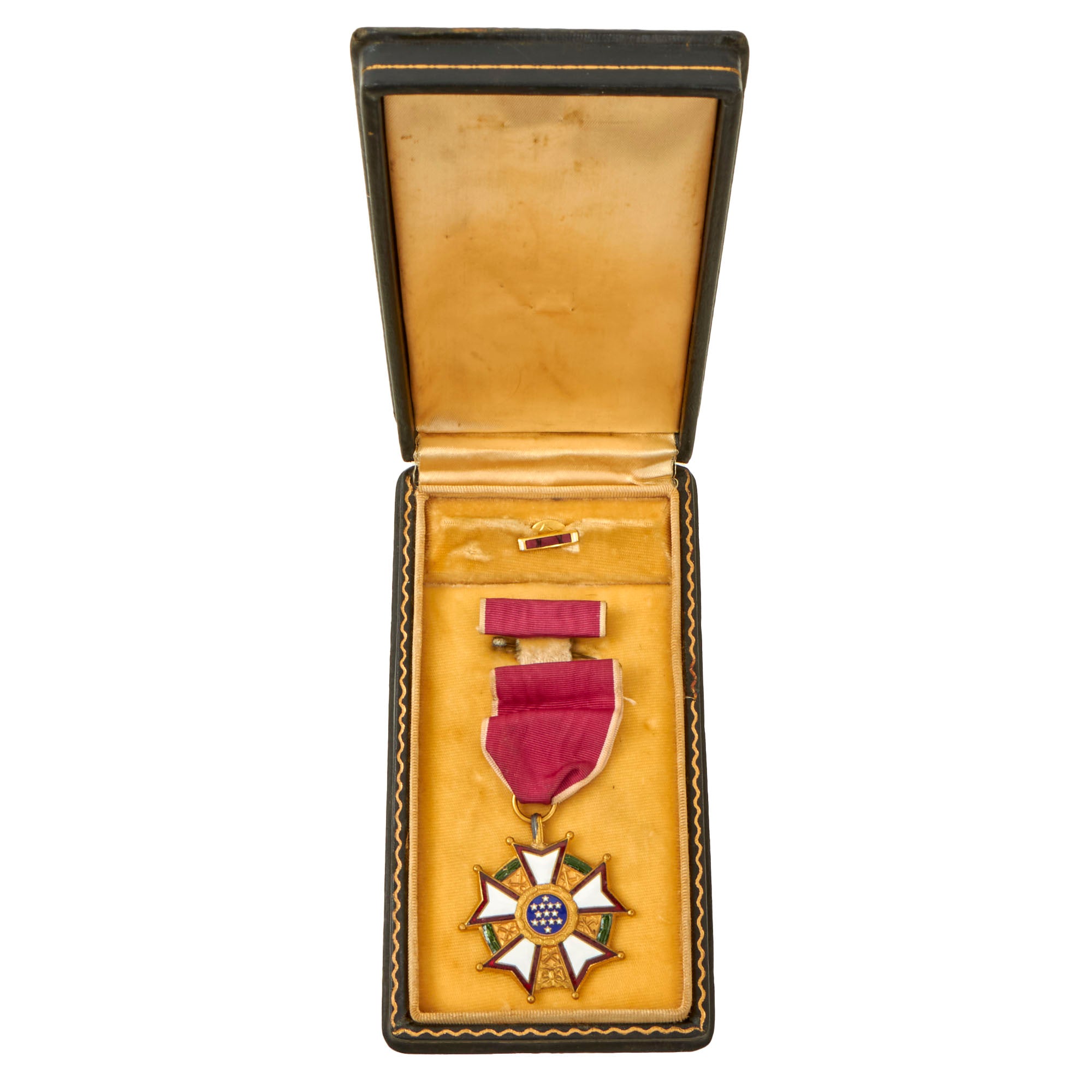 Original U.S. WWII Legion of Merit Legionnaire Degree With Correct 1940’s “Gold Gilt” Full Wrap Brooch with Broken Pin and Lapel Device With Proper Case