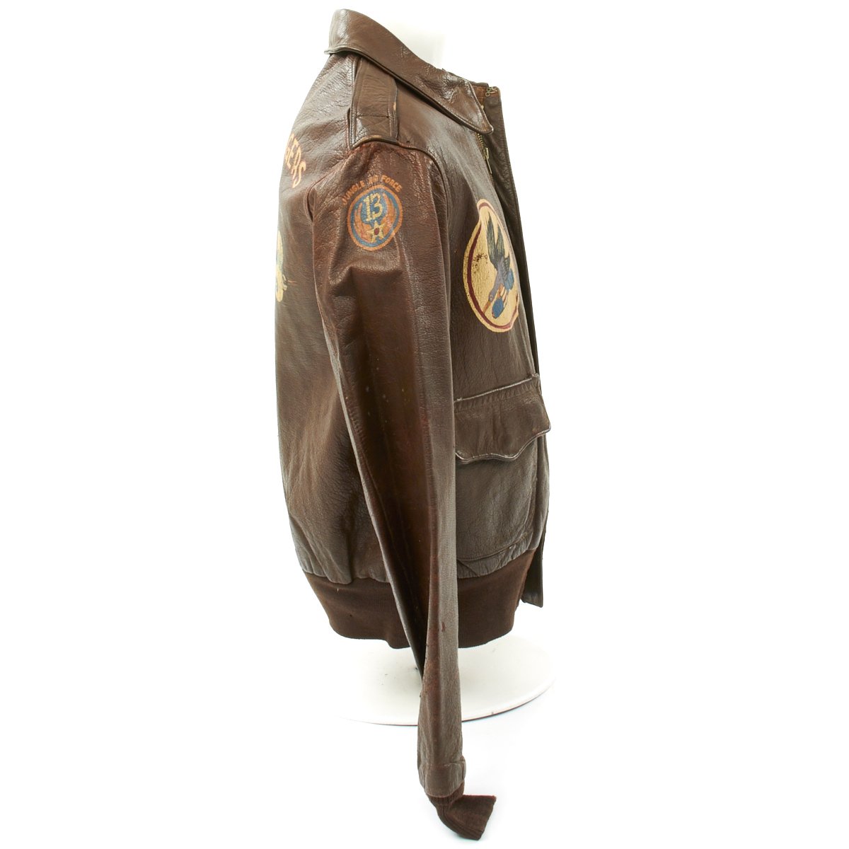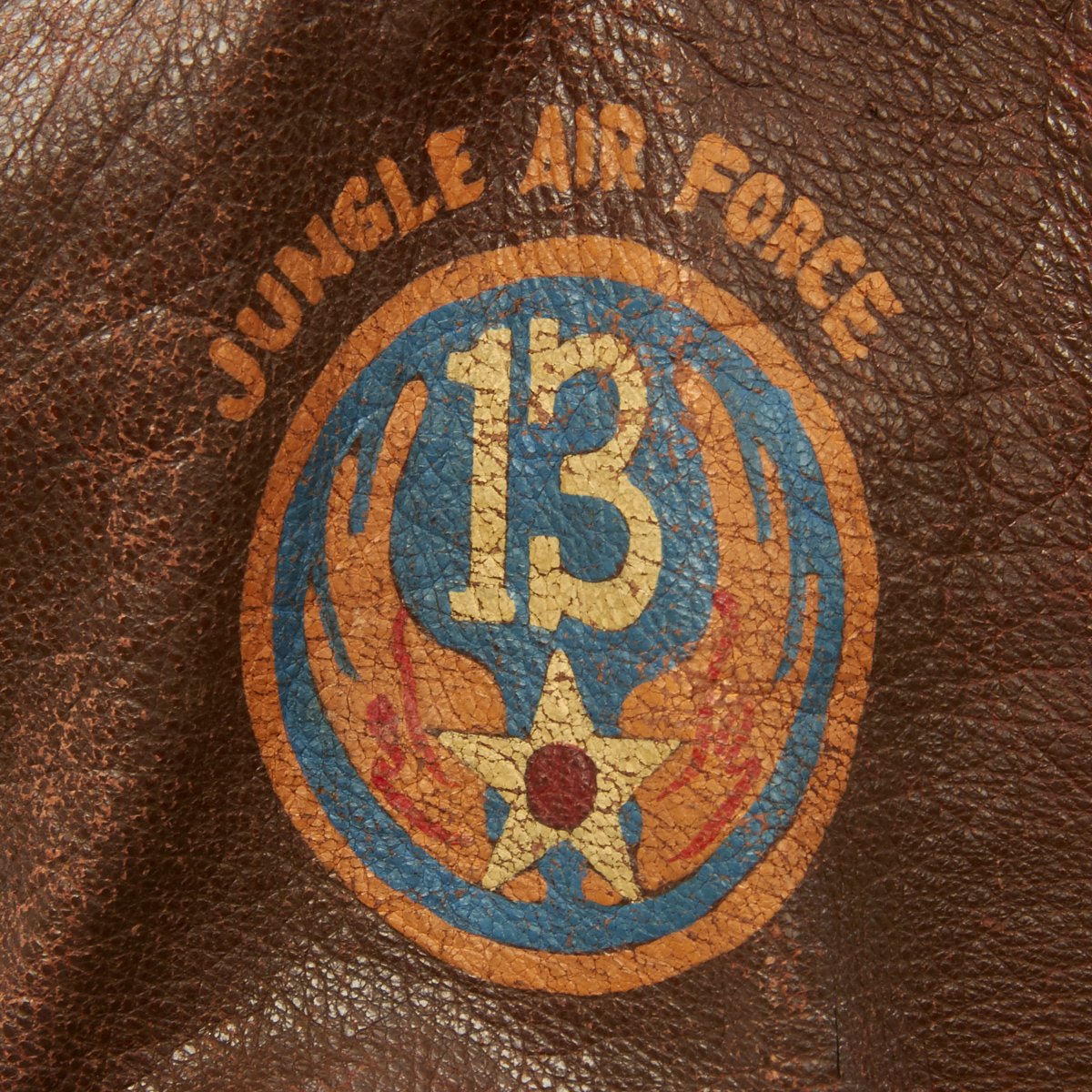 - Right upper arm bears a hand painted 13th Air Force insignia above which it reads Jungle Air Force.
