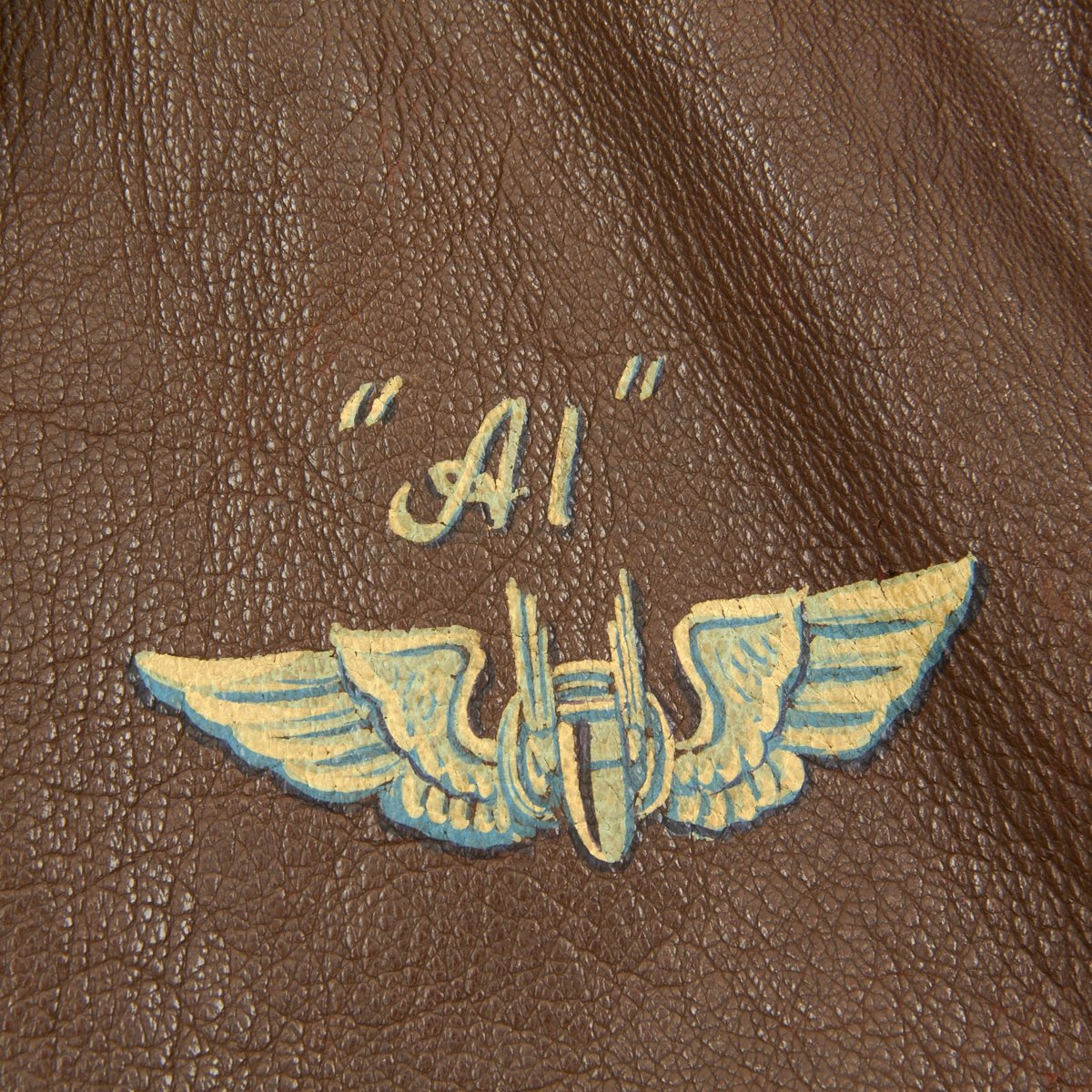 - The left chest bears a beautiful hand painted set of Air Gunner wings above which is the named "Al".