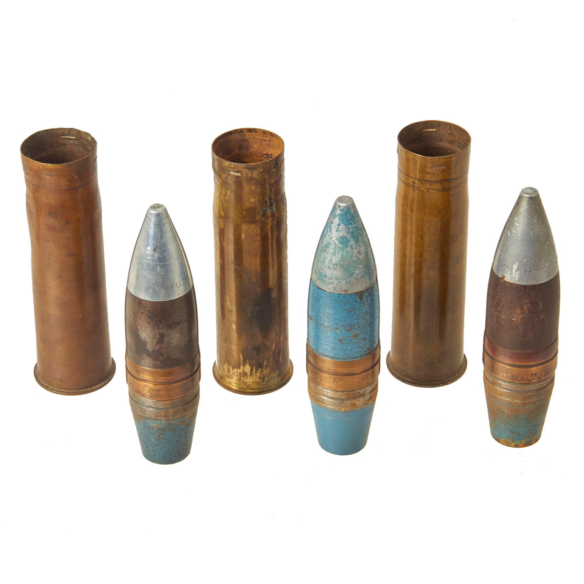 Original Items: Only One Lot of 3 Available. This is a fantastic lot of 37mm Dummy rounds, as used with the M3 Anti-Tank Gun. All rounds are clearly marked as being dummy rounds as well as the fuzes. These were never intended to be used as live ammunition and are totally inert, in compliance with the current BATF standards governing ordnance.