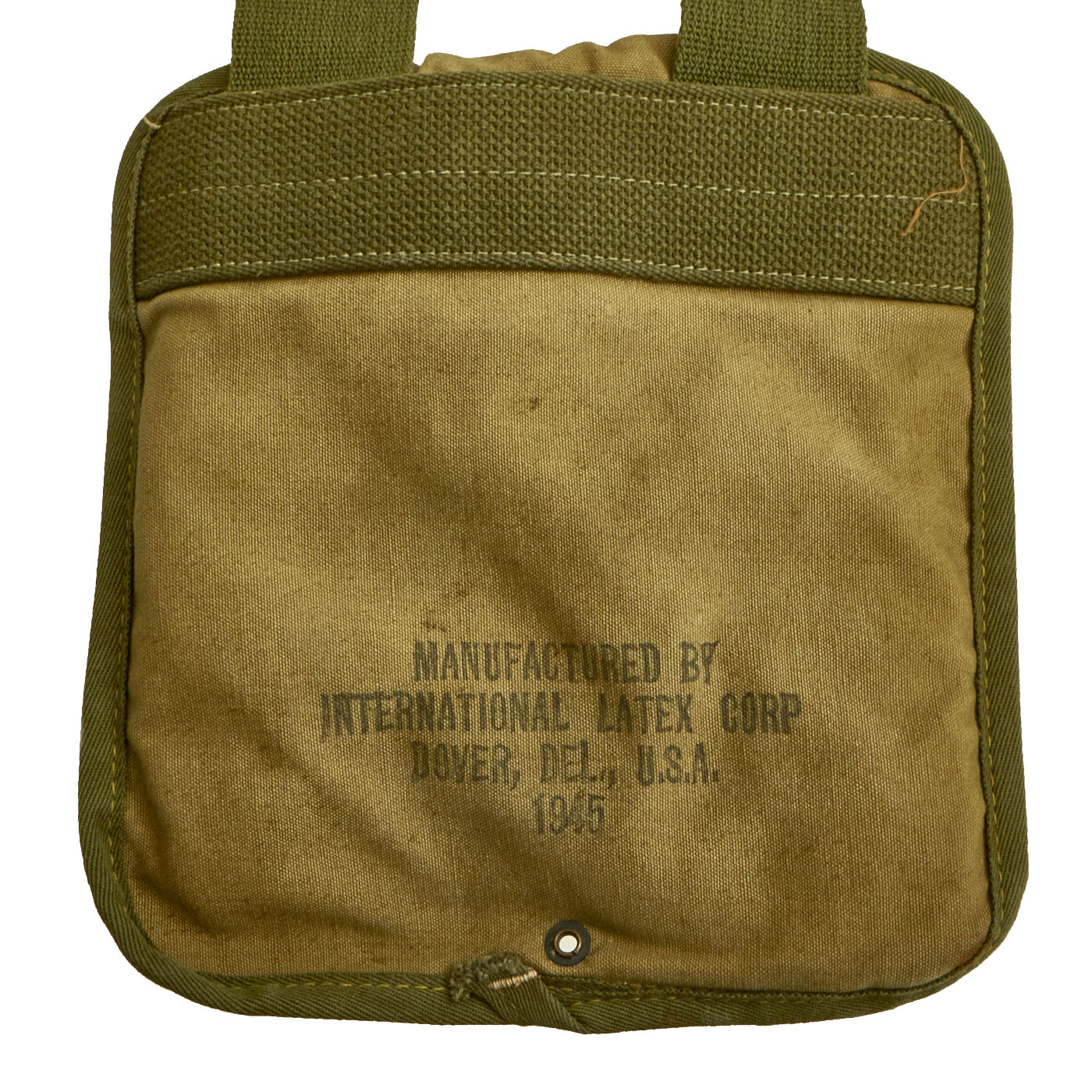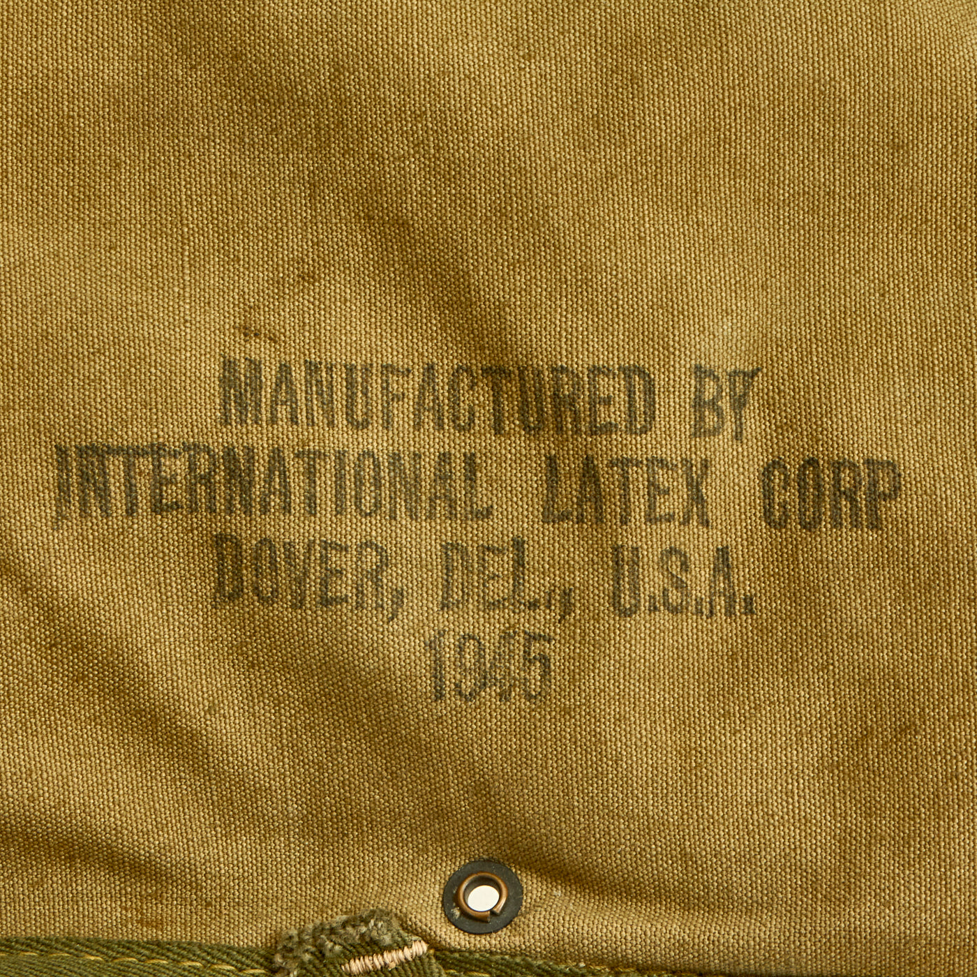 Manufactured by International ‘Latex Corp. Dover Del. USA 1945. This canteen was one item that was included in the 1943 Experimental Combat Outfit, only parts were accepted (the M43 Field Jacket and the M1943 Pack for example) but the collapsible canteen was not accepted as it was deemed “simply beyond the state of the art” and would be placed on hold awaiting better plastic and molding processes.