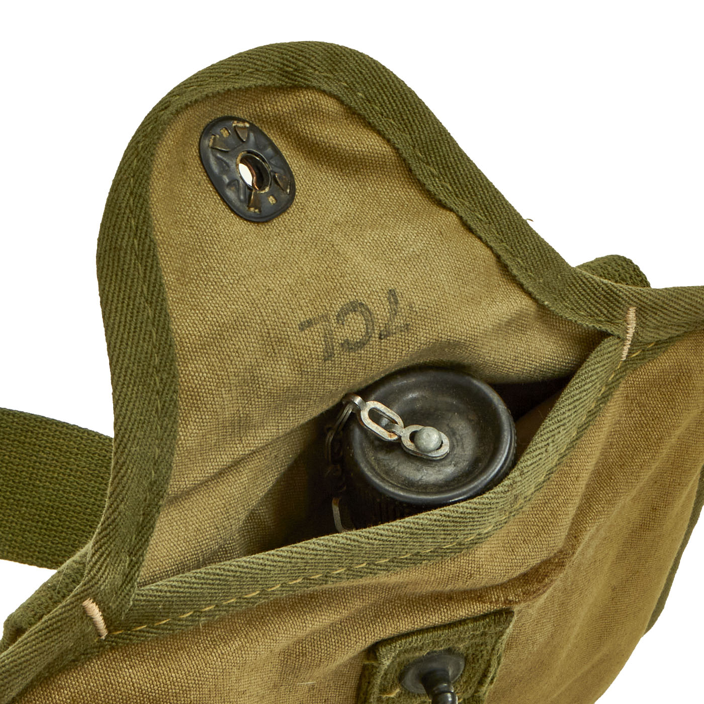 There are no holes or damage to the cover and as far as we can tell, there's no damage to the bladder either. Overall great condition for a very uncommon canteen.