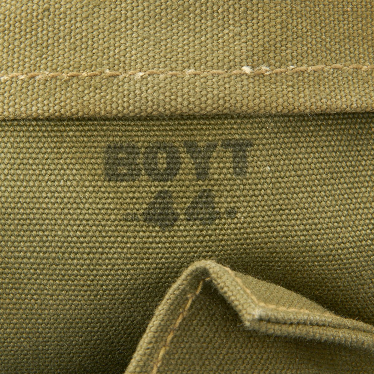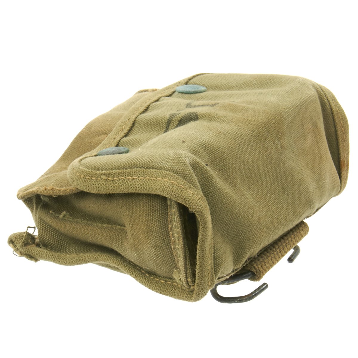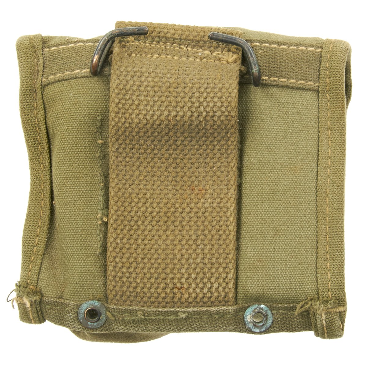 The M-2 version of the Jungle Kit replaced the M-1 type which was found to be rather unpractical, mostly out of reach, and too large. The present Kit was introduced in 1944, and proved an immediate success with the troops (both Army and Marines would use it); its Container hooked into the eyelets of either the Pistol or Cartridge Belts, was within easy reach of the wearer, and could be opened or closed by two press studs; contents were sometimes modified by the owner, depending on his personal taste and/or foresight. The M-2 Individual Medical Jungle Kit was only manufactured in olive-drab canvas; it was supplied to each soldier fighting in jungle areas.