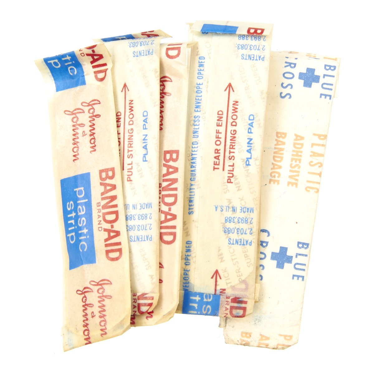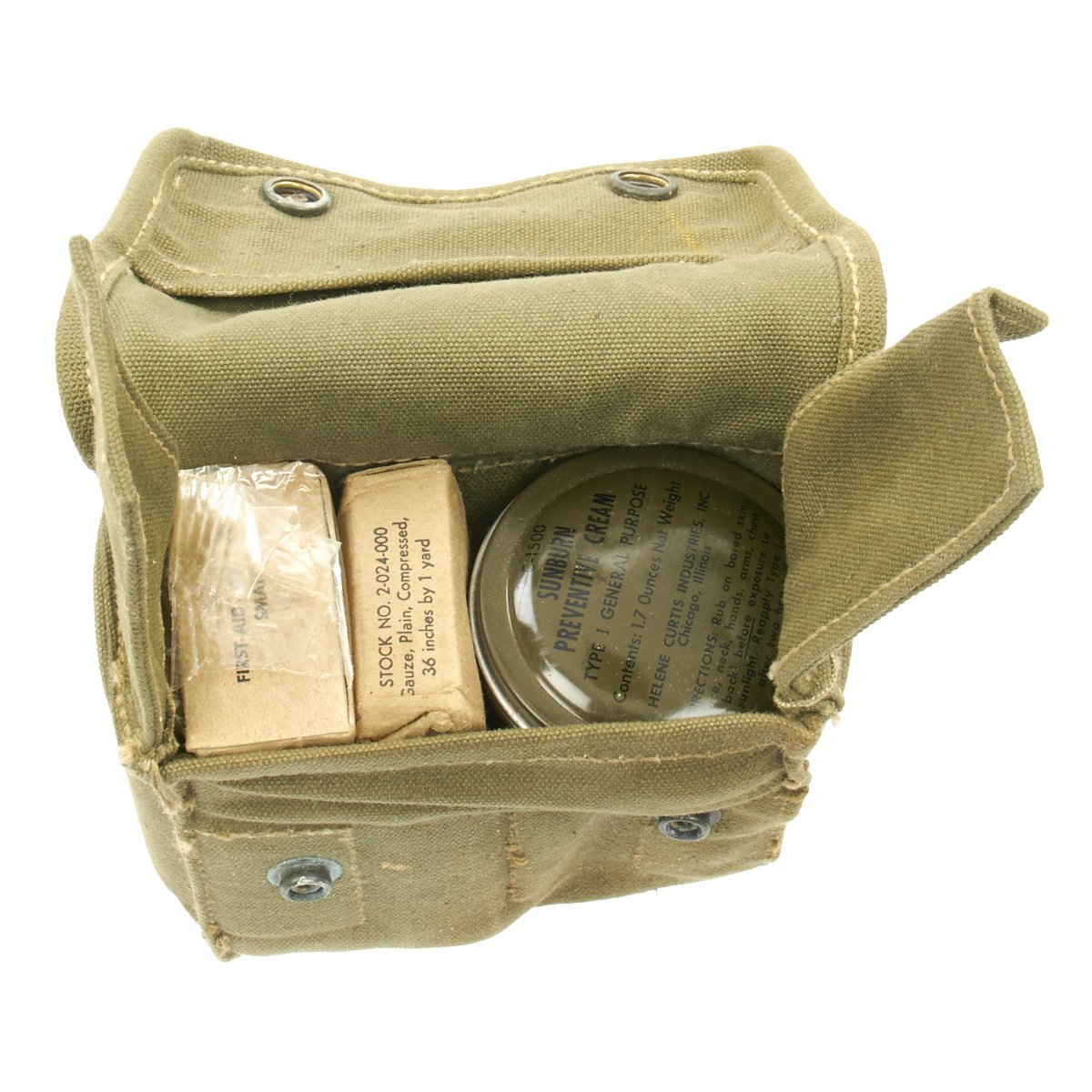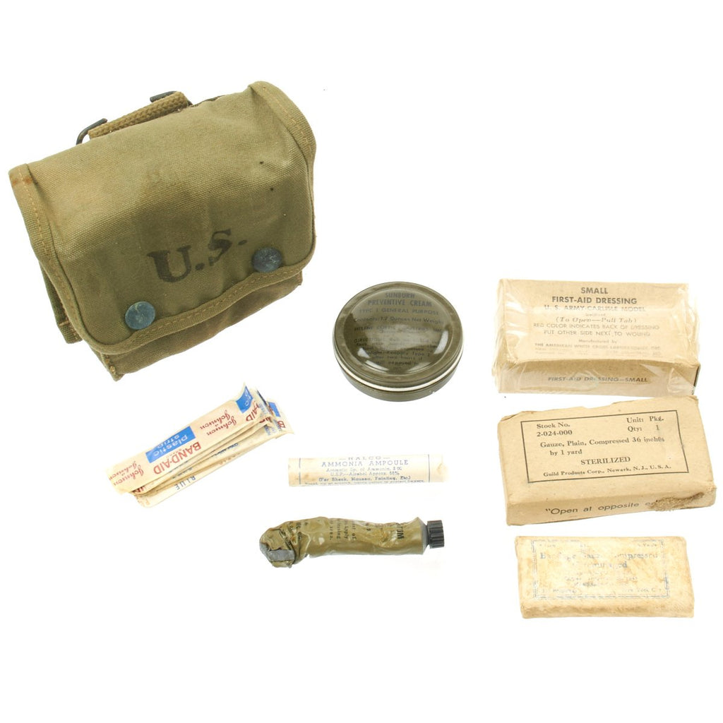 This is a very nice example with WWII supplies still inside, the band aids are postwar. Overall condition is very good.