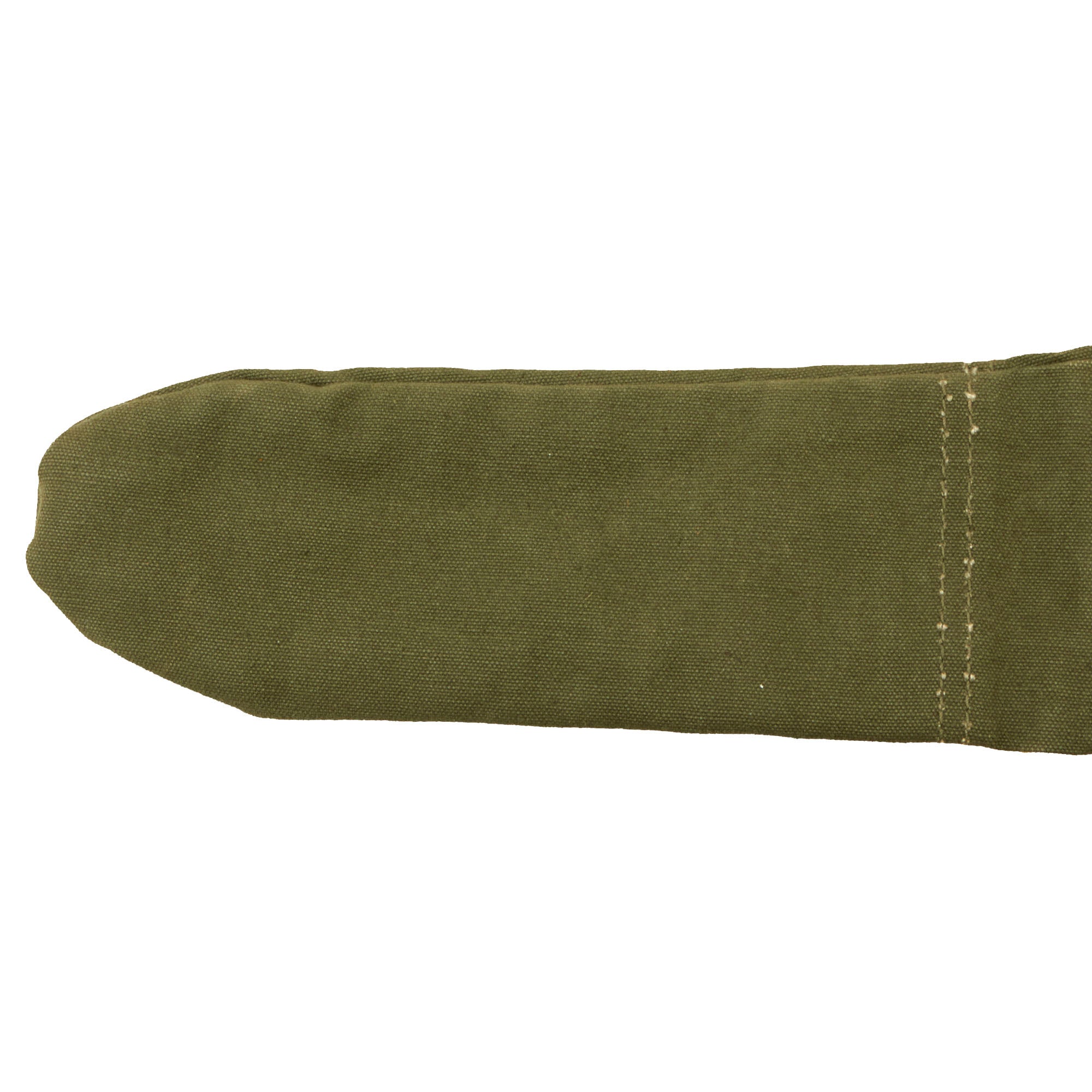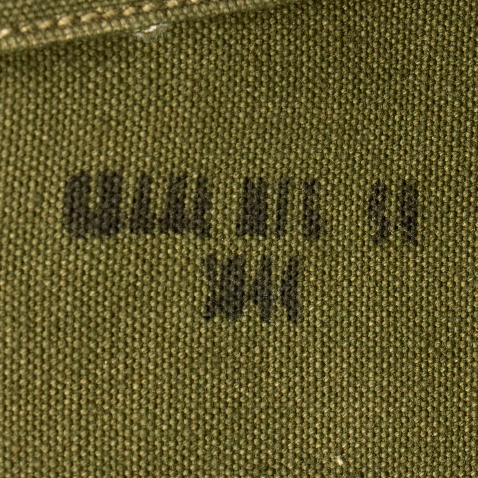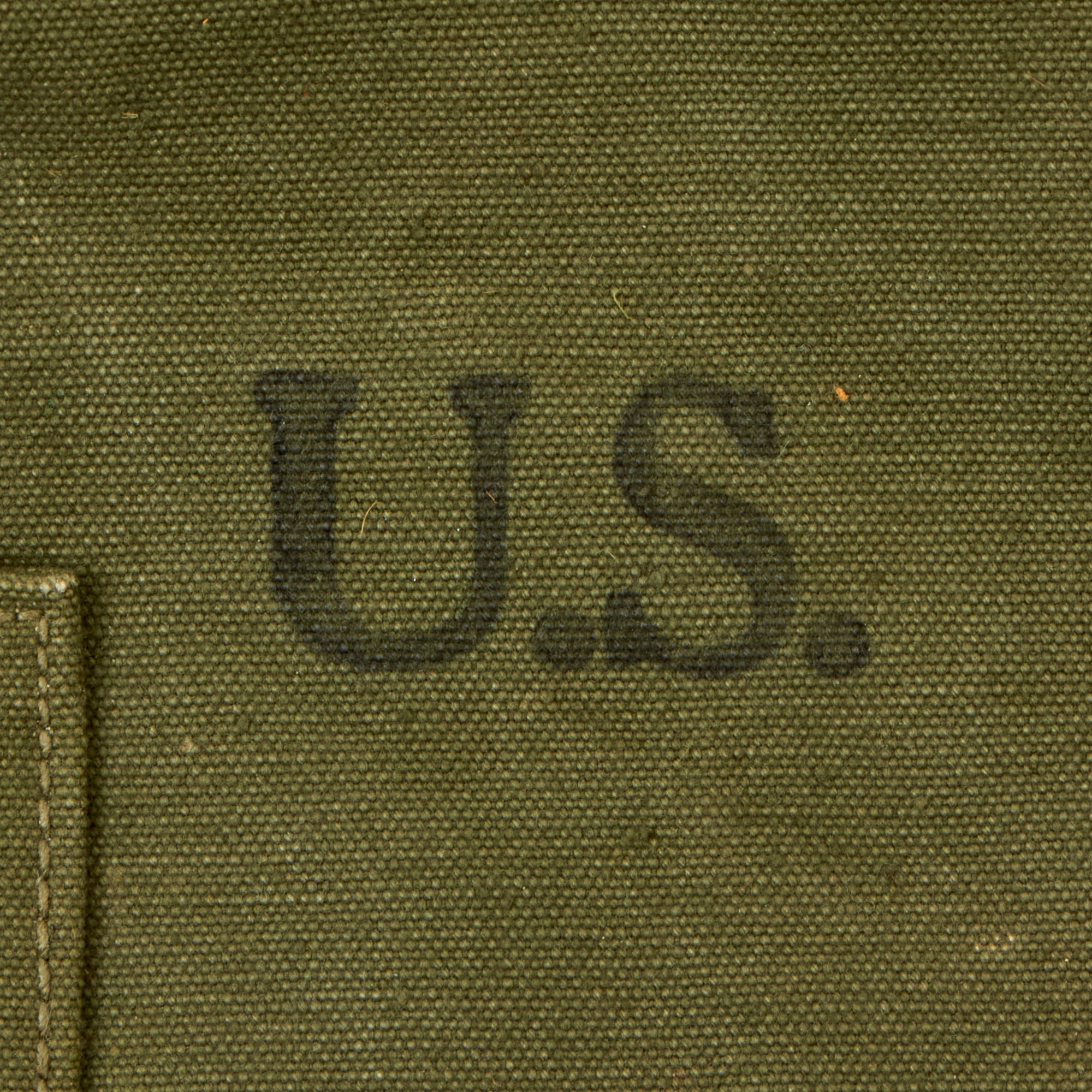This example is marked under the top flap: SHANE MFG. CO. / 1944, and is made of OD Green #7 Canvas, which has just a bit of storage wear as well as service wear with a few popped stitches. This is a darker, more "green" type of OD green, as typical of later war produced items. The case is overall very good, with an intact shoulder strap, working zipper, and no rips or tears in the fabric. Definitely excellent condition for any age. Ready to display along with your WWII Issue M1 Carbine!