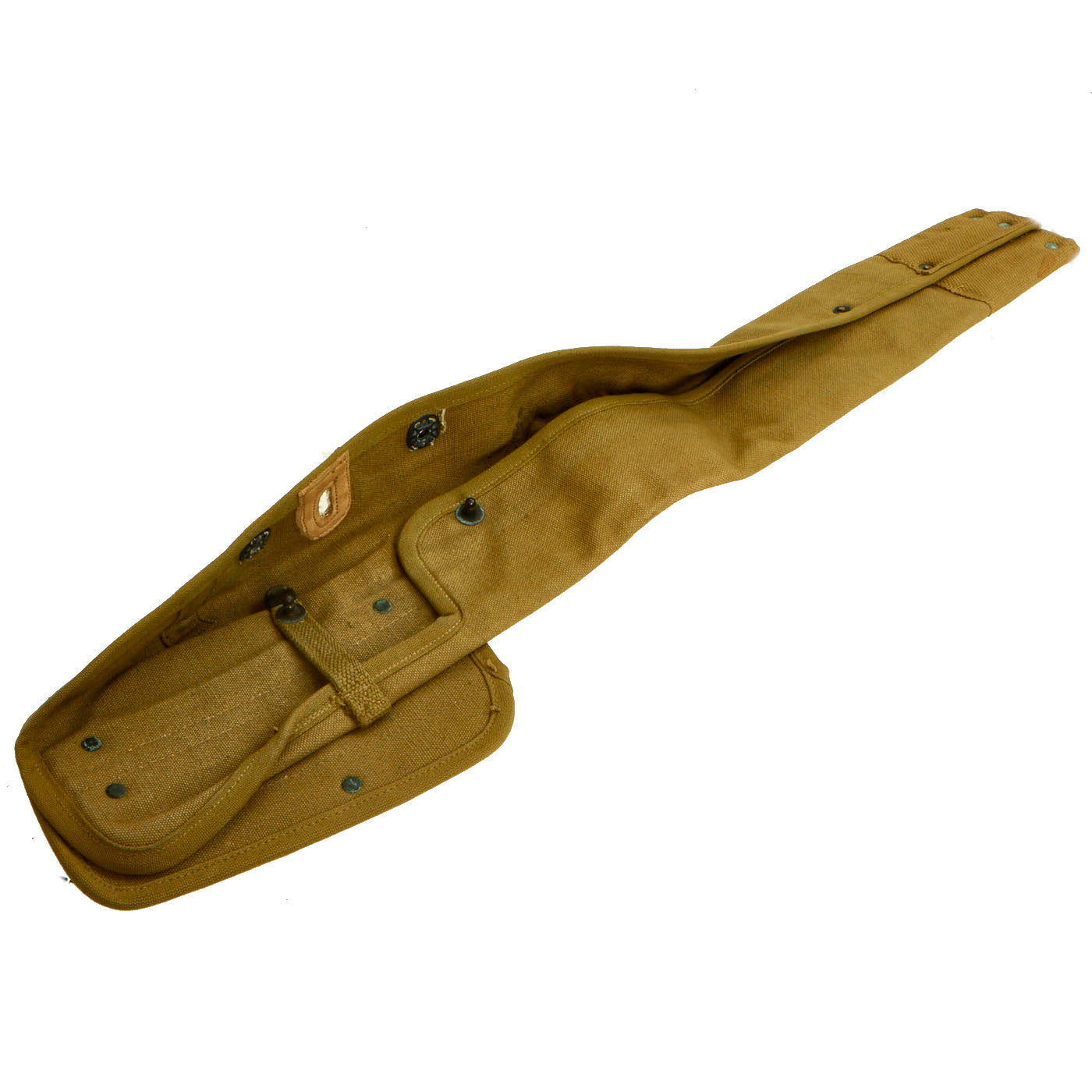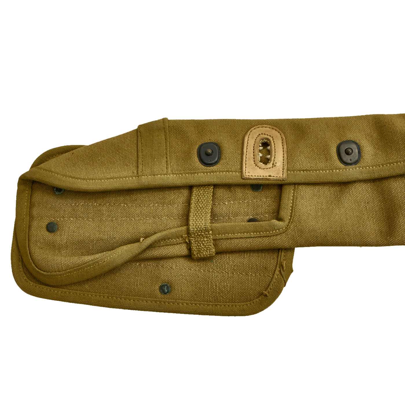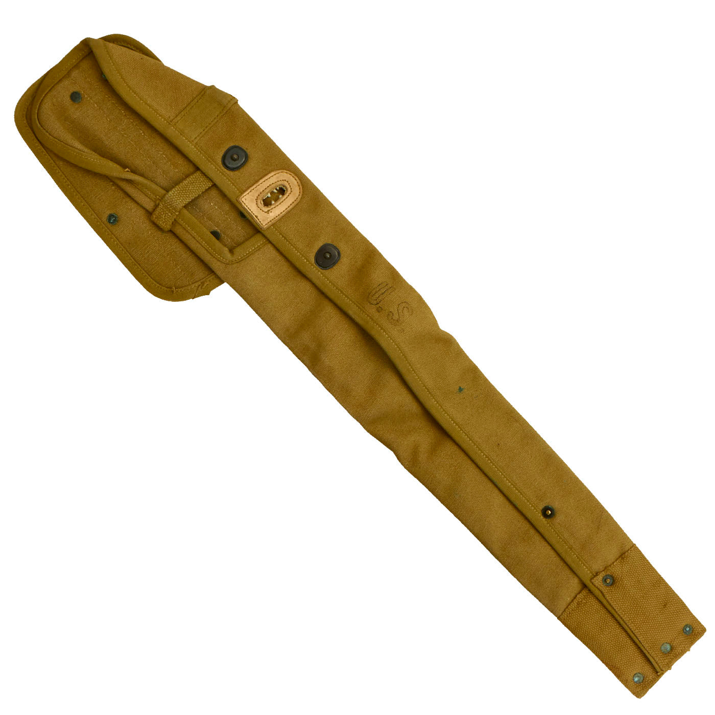 Original Item: Only one available. These are quite rare! This is an very good condition unissued example of the extremely rare experimental U.S. WWII M1 Carbine short hip holster. The short holster was specifically designed for troops that could not be encumbered by carrying a rifle over the shoulder with a sling or in their hands. The ingenious short holster allowed the user to have both hands free by allowing the M1936 pistol belt to slide between the scabbard and the canvas heavy hip pad so the soldier could wear his carbine on his hip (cross draw).