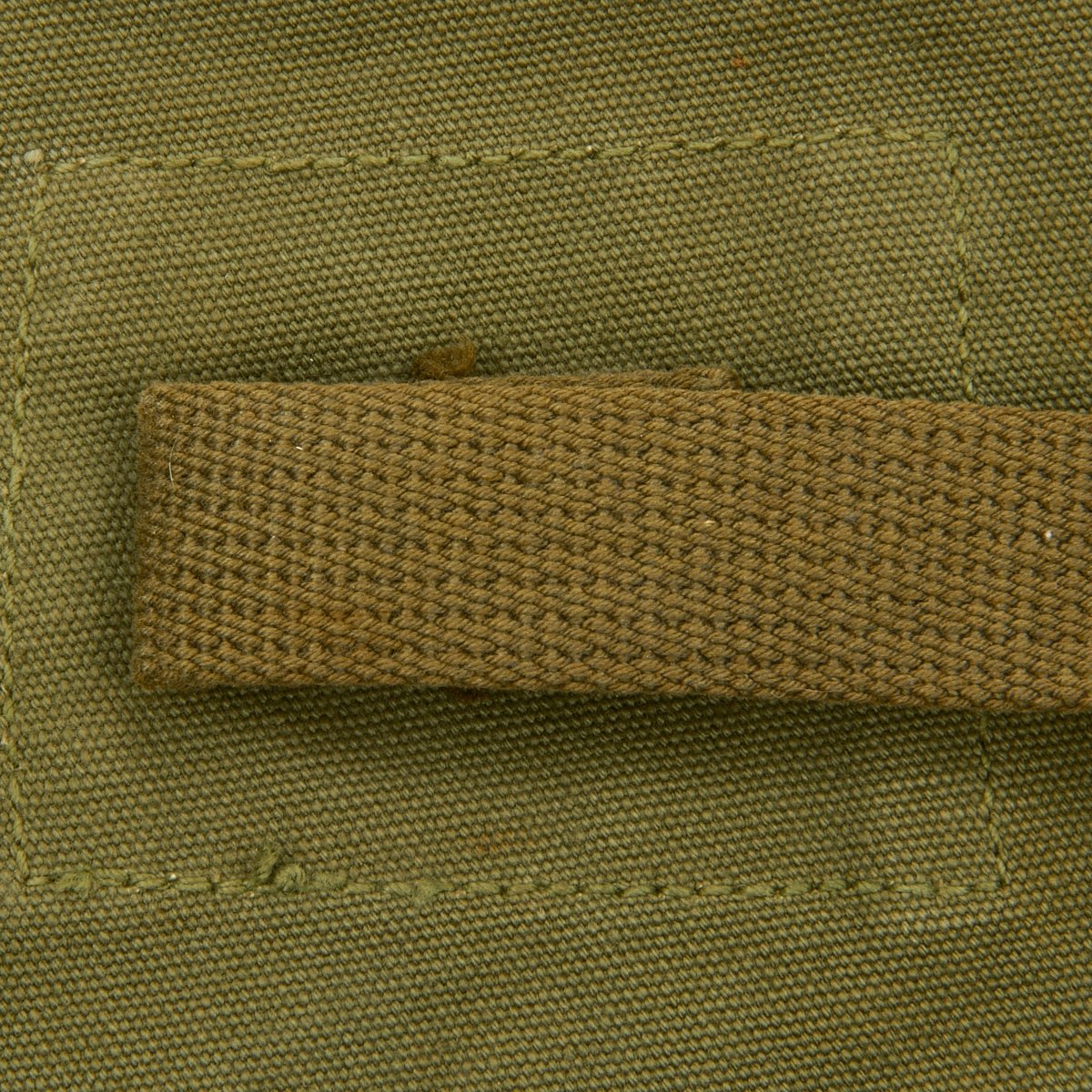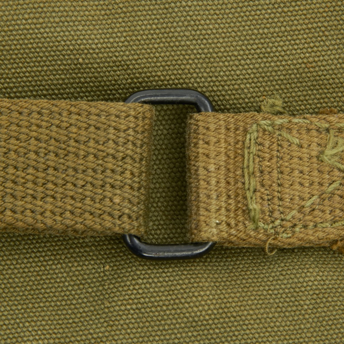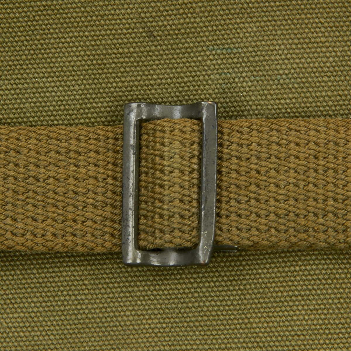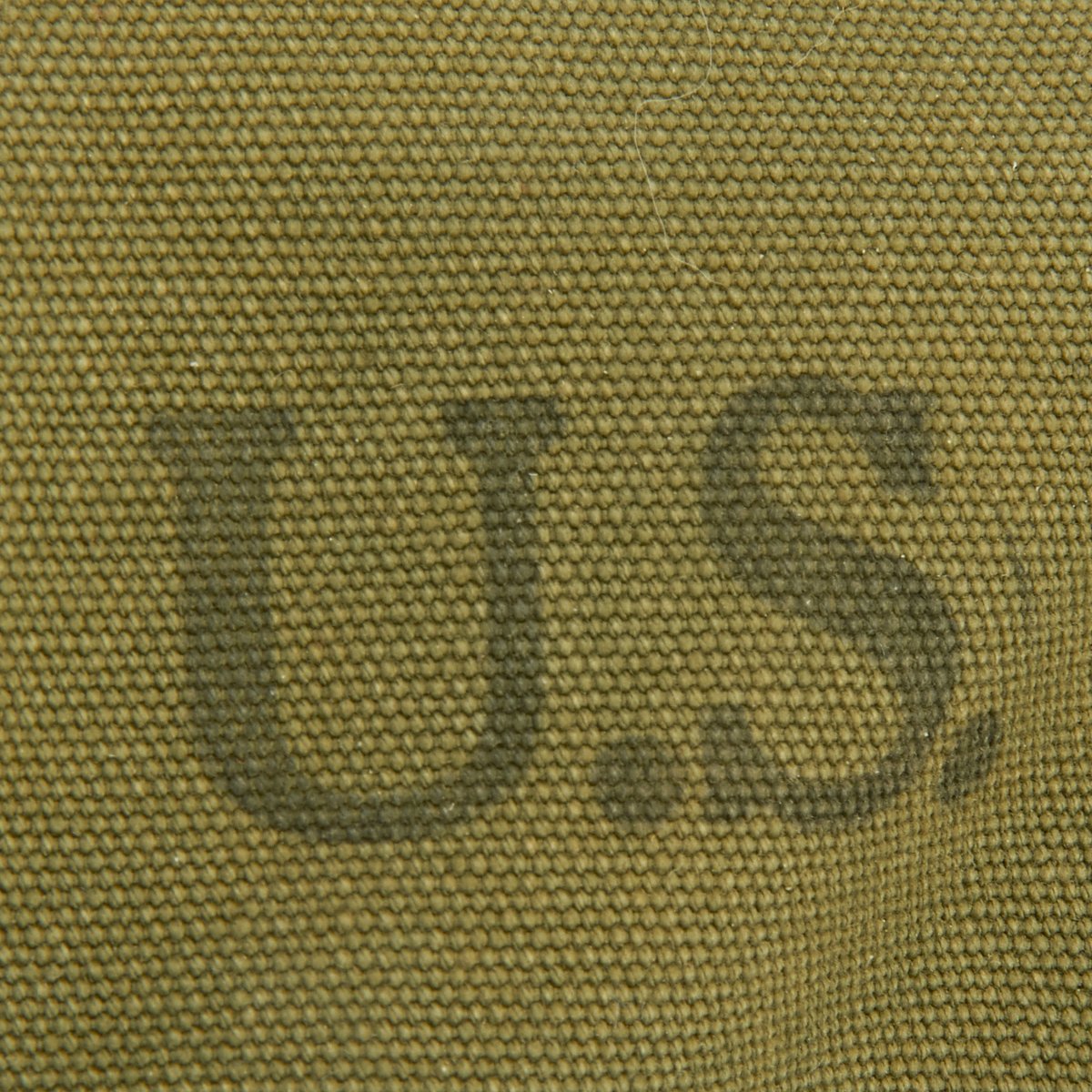 This example is maker marked under the top flap: SHANE MFG. CO. / 1944. This example is made of OD Green #7 Canvas, which has faded a bit over the years. This is darker, more "green" type of OD green, as typical of later ware produced items. The case is overall very good, with with an intact shoulder strap, working zipper, and no major rips or tears in the fabric. Definitely very good condition for its age.