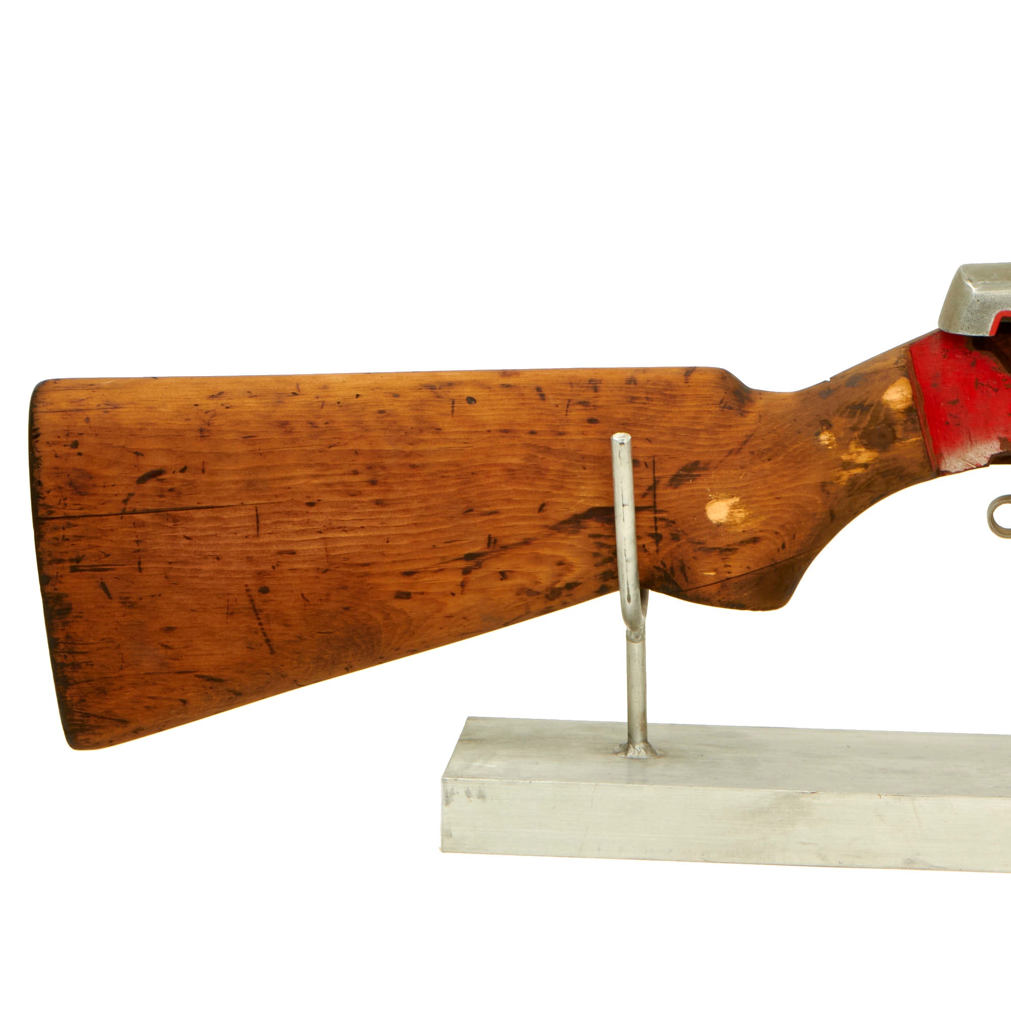 Rifle actually "functions" when bolt is cycled, demonstrating the bolt working. Red paint to highlight areas of operation. Also included is a custom made aluminum stand.