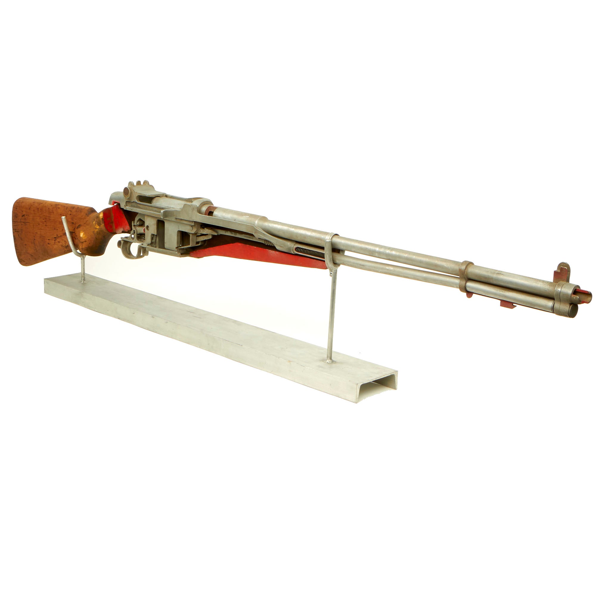 Original Item: Only One Available. This is an incredible World War Two M1 Garand Rifle cutaway USGI classroom non-functional enlarged training model. Oversized measuring approximately 86" in length and constructed of cast aluminum, this is a classroom demonstrator of the famous M1 Garand Semi-Automatic Rifle for educating soldiers during WW2 on the inner workings and operation of the rifle, including the bolt operation, feeding, ejection, etc.
