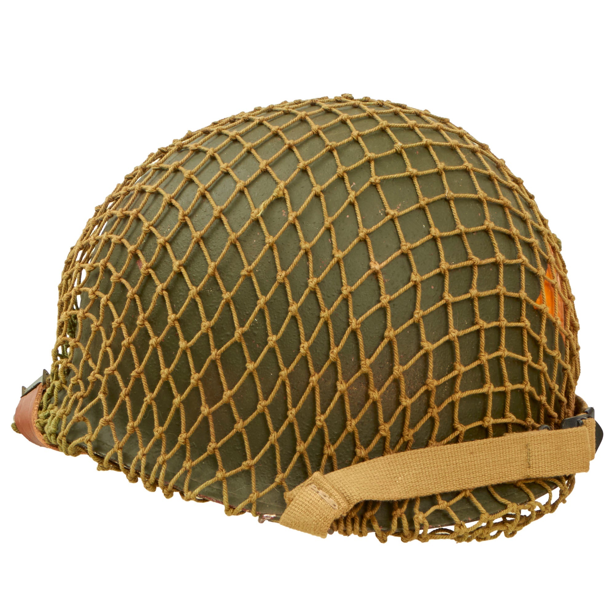 Original Refurbished Item. Only One Available. This is a recreation of a scarce 2nd Ranger Battalion helmet from World War II. The liner’s suspension and chinstrap have been replaced with replicas, and the 2nd Rangers insignia has been painted on the front, with a reproduction helmet netting added.
