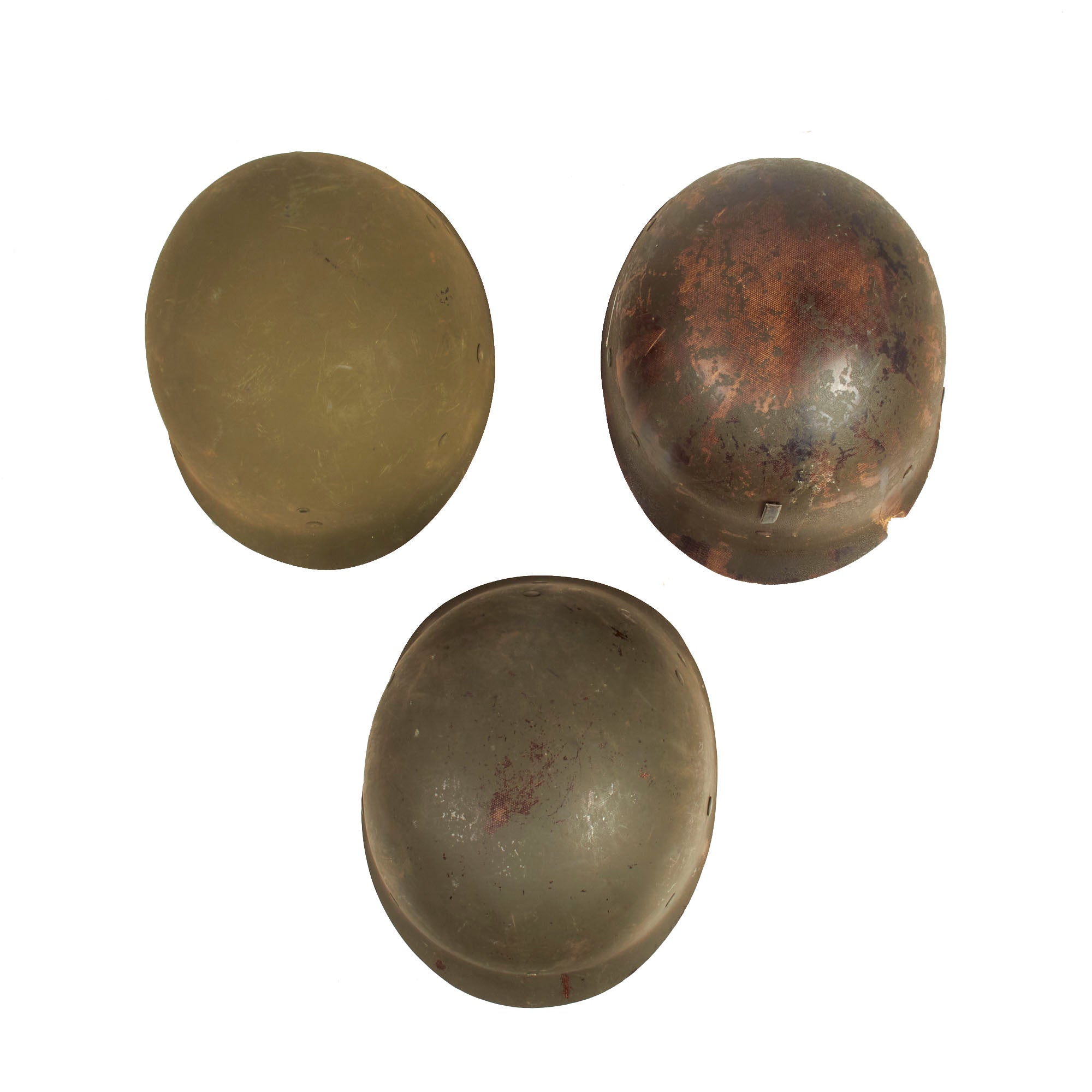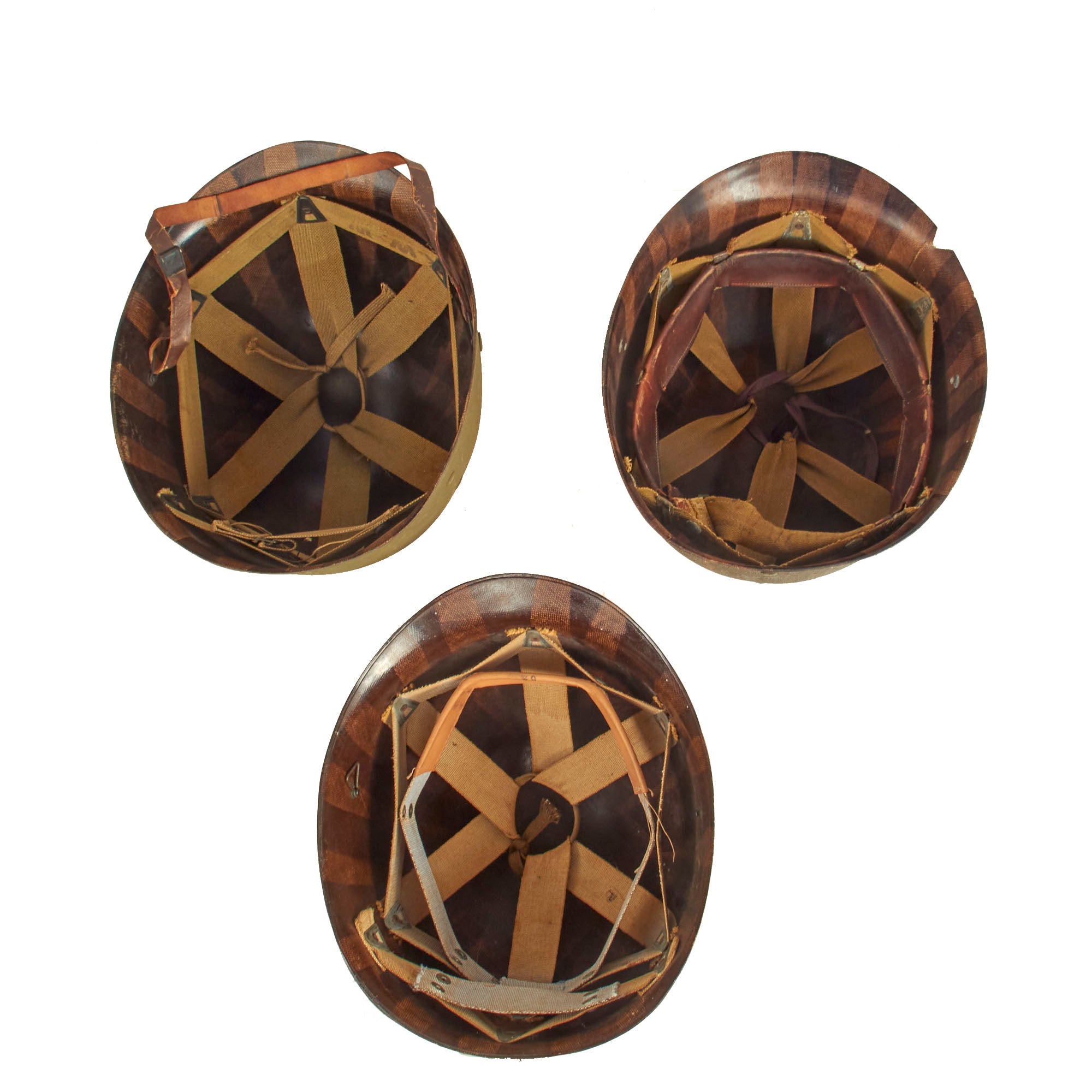 Original Items: Only One Lot of 3 Available. This is a fantastic trio of WWII high pressure M1 helmet liners, one being an early war Westinghouse with rare Rayon suspension! The liner is a hard hat-like support for the suspension, and is designed to fit snugly inside the steel shell.