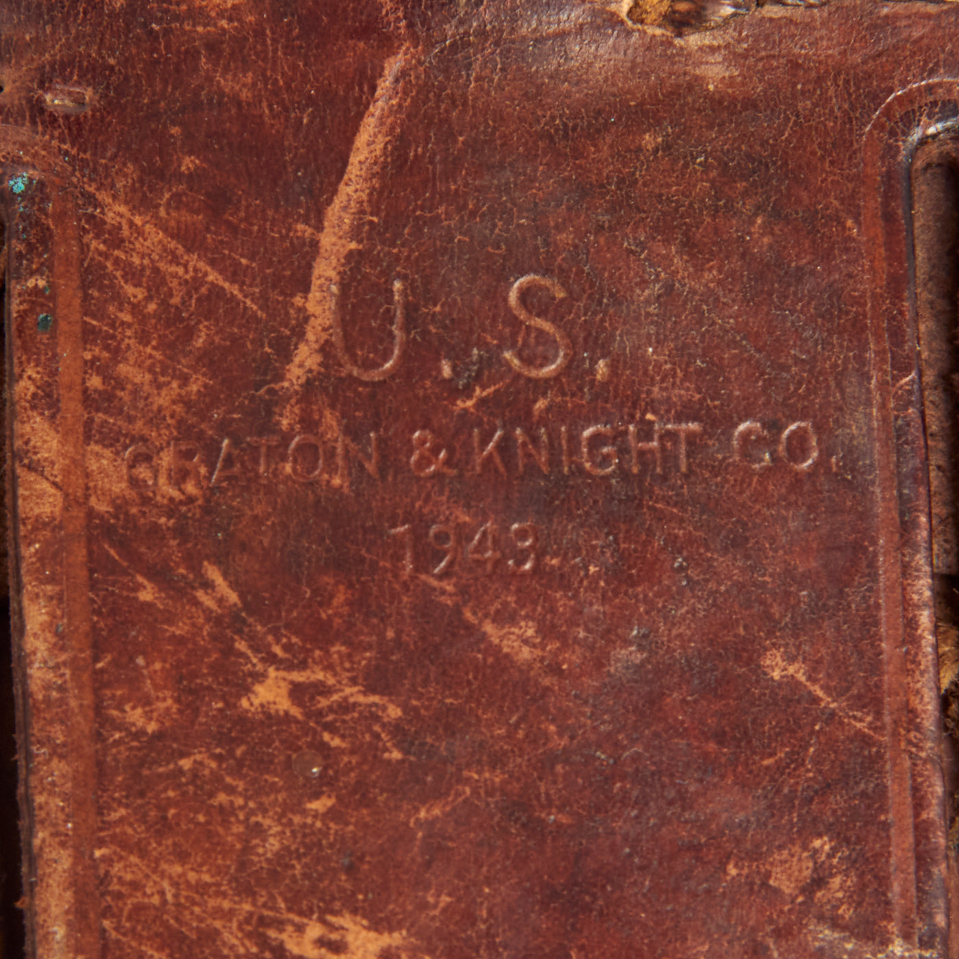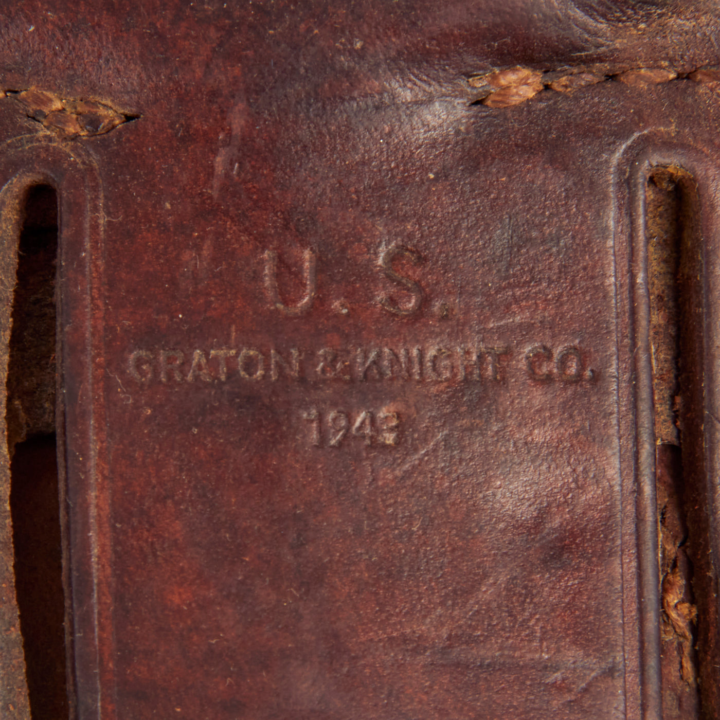 - (2) Graton & Knight Holsters Dated 1943: Both holsters are dated and made by the same firm in 1943. Graton & Knight Co. established in 1851, as tanners and manufacturers of leather belting and other leather goods. Tanned over 300,000 hides annually, employed 1400 with branches throughout the United States and other countries. The company was no longer in business in Worcester after 1962, likely as a result of competition from plastics and synthetics. Both holsters are in lovely, serviceable condition.