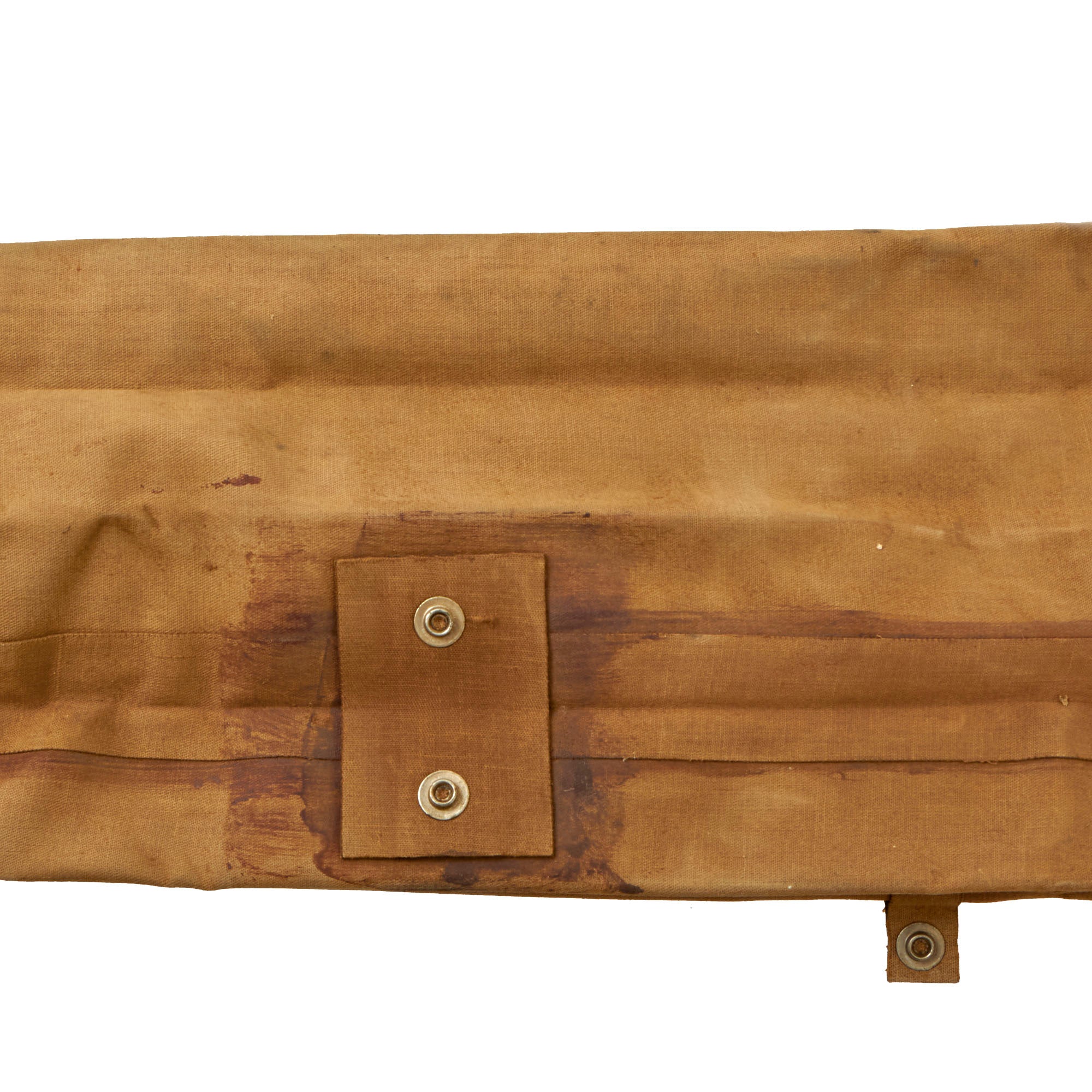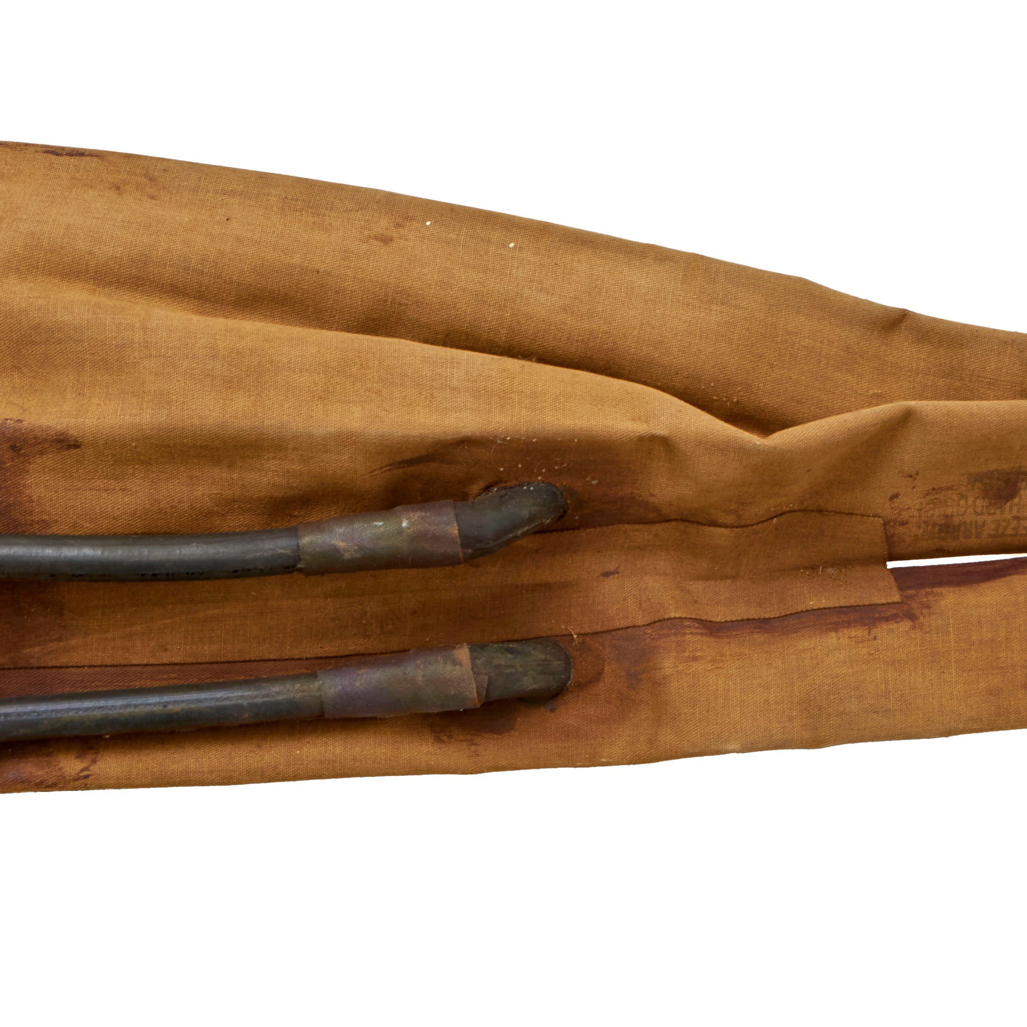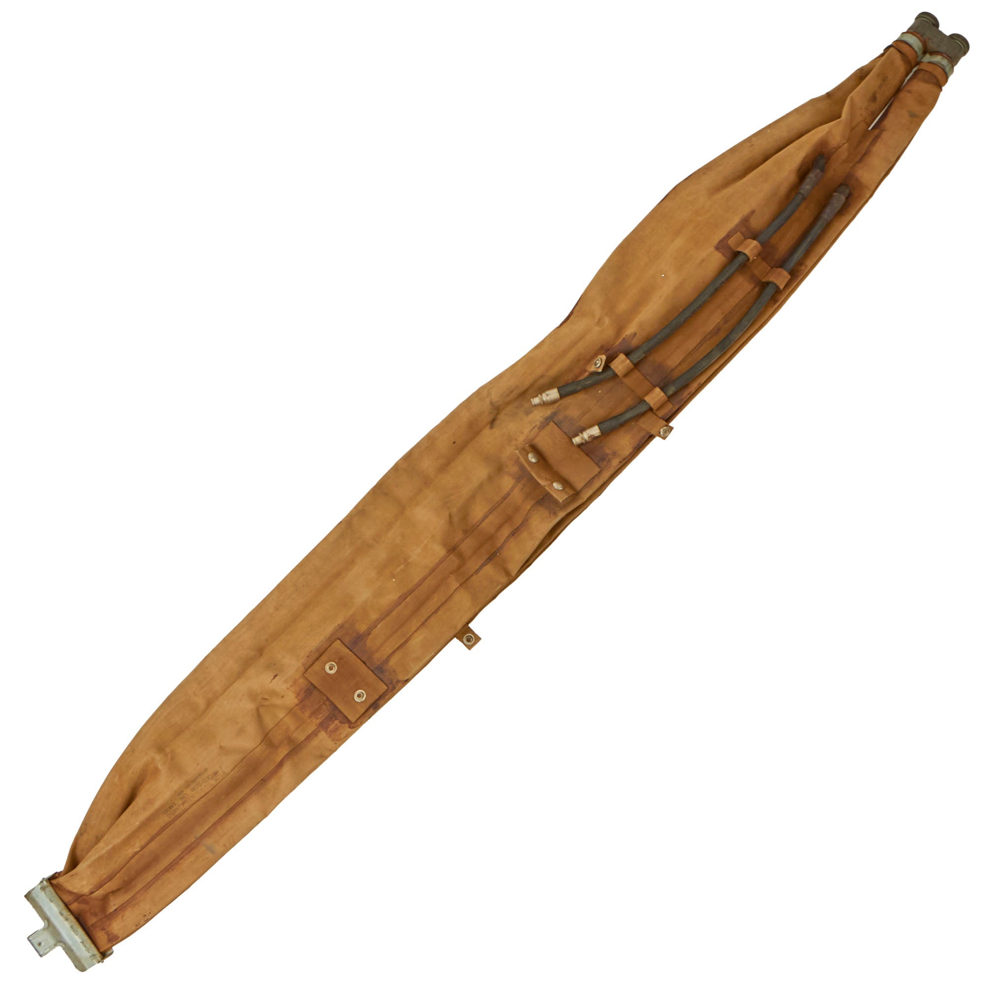 Condition is good, and we do not see any repairs or major issues from the exterior. However due to the age it is most likely that the rubber inside is somewhat degraded, so it most likely is not functional, however there is still trapped air inside, more than likely from an unwarranted “collector test”. The C02 containers are not loaded with any spent cartridges. The belt measures approximately 60" long and 4.5" wide uninflated.