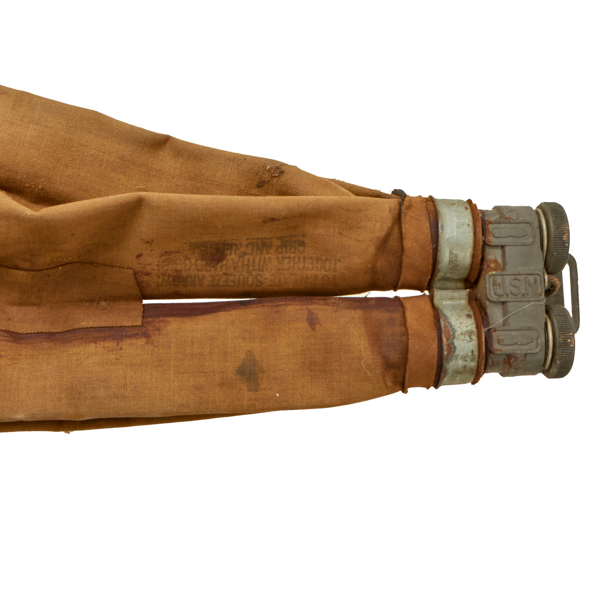 Original Item: Only One Available. The M1926 inflatable flotation belt was used as a life preserver by assault troops during amphibious actions and beach landings. The belt was inflated by squeezing two switches located inside the belt, which activated two CO2 bottles. If the CO2 bottles failed, the belt could still be inflated by blowing into the rubber tubes, which have valves on the ends.