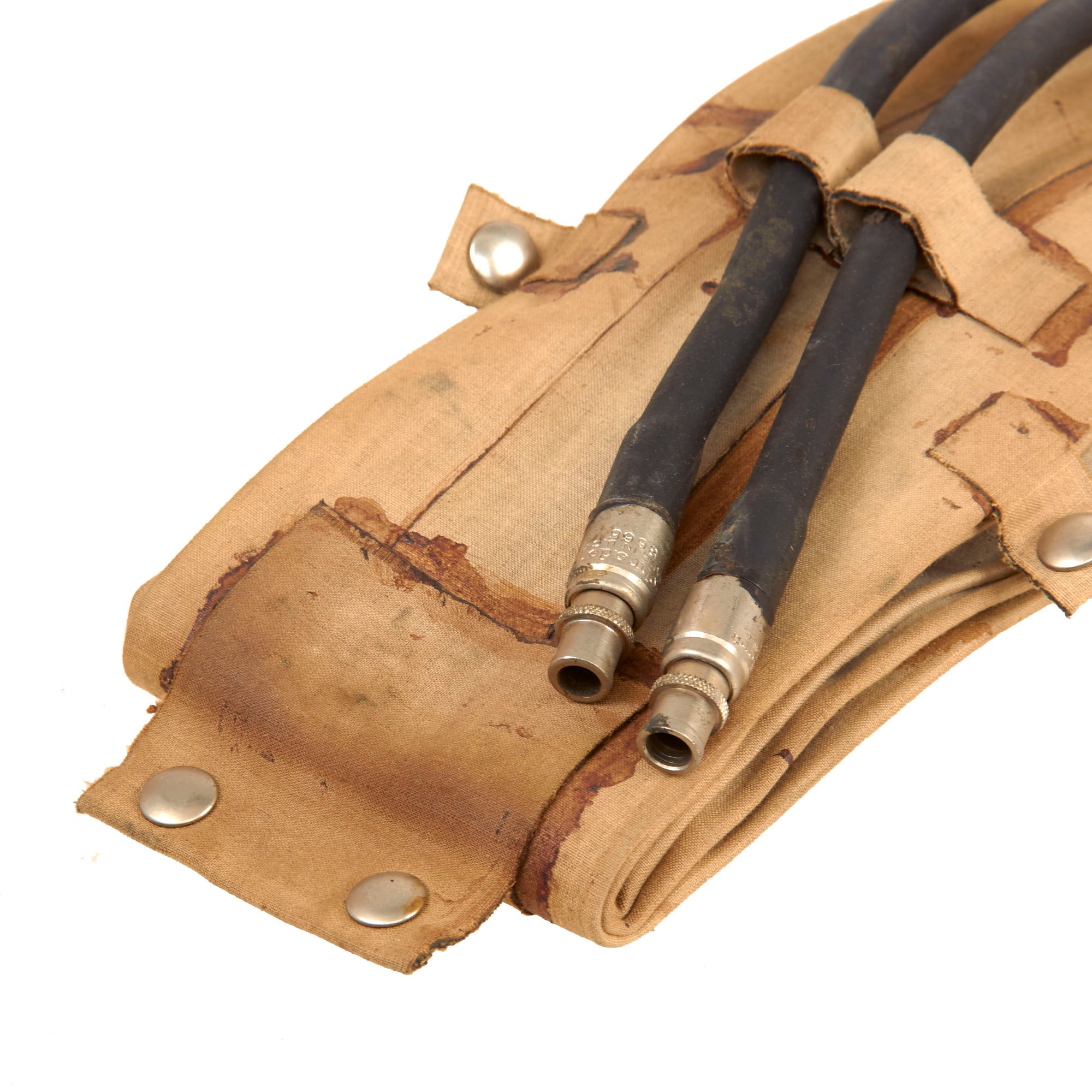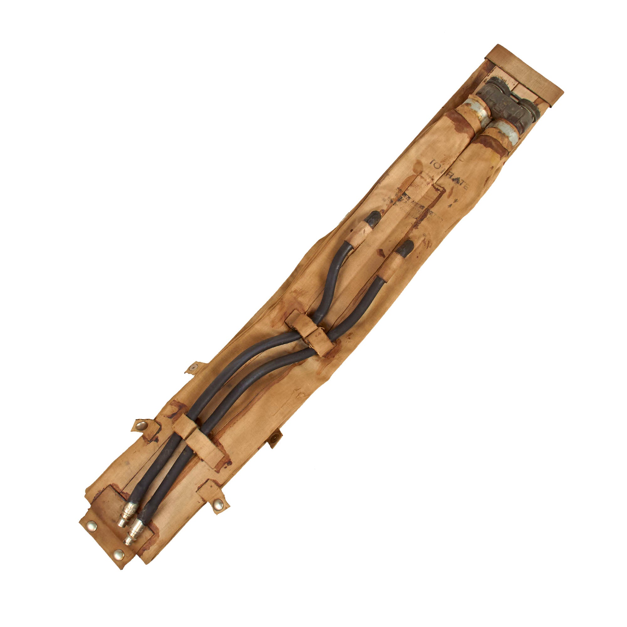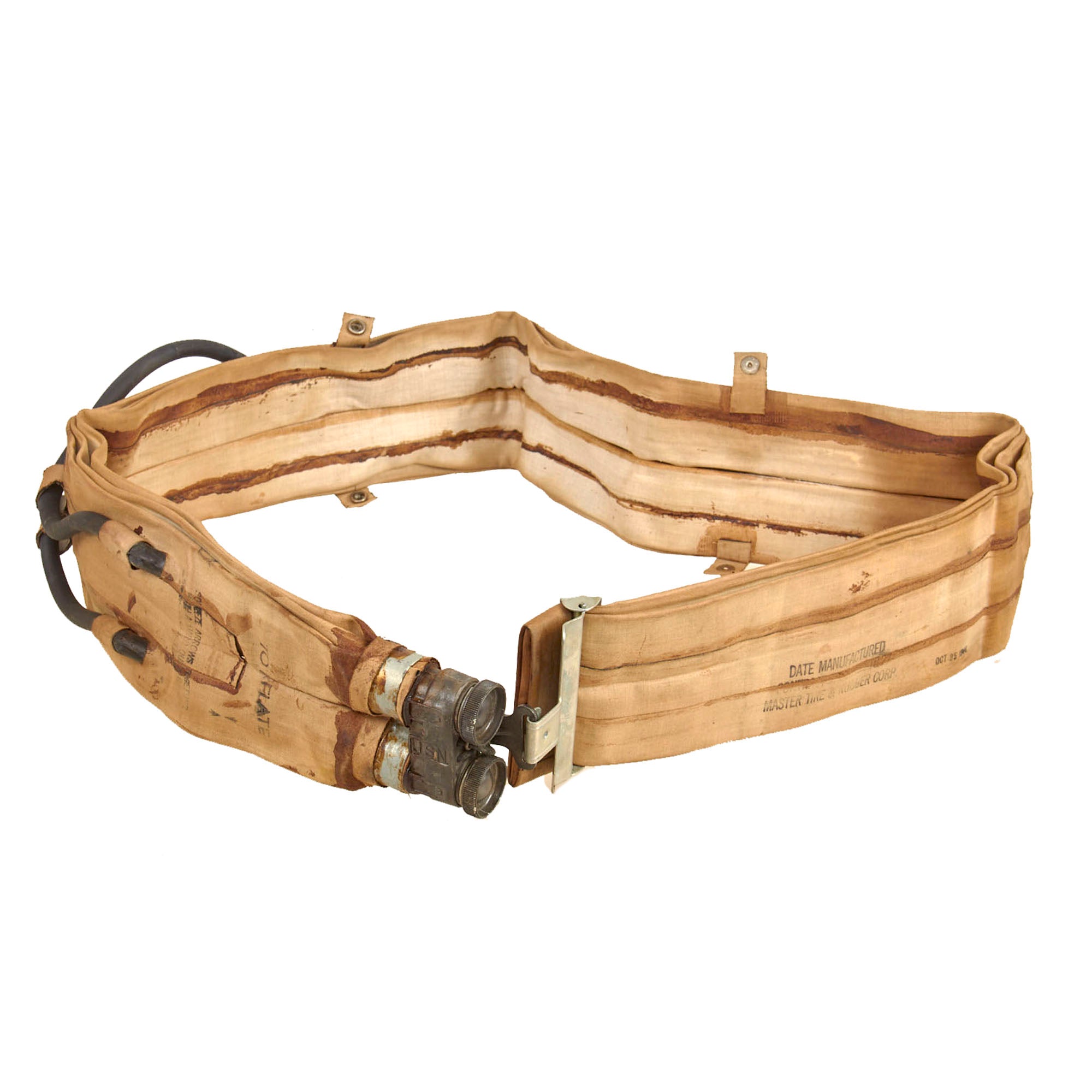 Original Item: Only One Available. The M1926 inflatable flotation belt was used as a life preserver by assault troops during amphibious actions and beach landings. The belt was inflated by squeezing two switches located inside the belt, which activated two CO2 bottles. If the CO2 bottles failed, the belt could still be inflated by blowing into the rubber tubes, which have valves on the ends.
