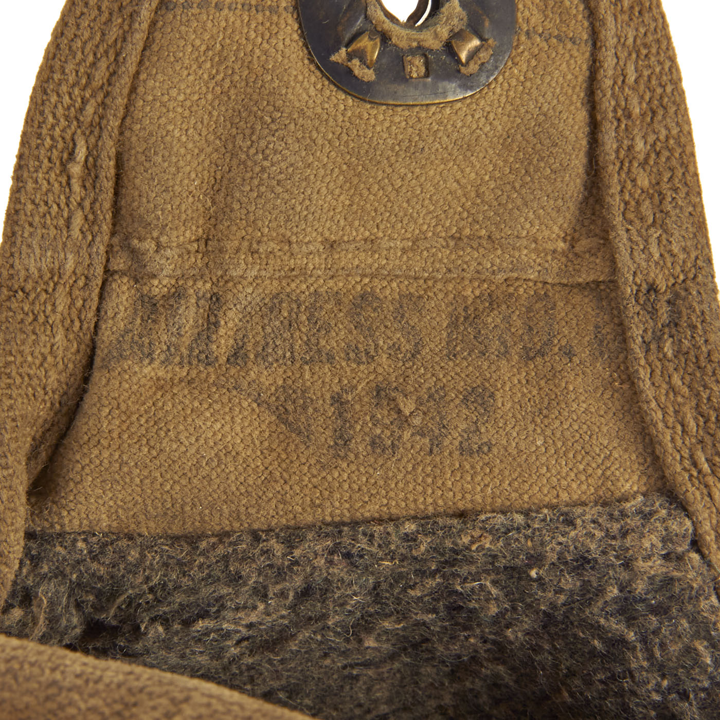 The carrier pouch is maker marked on the inside flap with AIRTRESS MIDLAND / 1942 and has the standard US stamped on the front, faded but still able to be read. The carrier is stained, faded and has a minor tear on the bottom. There is faint markings on the outside, but are too faded to read properly.