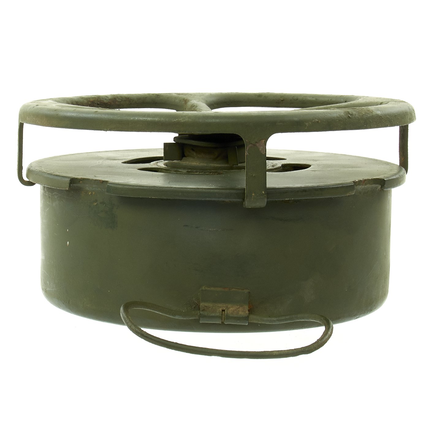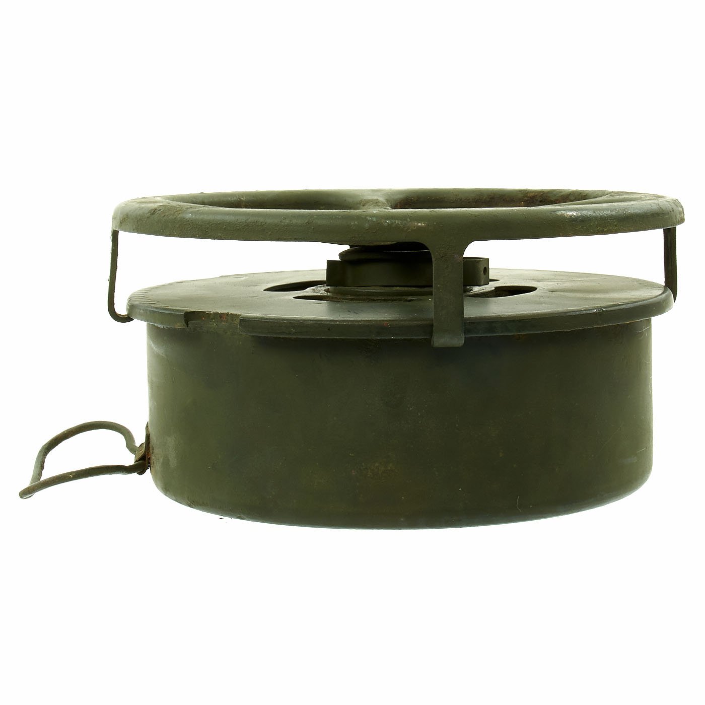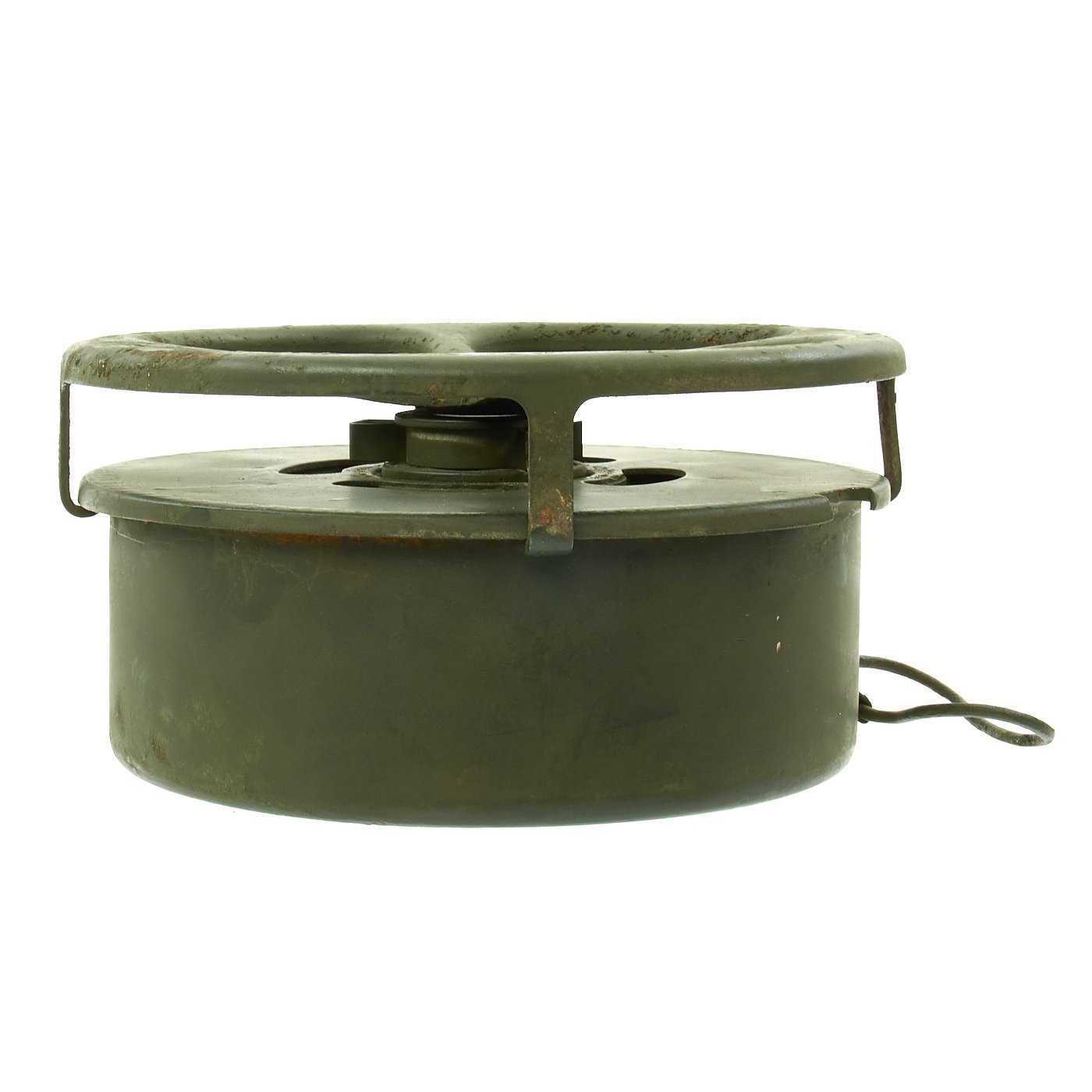 Original Item: Only One Available. During WWII the United States developed and used several versions of Anti-Tank mine, starting with the M1, followed by the M1A1 and finally the M4. They all had the same basic design of a "spider" on the top of the mine being used to actuate a fuse in the center of the mine when it was subjected to enough pressure. The M1 Had two locations where it was filled with explosives, and utilized a Spider made of multiple pieces of bent steel welded together. The later M1A1 only had one explosives filling hole, as well as a simpler design stamped steel spider that required less machine time. The more advanced M4 mine also featured two secondary fuse locations that could be used to make the mines much harder to remove or defuse.